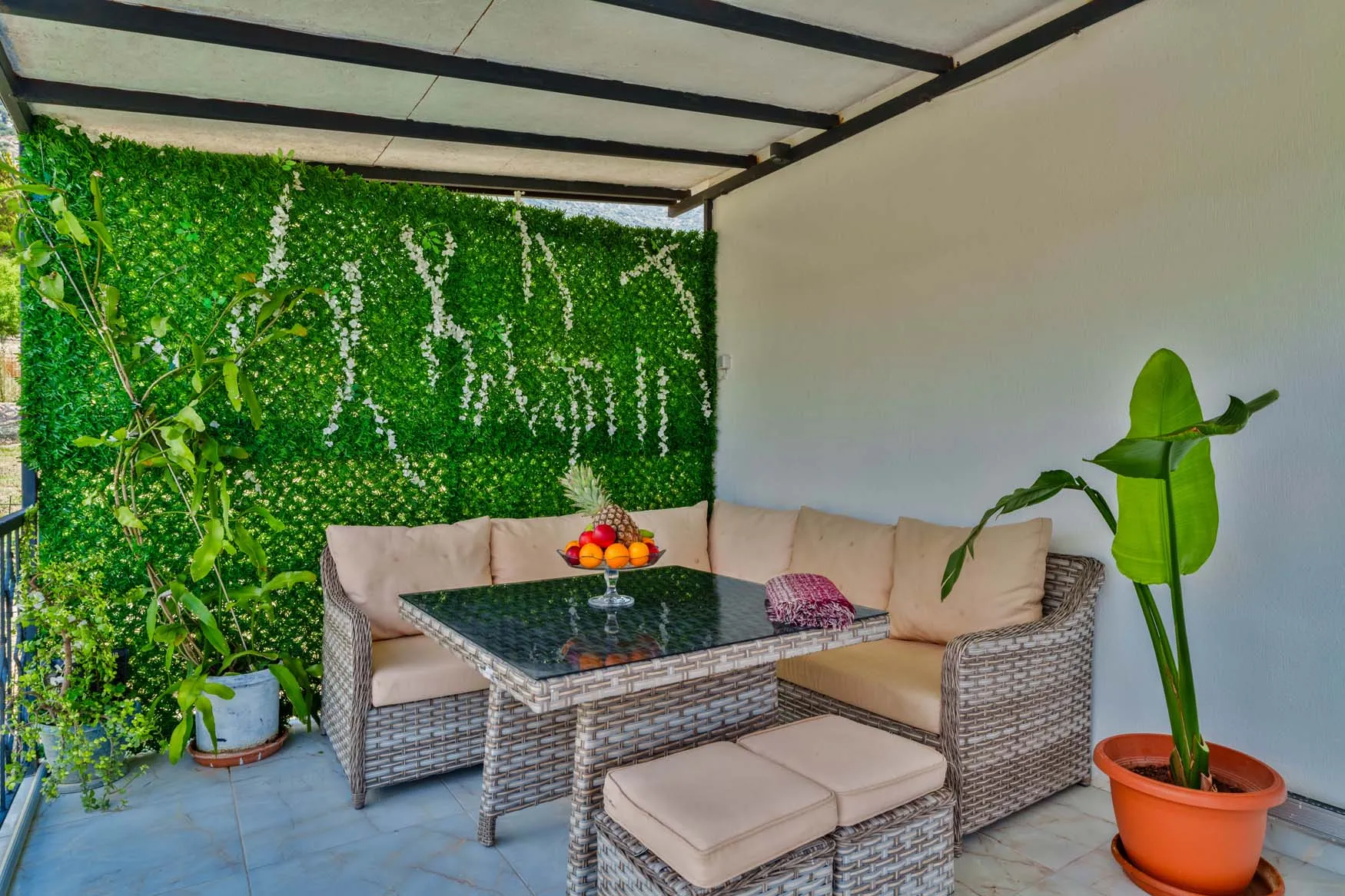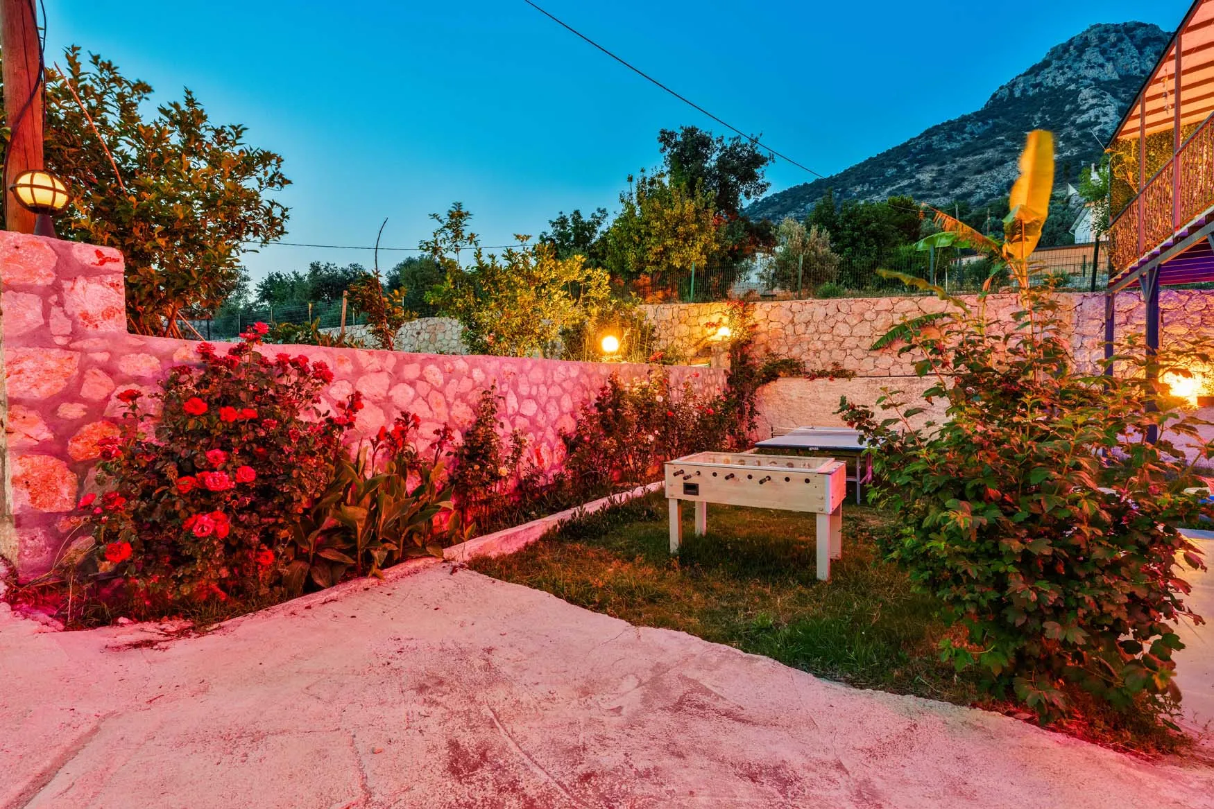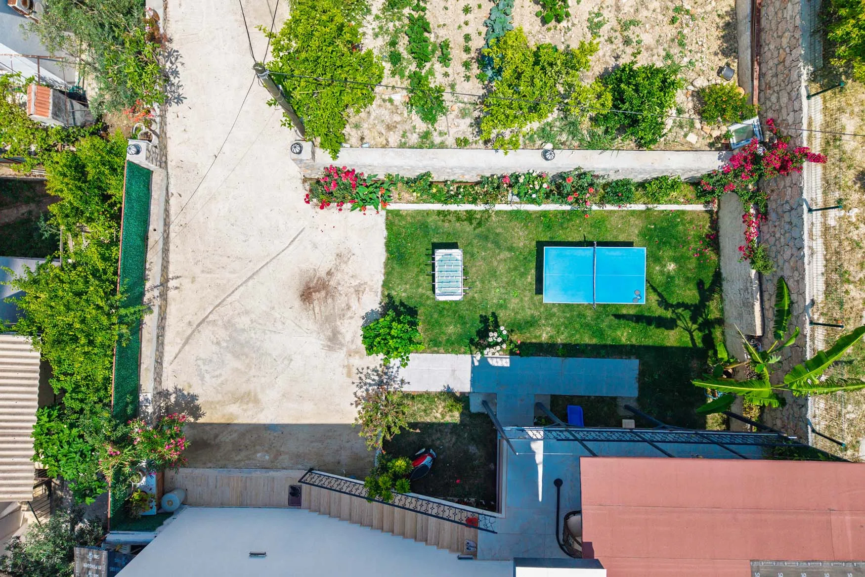 Detayları : Şezlong, güneşlenme  şemsiyesi, salıncak, masa tenisi, barbekü, yemek masası ve sandalyeleri bulunmaktadır.