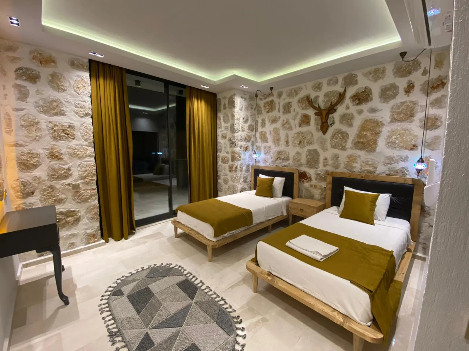 2.Yatak Odası: İki adet tek kişilik yatak, klima, komodin, elbise dolabı, makyaj masası ve banyo/tuvalet.