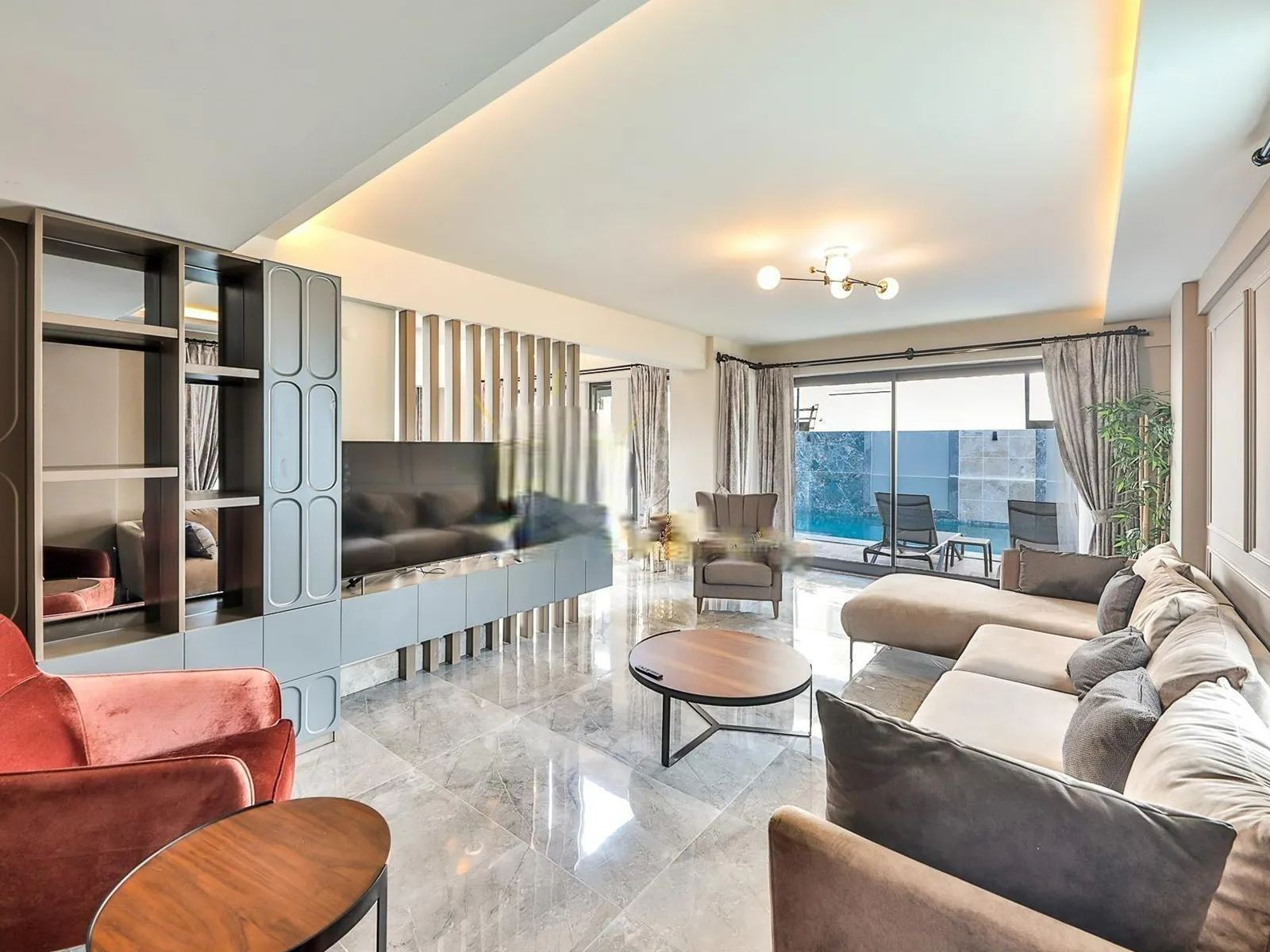 2.Yatak Odası: Çift kişilik yatak, elbise dolabı, komodin, makyaj masası, ebeveyn banyosu, klima, jakuzi