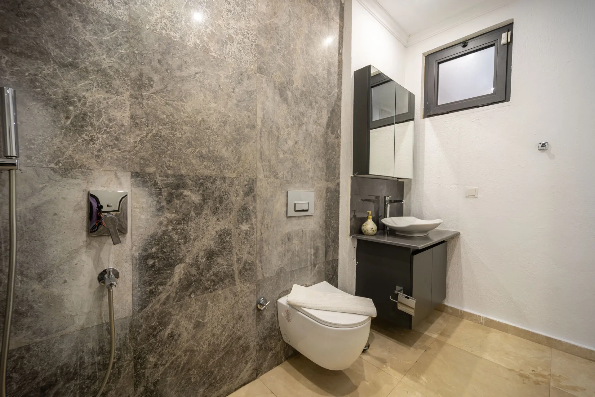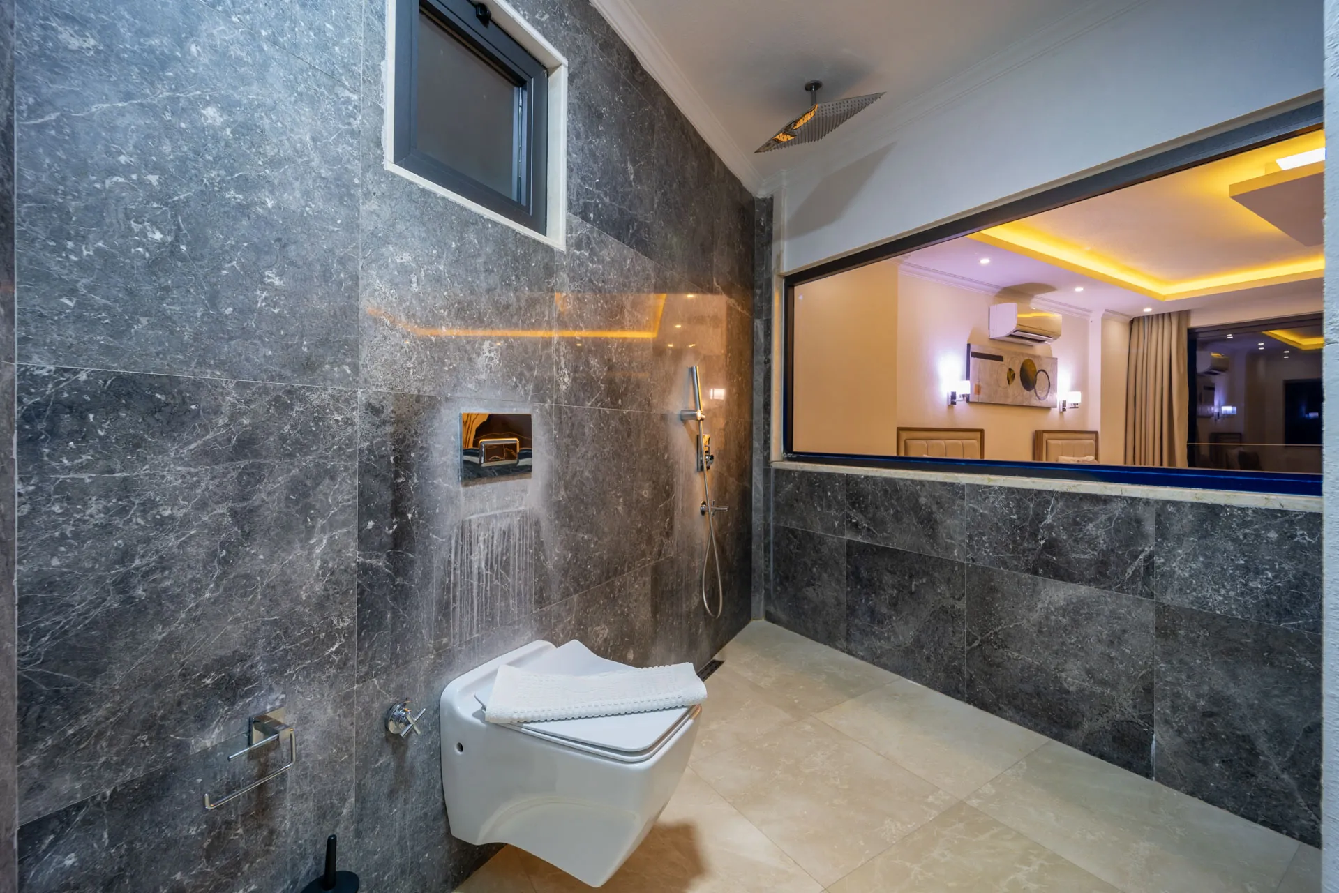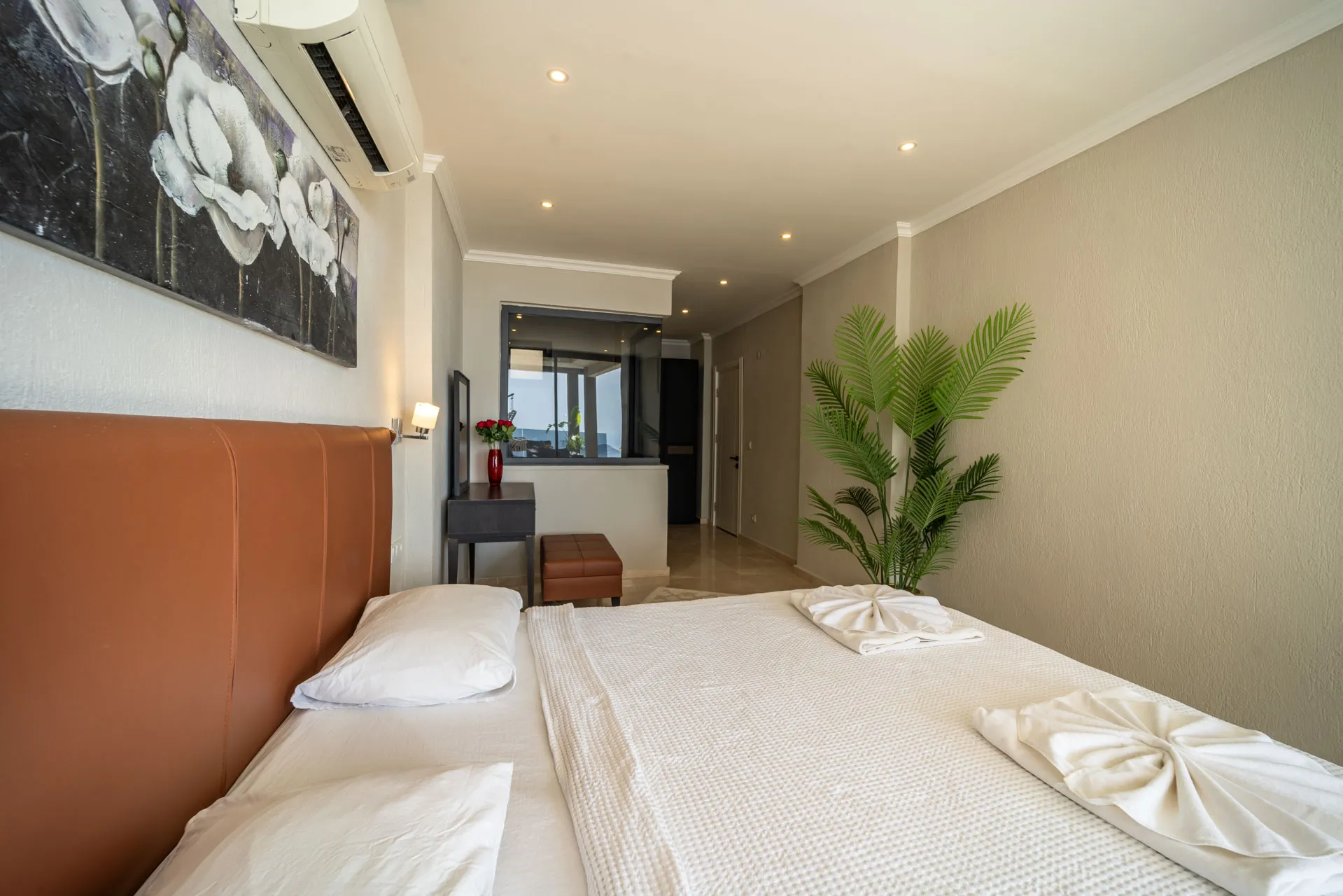 Yatak Odası: 1 adet çift kişilik yatak, komodin, makyaj masası, jakuzi, klima, banyo ve tuvalet.