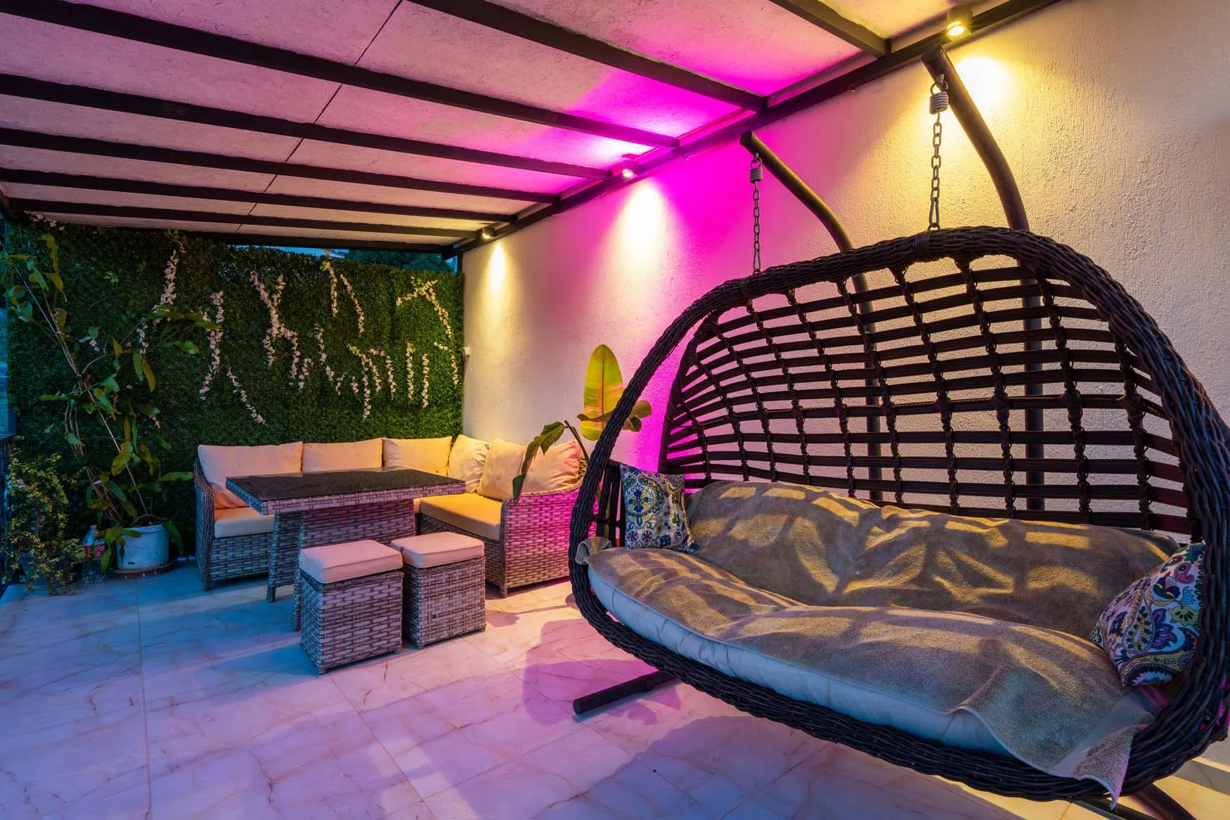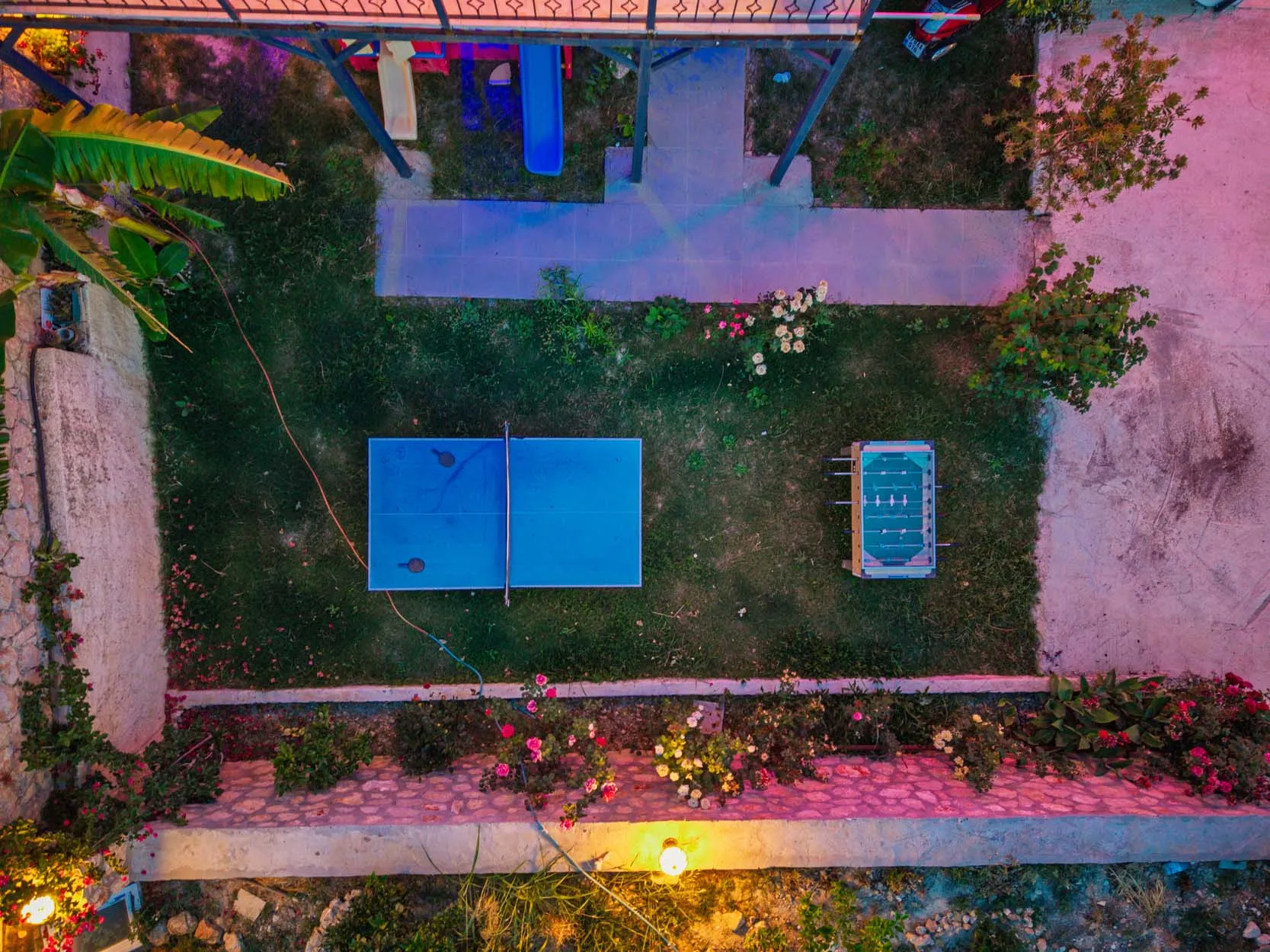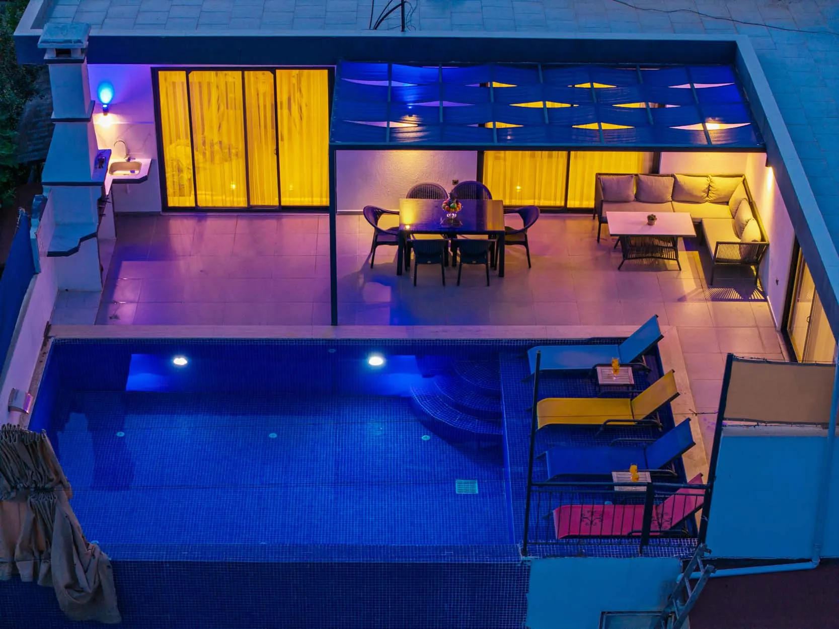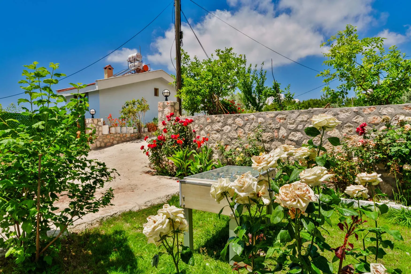 Detayları : Şezlong, güneşlenme  şemsiyesi, salıncak, masa tenisi, barbekü, yemek masası ve sandalyeleri bulunmaktadır.