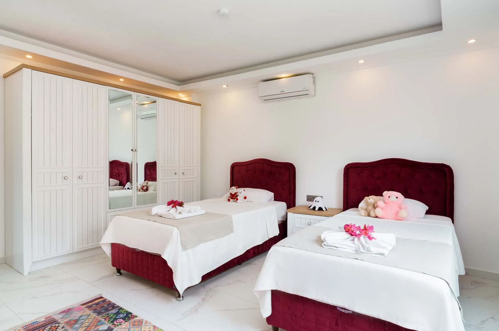 2.Yatak Odası Detayları :  2 Adet Tek kişilik yatak, klima, komodin, makyaj masası, elbise dolabı, banyo ve lavabo bulunmaktadır.