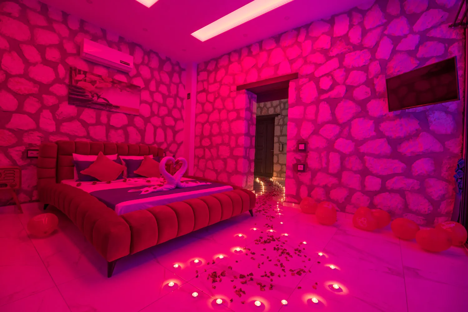 Yatak Odası : 1 adet çift kişilik yatak, kapalı ısıtmalı havuz, televizyon, klima, jakuzi, komodin, elbise dolabı, makyaj masası, banyo ve lavabo bulunmaktadır.