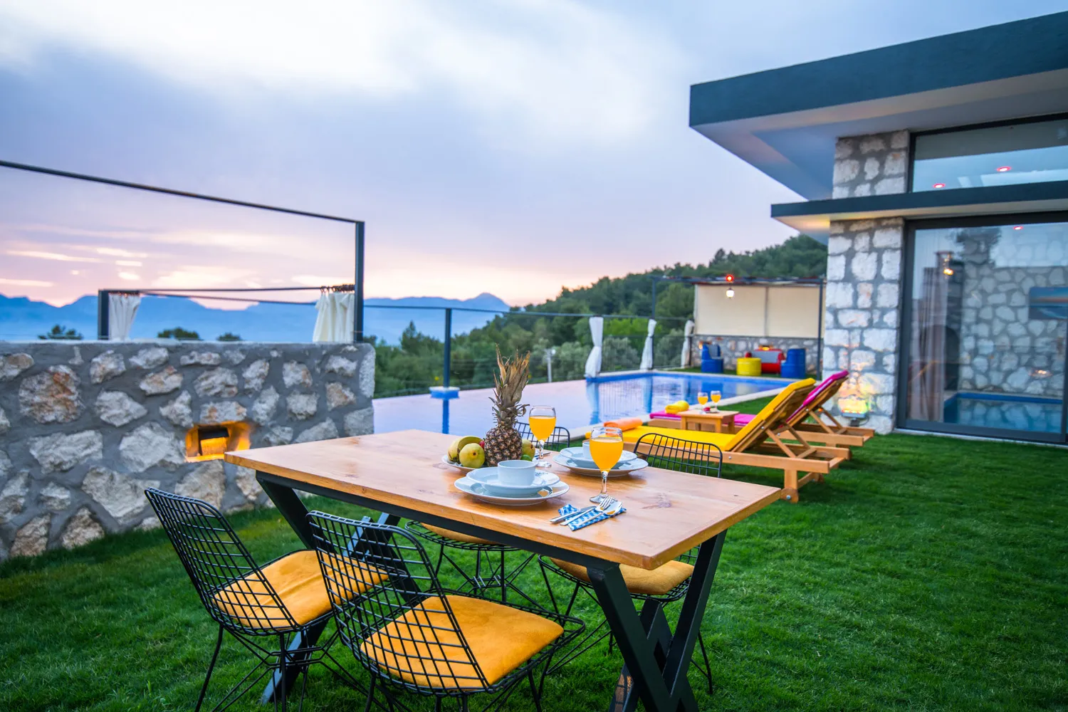 Villamızın bahçesinde özel yüzme havuzu, güneşlenmeniz için 2 adet şezlong, güneşlenme terası, 4 kişilik masa, oturma grubu, mangal keyfiniz için barbekü, güneş şemsiyesi bulunmaktadır.