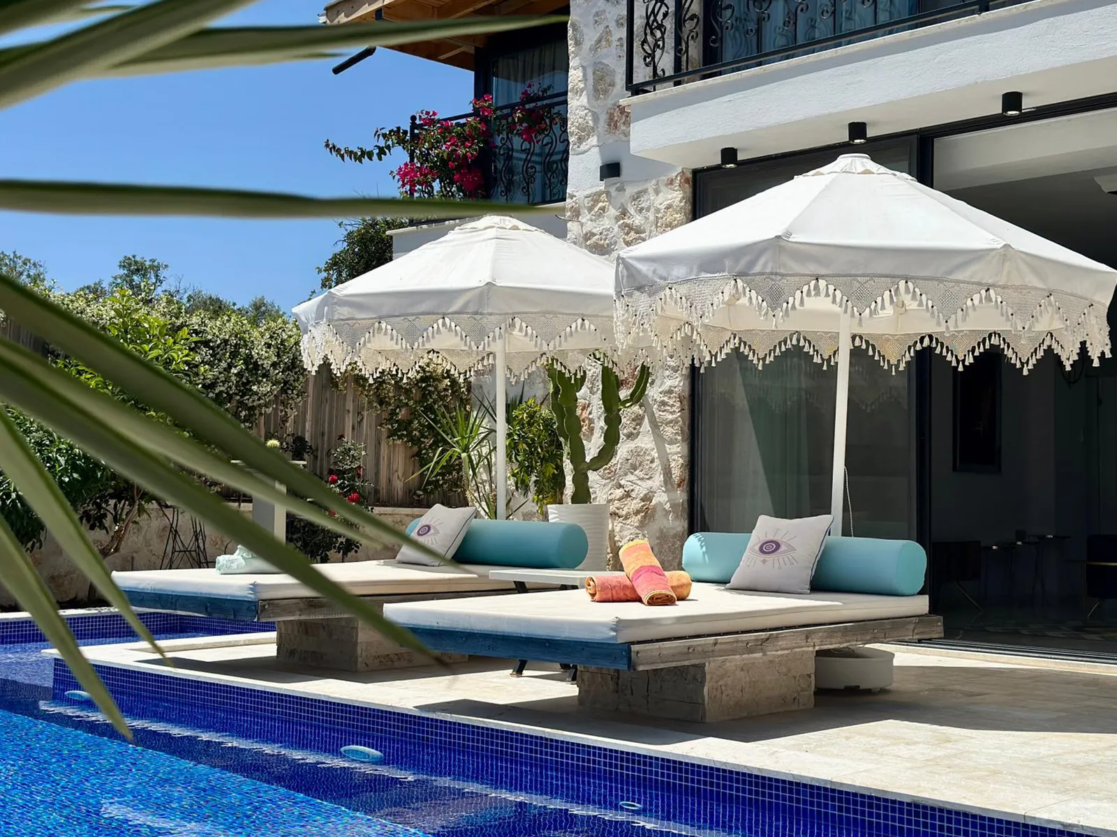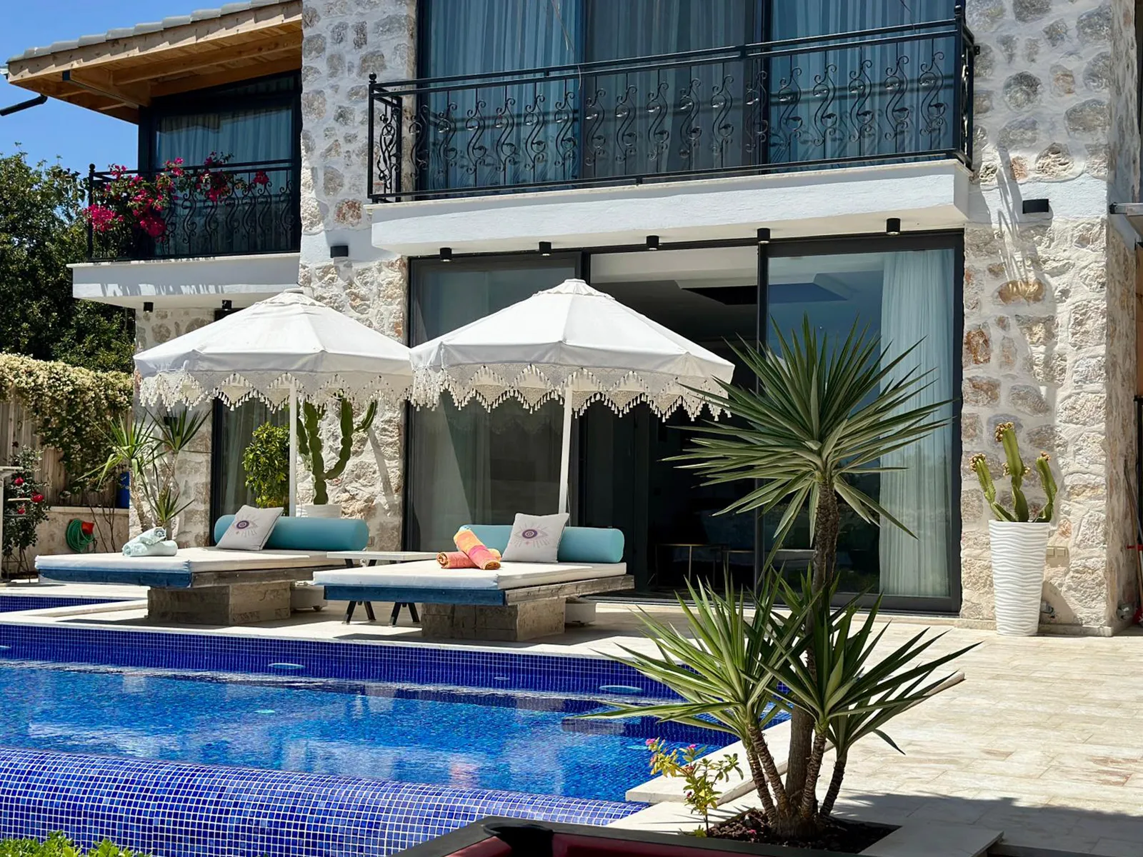 Kalkan Çayköy bölgesinde yer alan Villa Casa Perla, 6 kişi kapasiteli ve 3 yatak odalı bir villadır. Lüks dizaynı ve muhteşem dekoruyla, misafirlerimizin konforu düşünülerek tasarlanmıştır. Muhafazakar yapısıyla aileler ve balayı çiftleri için idealdir. Geniş bahçe alanı, terası, barbekü alanı ve eğlenceli vakitler geçirebileceğiniz bilardo masası bulunmaktadır. Doğa ile iç içe olan villamızda kuş sesleri eşliğinde kahvenizi yudumlayabilir, yatak odasındaki jakuzide yılın yorgunluğunu atabilirsiniz.