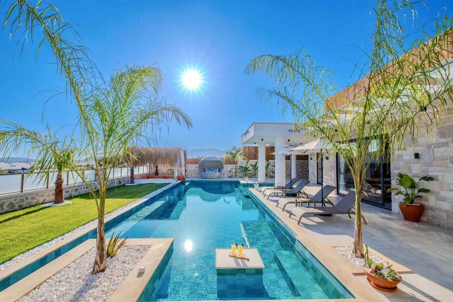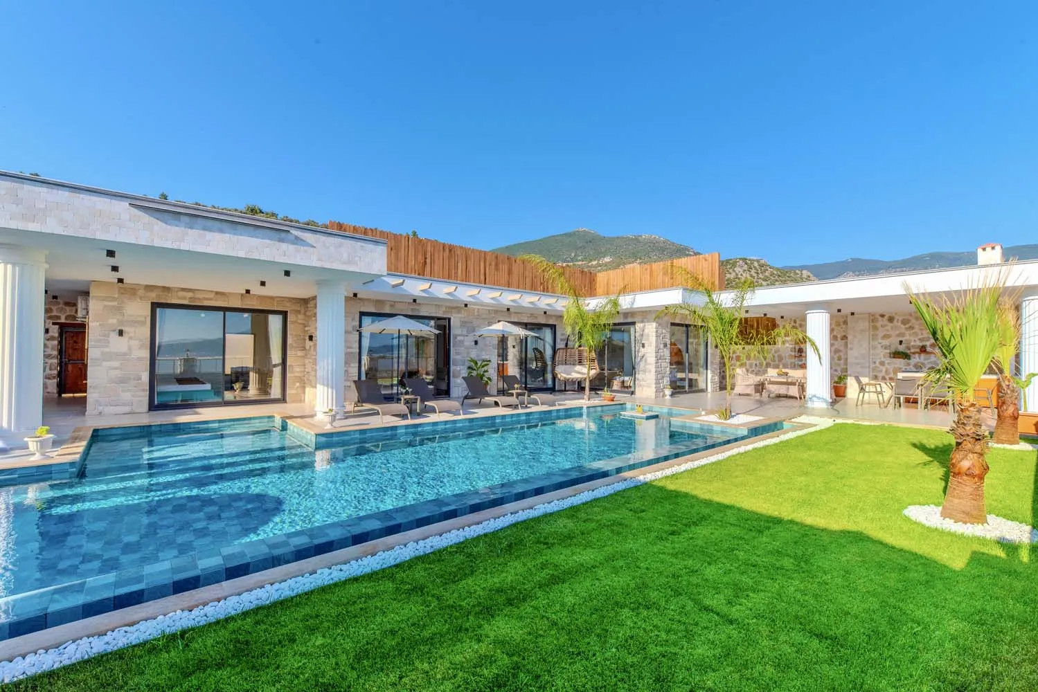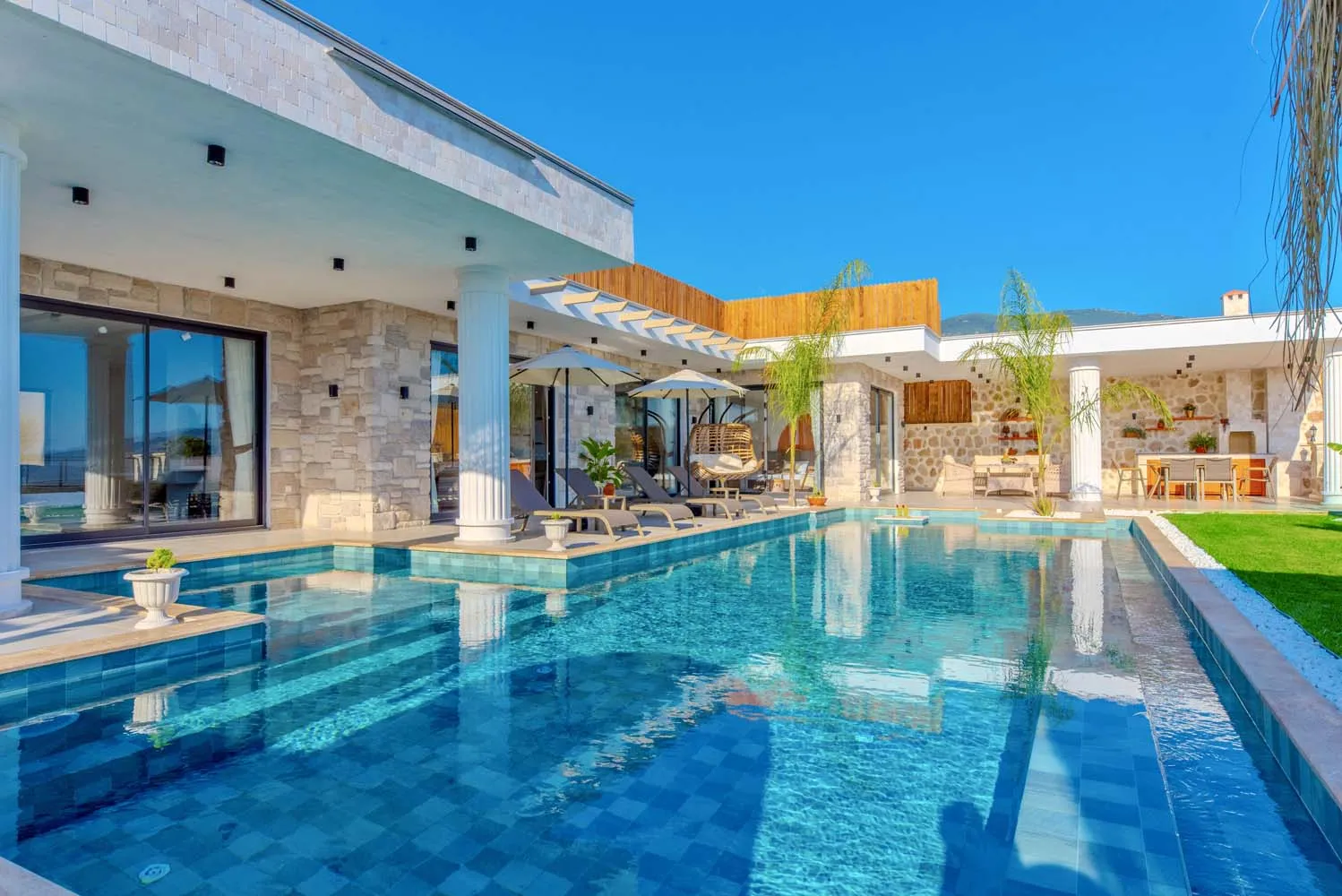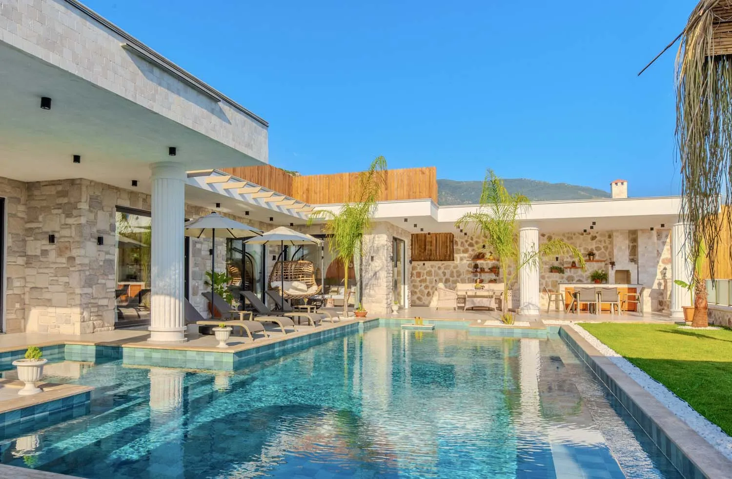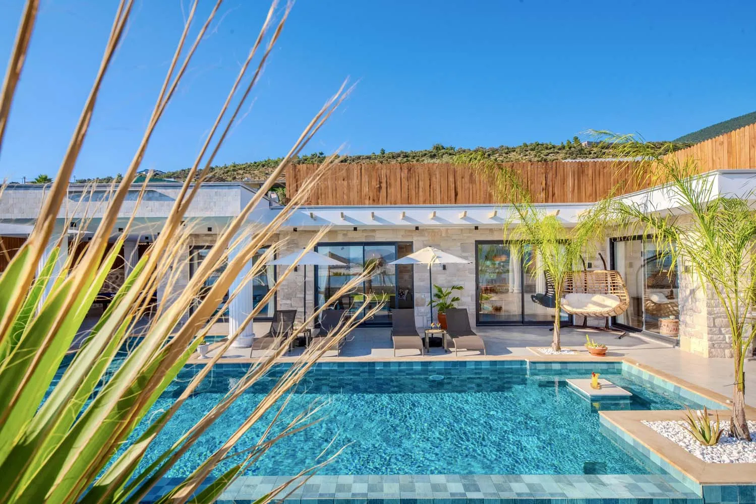 Çekirdek aileler ve balayı çiftleri için ideal bir tatil imkanı sunan villamızın modern mimarisi ve sunduğu olanaklar: