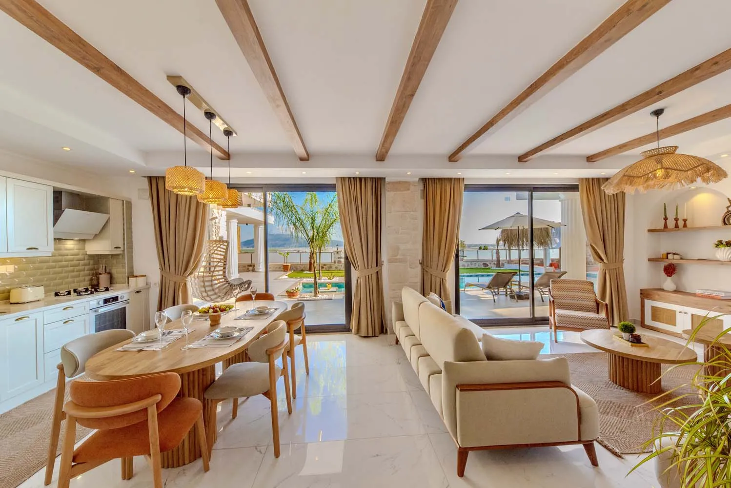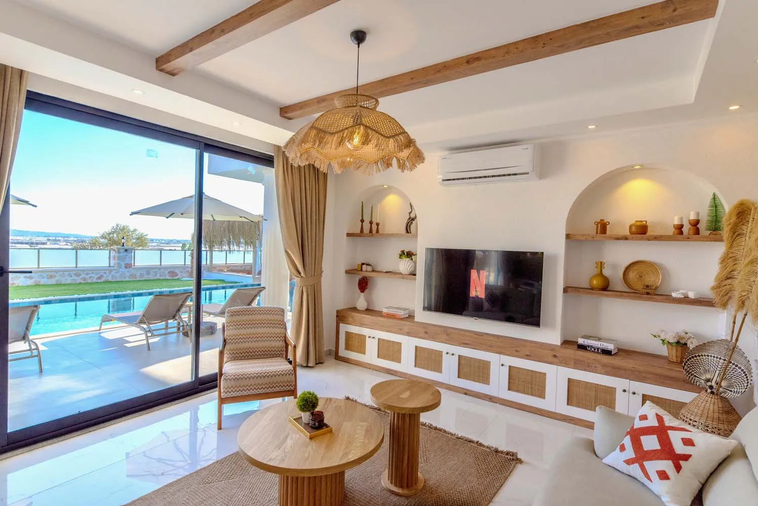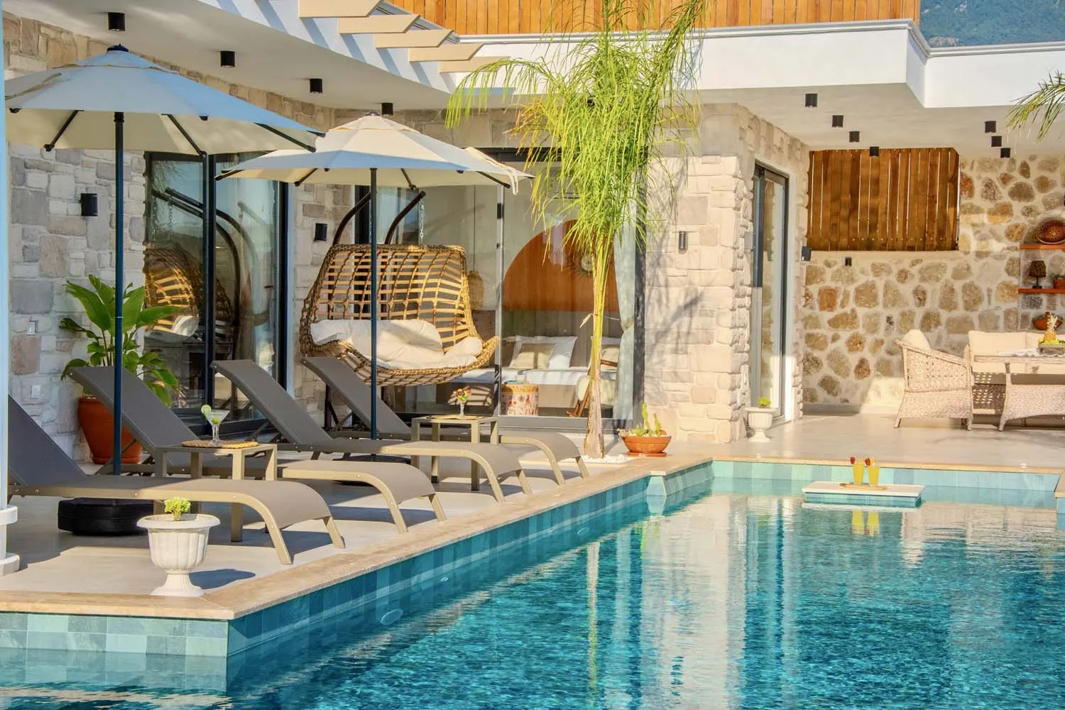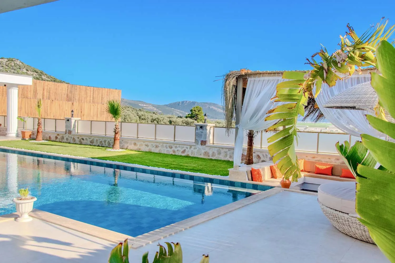 Çekirdek aileler ve balayı çiftleri için ideal bir tatil imkanı sunan villamızın modern mimarisi ve sunduğu olanaklar: