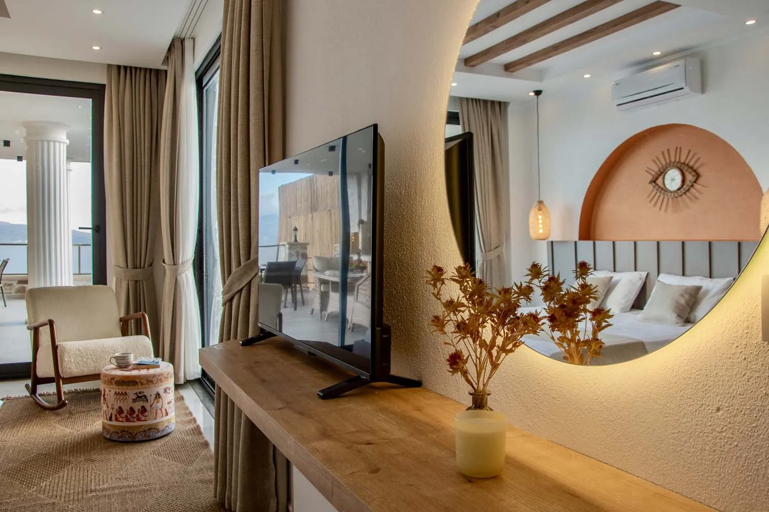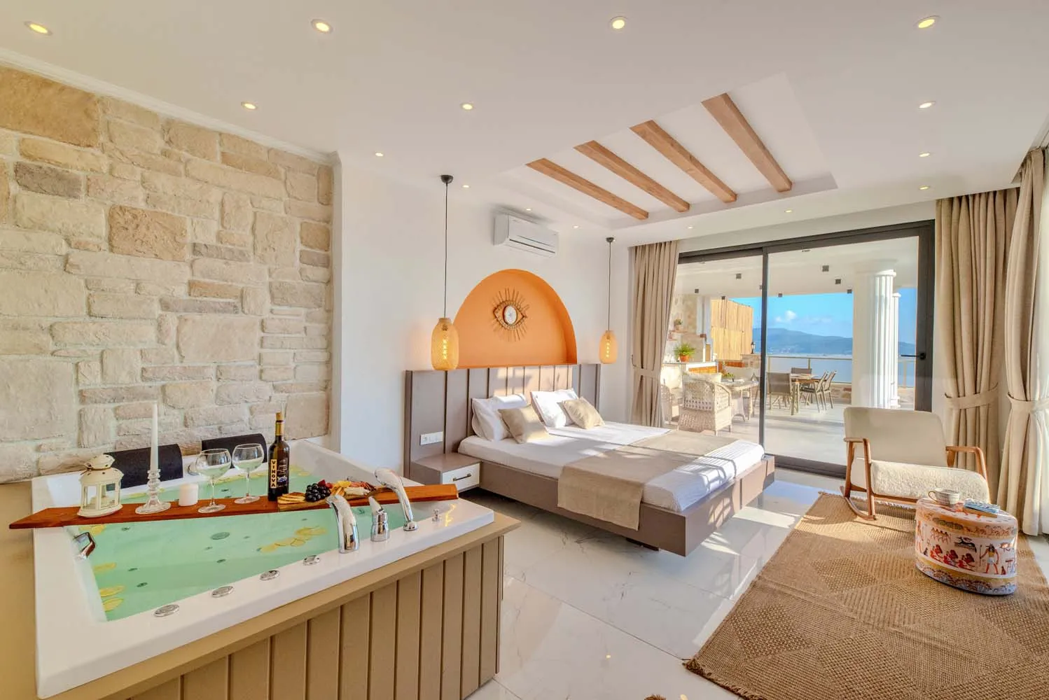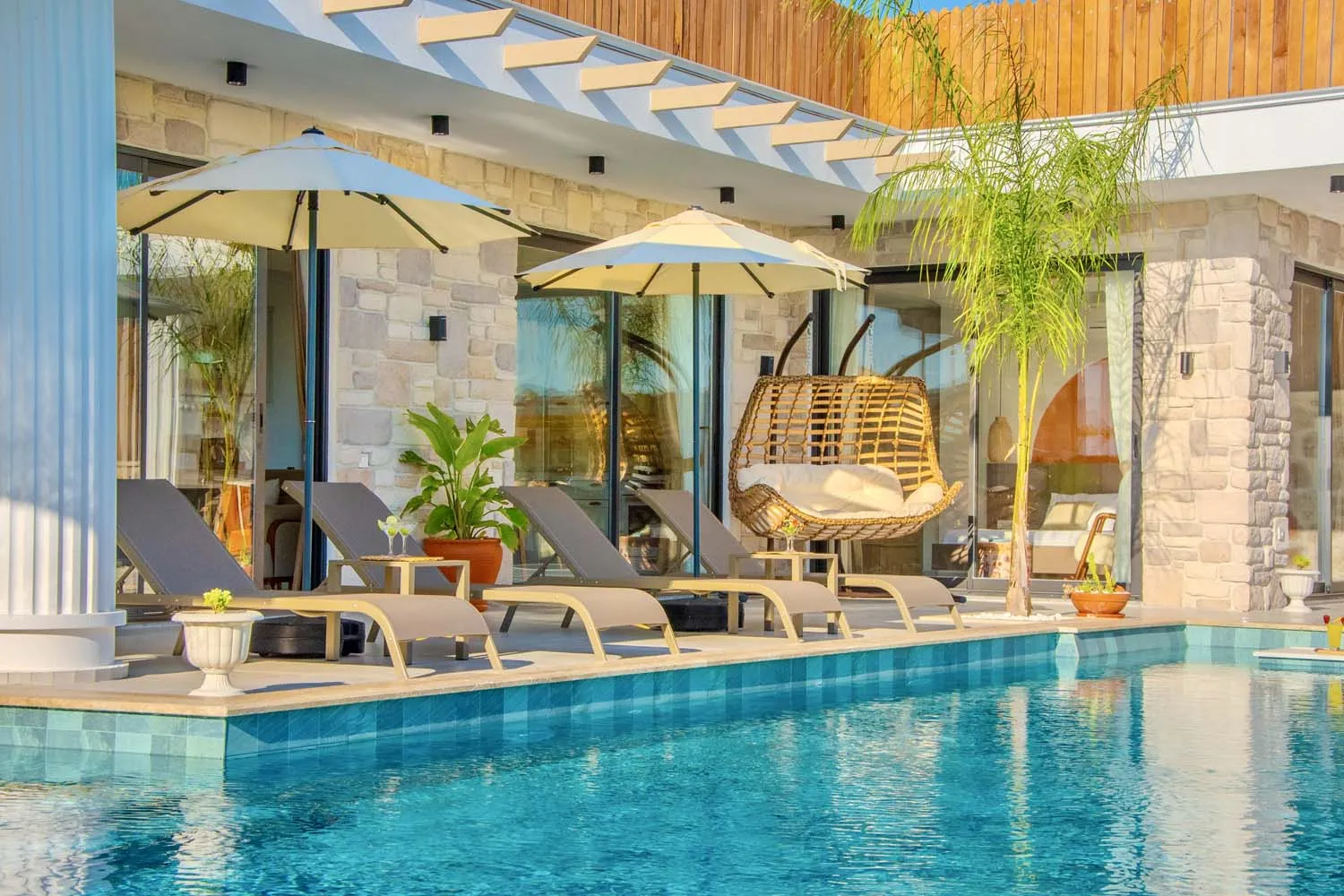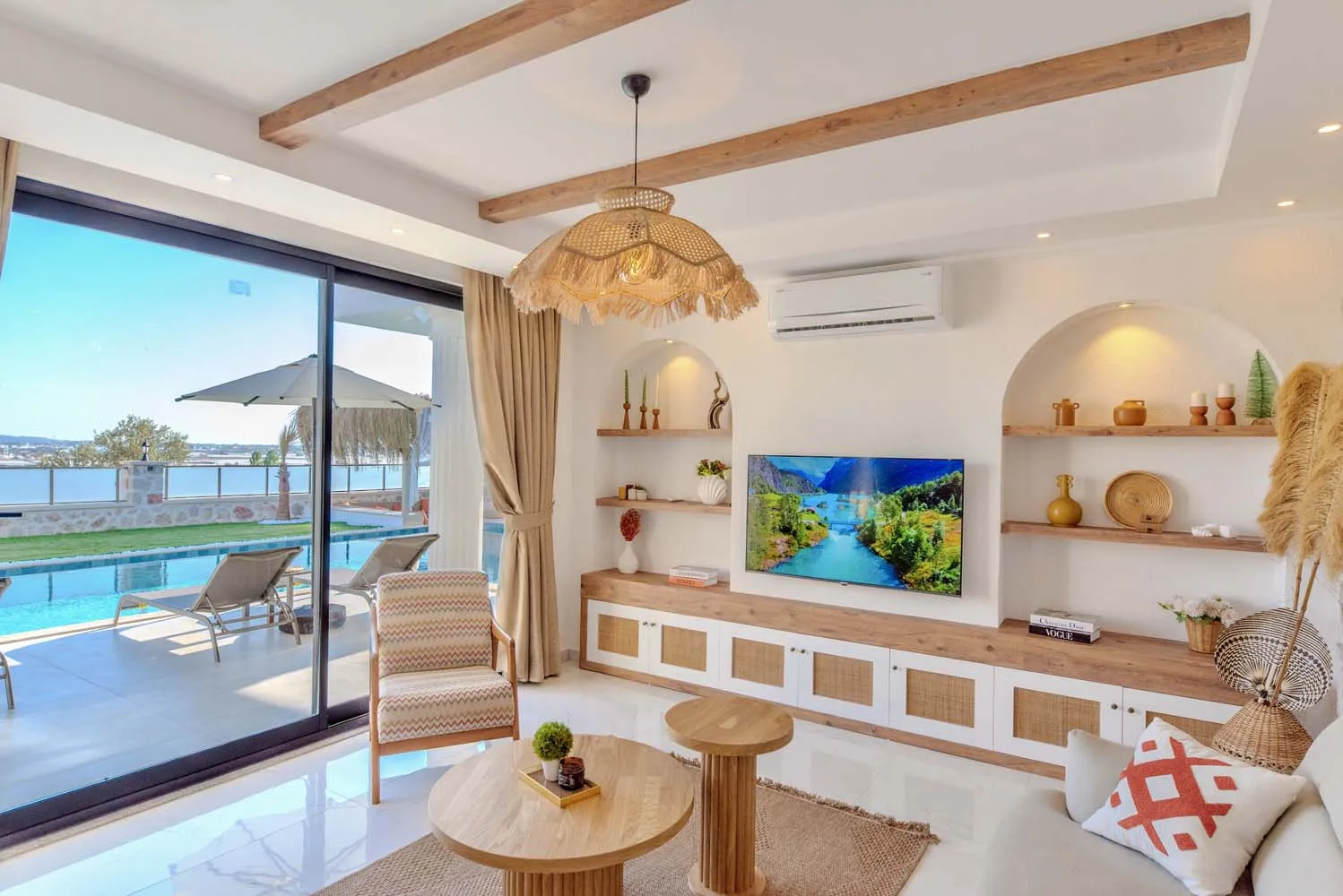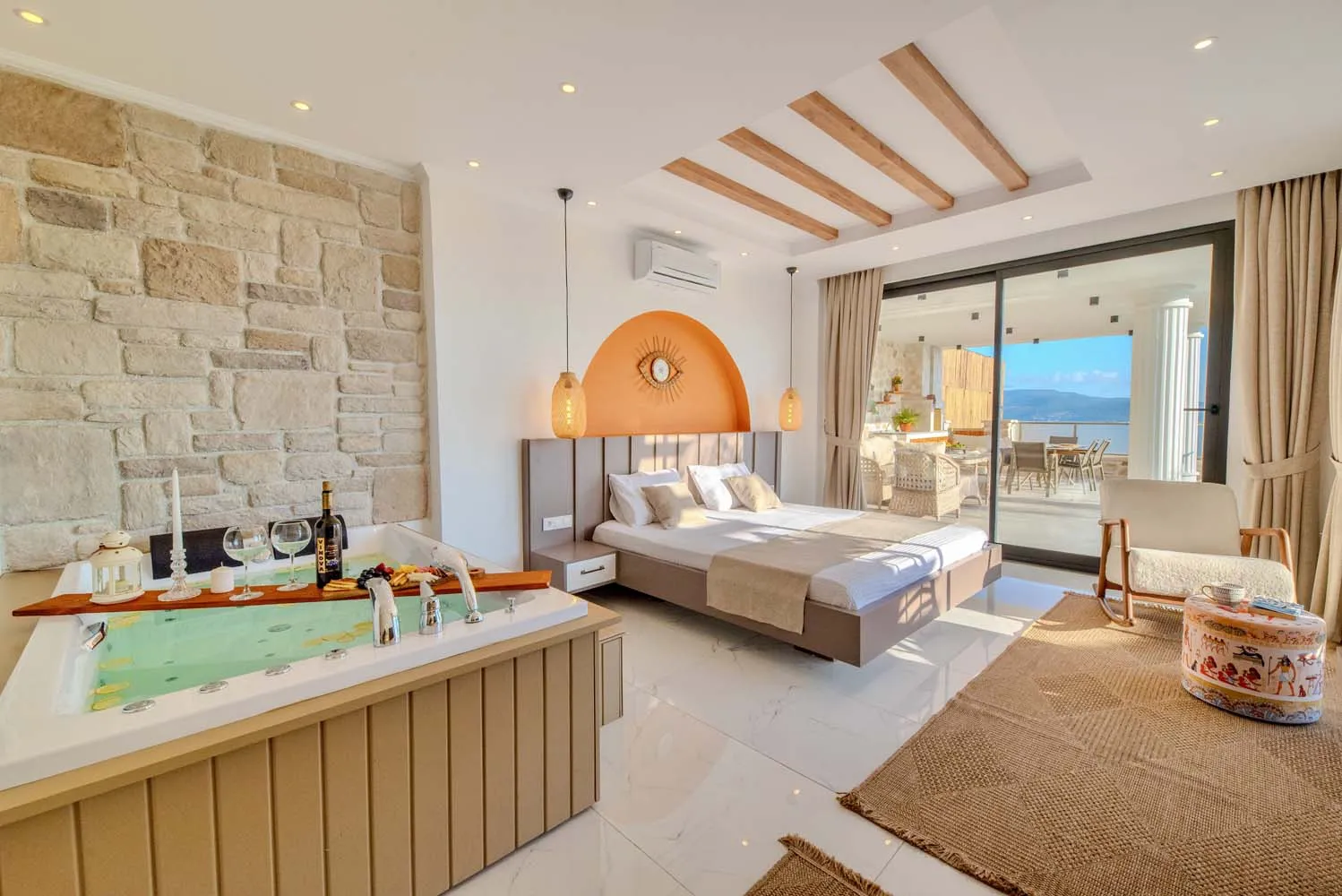 Çekirdek aileler ve balayı çiftleri için ideal bir tatil imkanı sunan villamızın modern mimarisi ve sunduğu olanaklar: