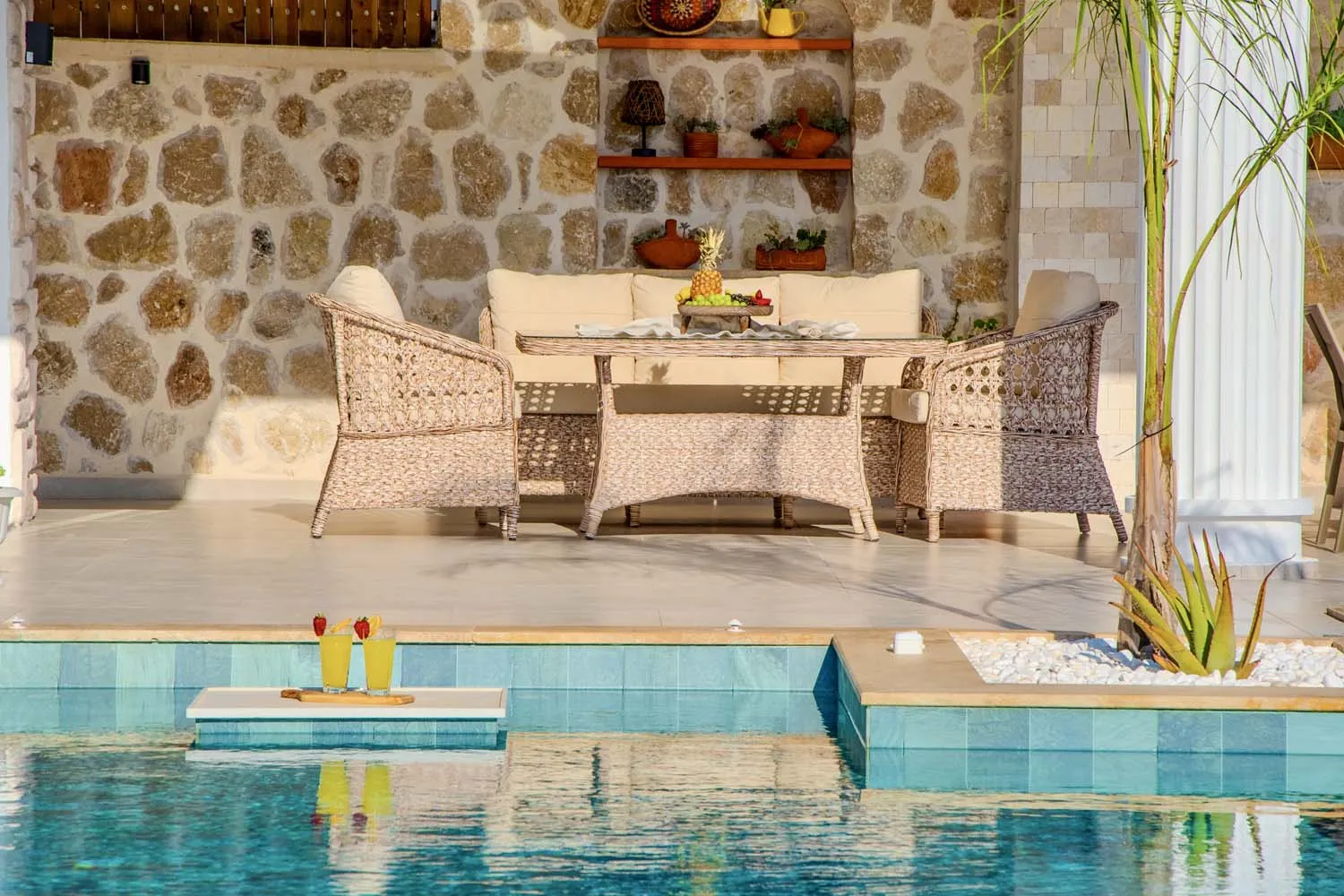 Kalkan Çavdır mevkiinde bulunan villamız, geniş bahçesi ve modern dekorasyonuyla misafirlerine eşsiz bir atmosfer sunar. İki yatak odalı olan villamızda 5 kişi konaklayabilir. Havuz terası tamamen çevrili olup dışarıdan görünmemektedir; bu sayede muhafazakâr aileler için de uygundur.