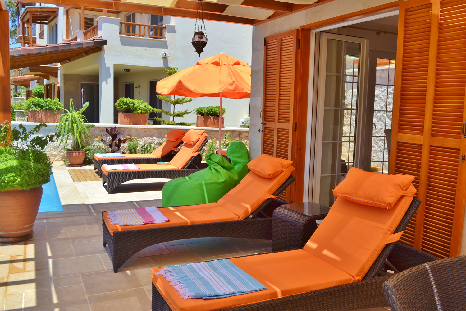 Salonumuzda konforlu lüks oturma grubu, klima, TV, uydu alıcısı, banyo ve tuvalet, havuz başı ve bahçeye çıkış bulunmaktadır.