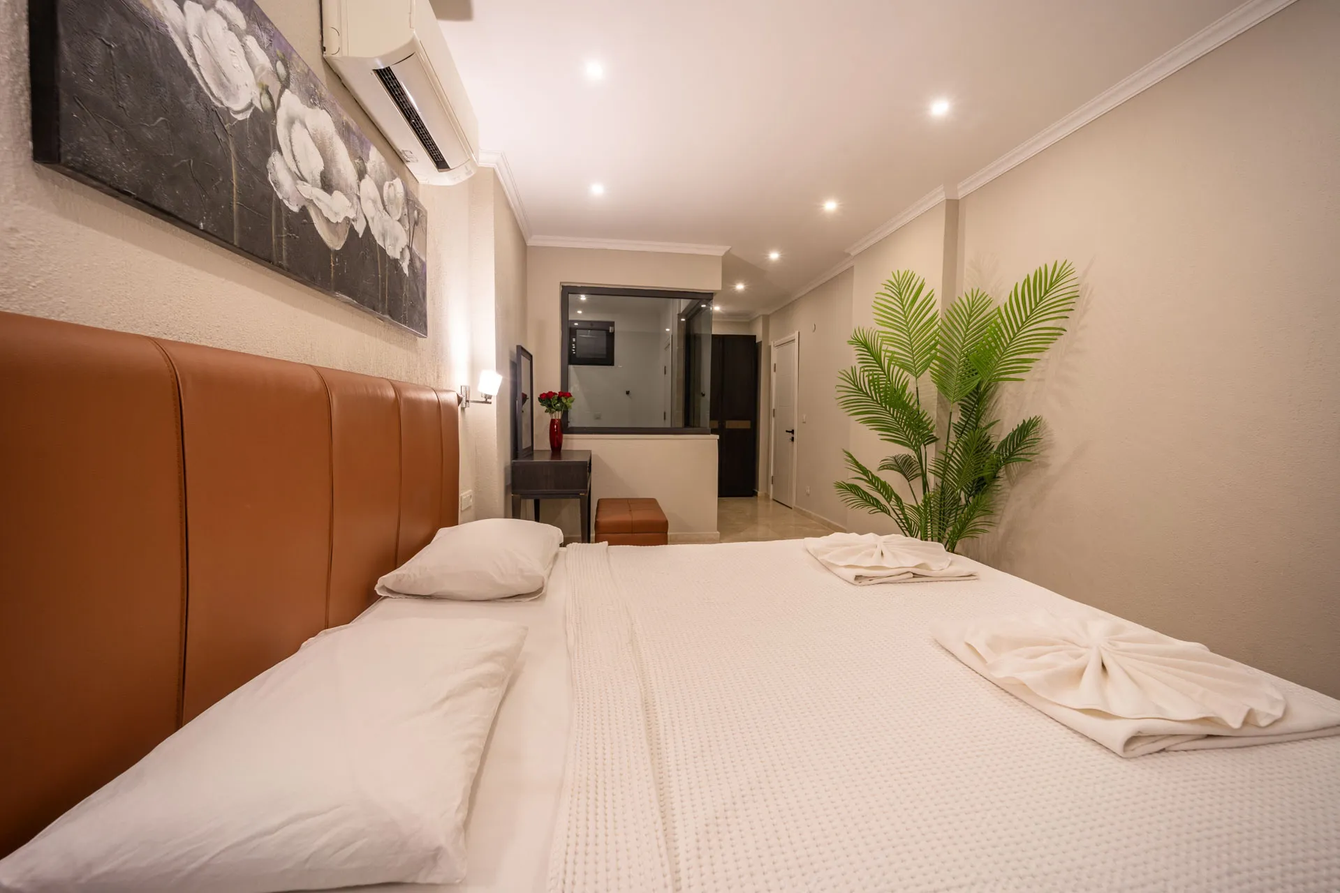 Yatak Odası: 1 adet çift kişilik yatak, komodin, makyaj masası, klima, banyo ve tuvalet.