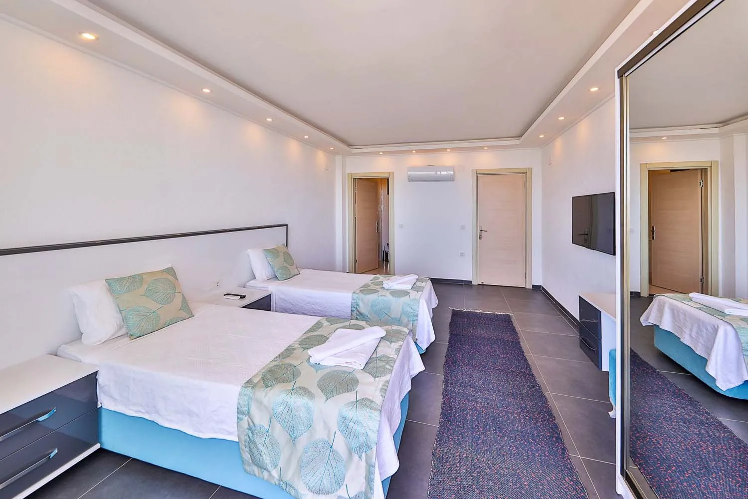 Kapasite: 3 odasıyla 6 kişi kapasitelidir. İki odasında çift kişilik yatak, bir odasında ise iki adet tek kişilik yatak bulunmaktadır. Tüm odalarda özel tuvalet ve banyo mevcuttur.
