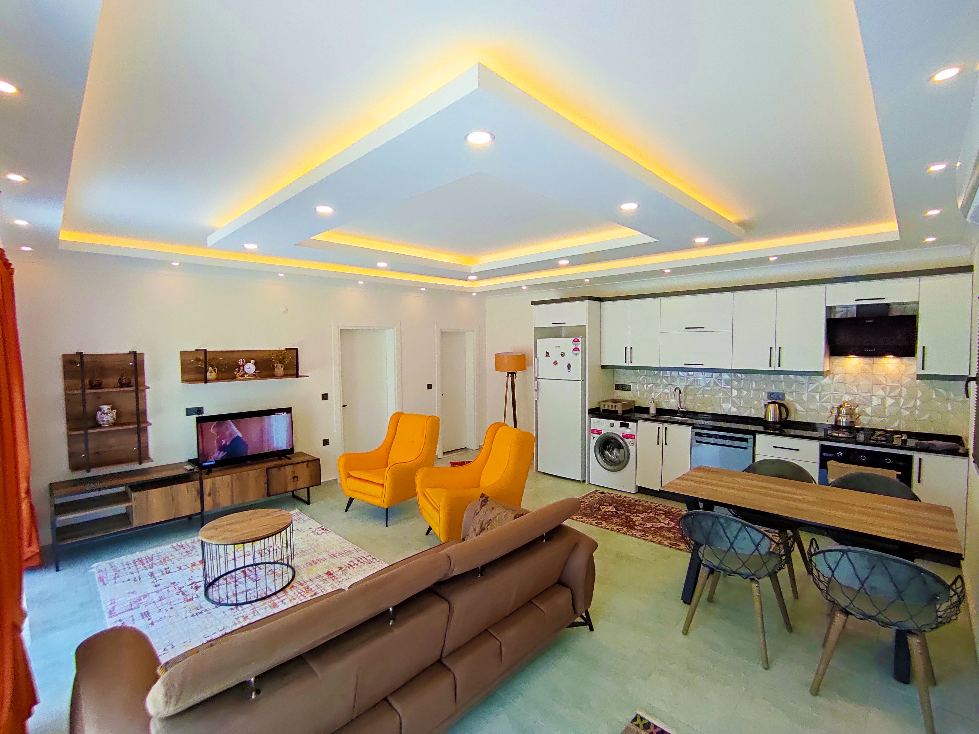 Amerikan açık mutfak, fırın, mikrodalga, bulaşık makinesi, çamaşır makinesi