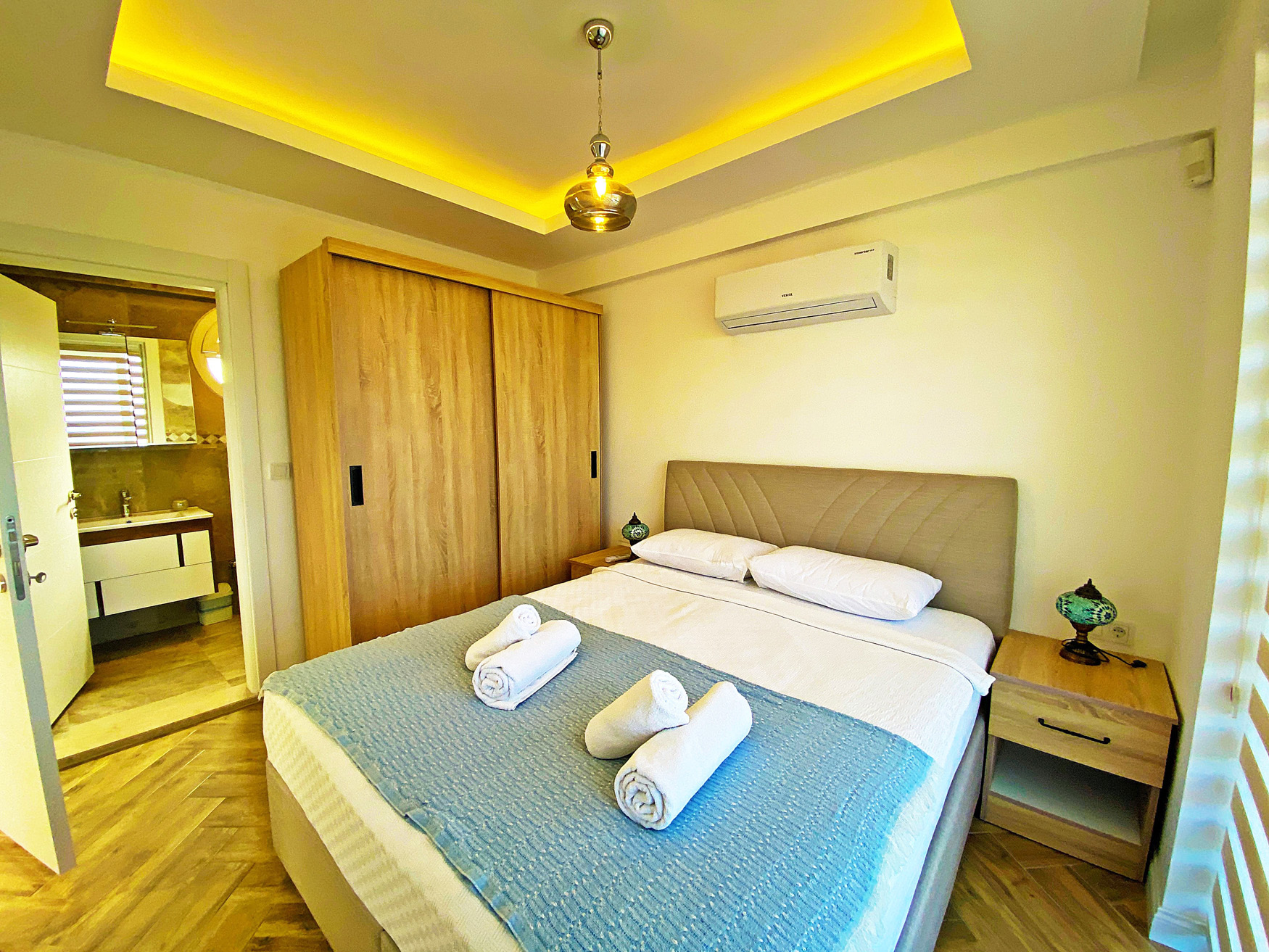 1.Yatak Odası : Çift kişilik yatak, Komodin, Klima, Makyaj Masası, Gardrop, Banyo ve Balkon bulunmaktadır.
