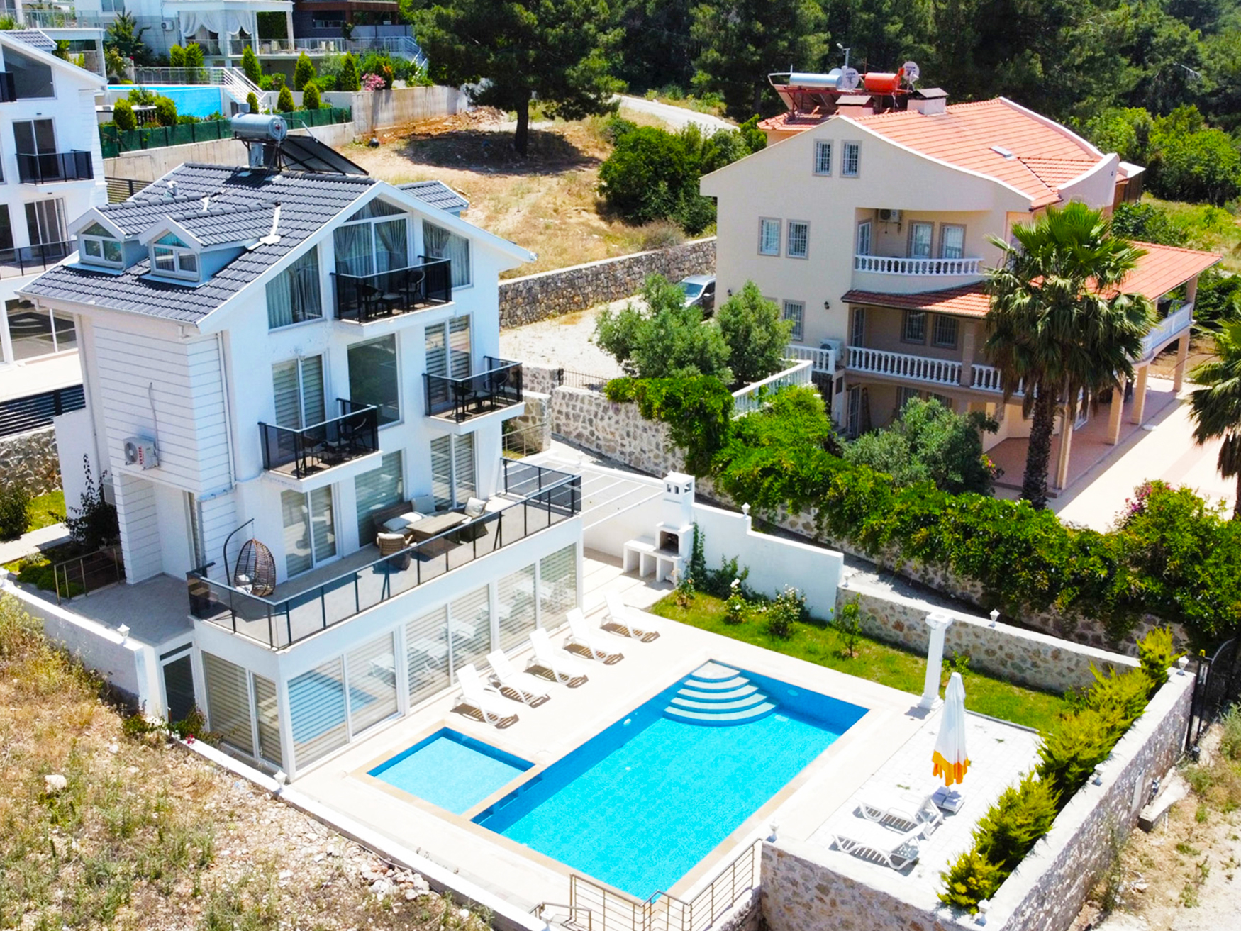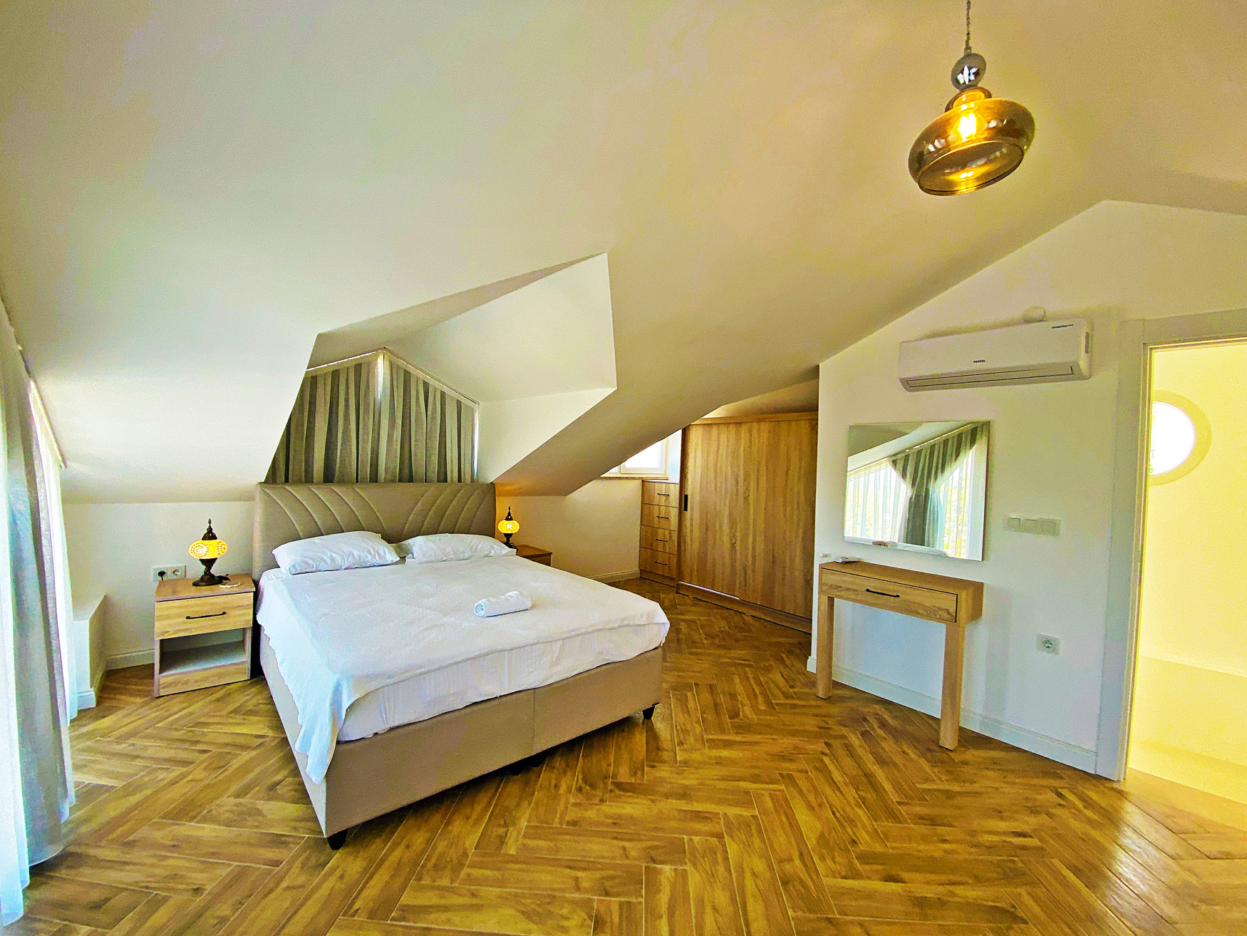 Muhteşem bir konumda geniş ve yemyeşil bir bahçe içerisinde yer alan bu özel villamız, eşsiz mimari yapısı ve modern dizaynı ile kendinizi ayrıcalıklı hissedeceğiniz şık bir villadır. Birbirinden şık geniş ve ferah 4 yatak odasına ve 8 kişilik konaklama kapasitesine sahip olan villamızda tüm yılın yorgunluğunu atıp keyif dolu zaman geçireceksiniz.