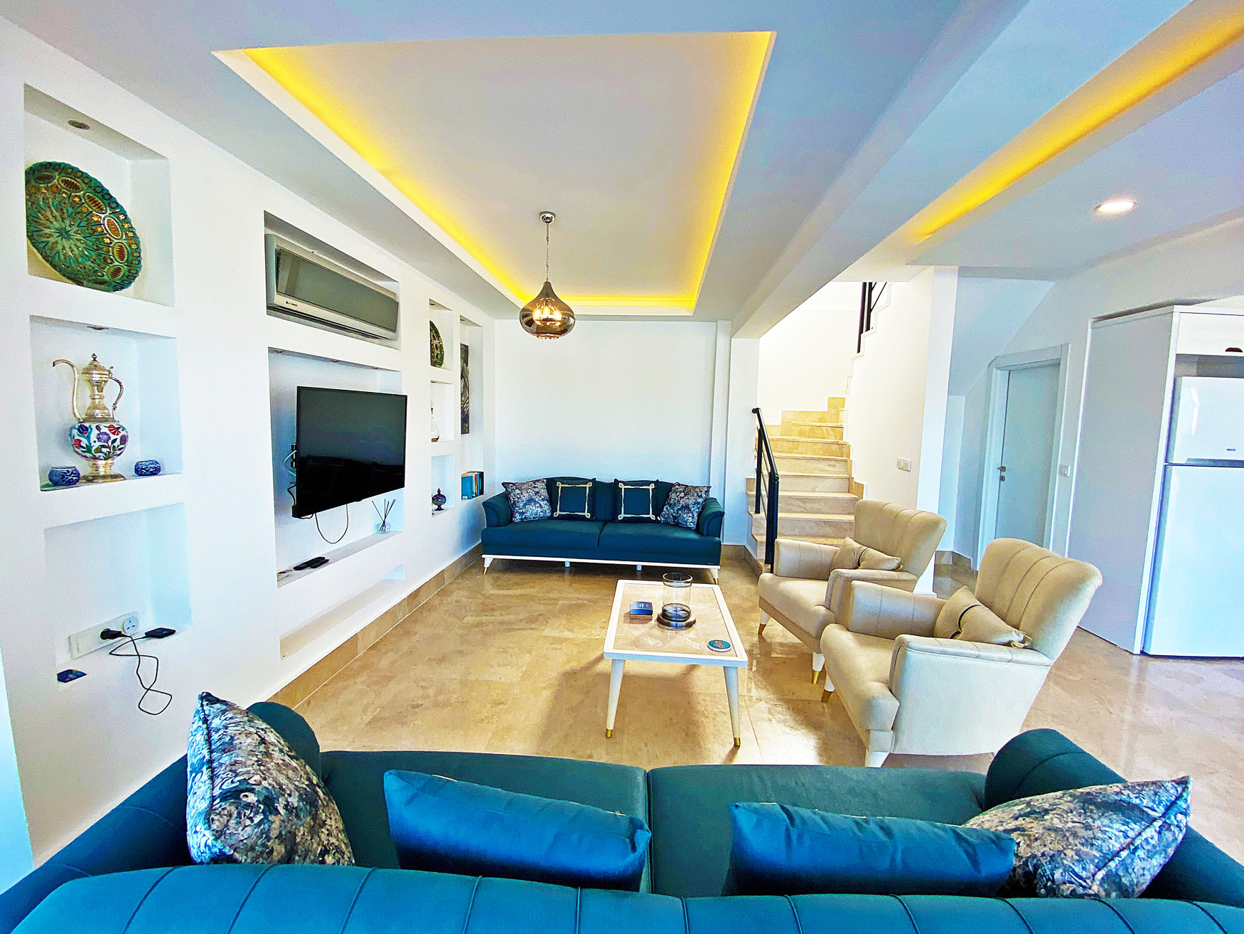 Salon : Açık plan salon/mutfak şeklinde dizayn edilmiş ve zemin katta yer almaktadır.
