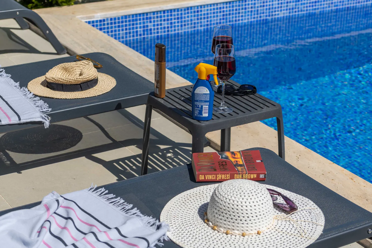 Havuz - Bahçe Bakımı : Doğa içerisinde konuma sahip olan tüm villalarımızda düzenli olarak ilaçlama yapılmaktadır. Buna rağmen çevrede; kelebek, böcek, sinek vs. bulunma ihtimali vardır. Havuz ve bahçe bakımı hergün yapılmaktadır.