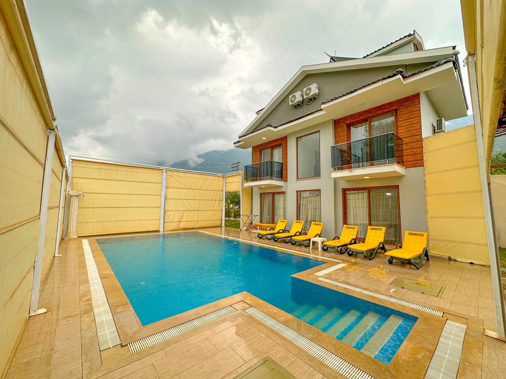 Villamızın havuzunu çevreleyen açılır kapanır branda sistemi ile havuz ve havuz terası korunaklı olup çevreden gözükmemektedir. Gözlerden uzak sakin bir konumda olan korunaklı bir villada tatil yapmak isteyen misafirlerimiz için ideal bir seçenektir. ferah kullanım alanları ve modern dizaynı ile siz değerli konuklarımızı bekliyor.