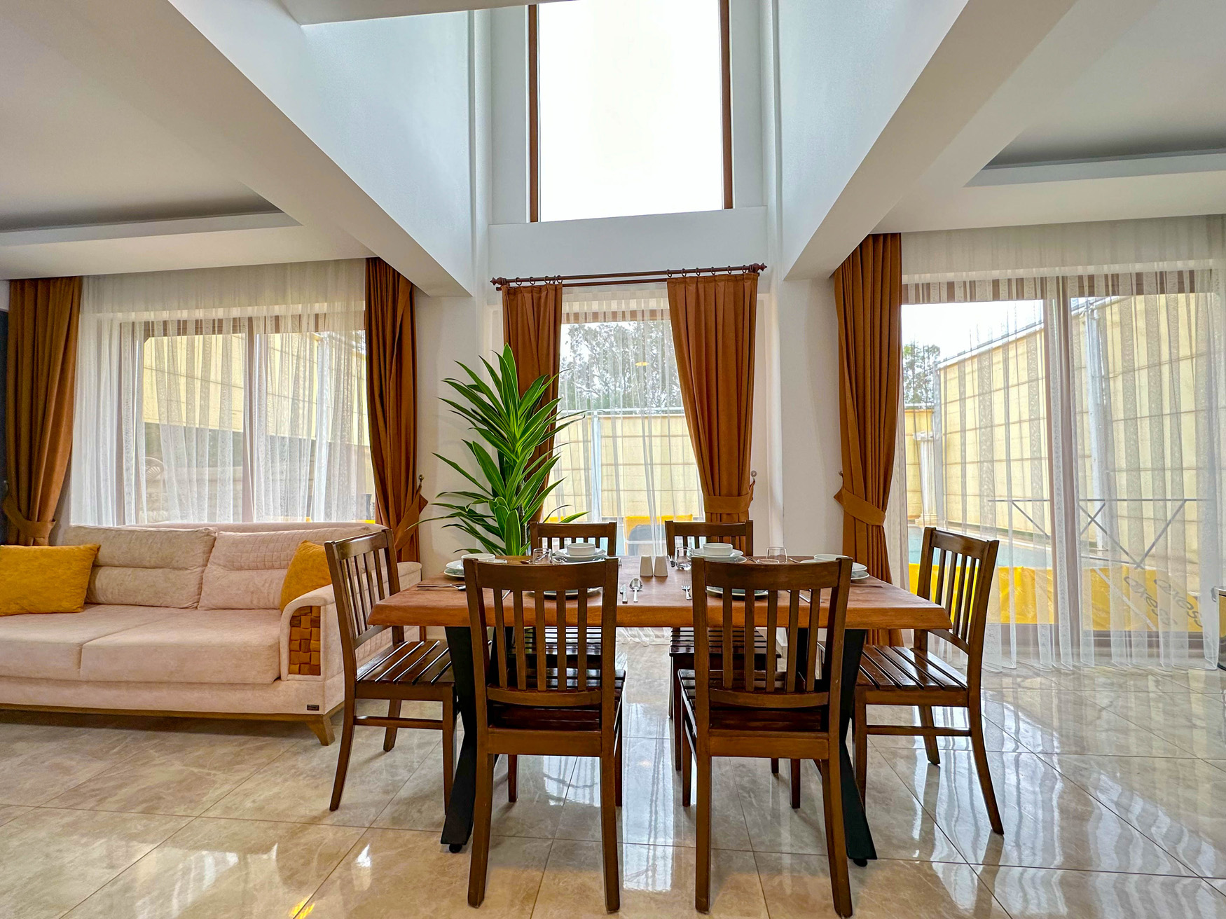 Detayları : Oturma grubu, LCD TV, Klima, 6 kişilik yemek masası ve havuz terasına geçiş ve bulunmaktadır