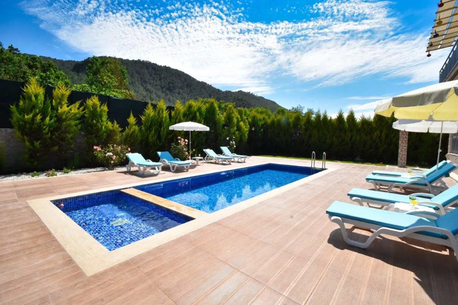 Yemyeşil ve oldukça geniş bir bahçe alanına sahi olan bu doğa içinde villa özellikle çocuklu aileler için rahat bir kullanım alanı sunmaktadır oyun alanı sayesinde çocuklar güvenli bir şekilde vakit geçirebilirken yetişkinlere bahçe ve havuz alanında keyifli zaman geçirebilir. jakuzisi bulunan villamız tatil boyunca dinlenmek ve rahatlamak isteyen misafirler için konforlu bir detay sunmaktadır.