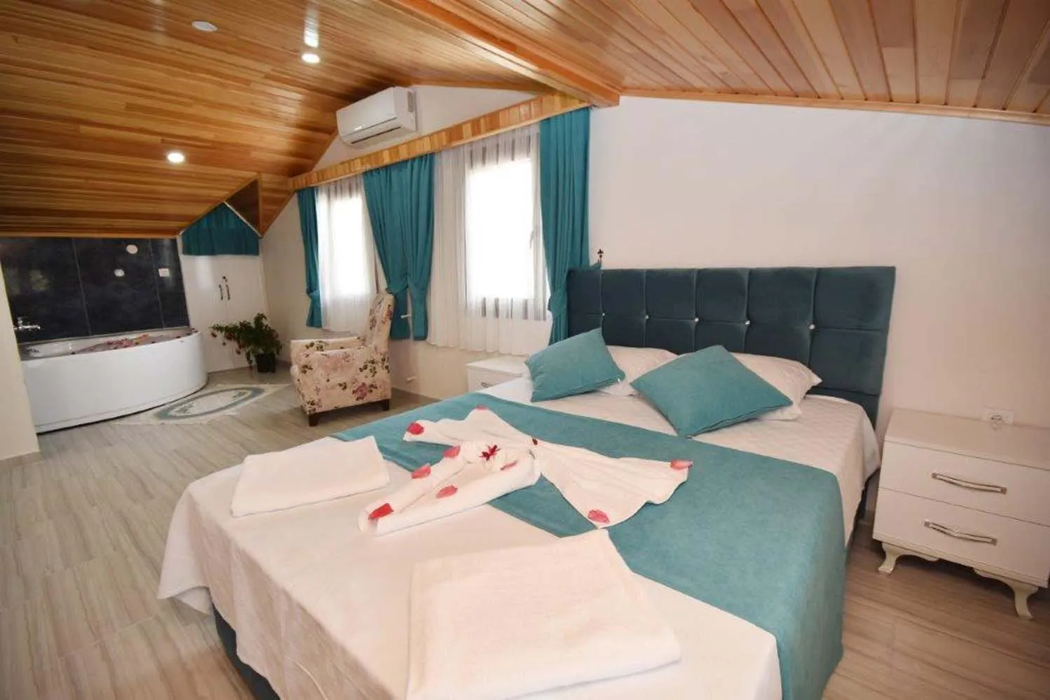 Fethiye Kayaköy mevkiinde konumlanan bu 7 kişilik kiralık villa doğa ile iç içe geniş ve ferah bir alanda yer almaktadır toplam 4 yatak odasına sahip olan villamız kalabalık aileler ve arkadaş grupları için konforlu bir konaklama imkanı sunmaktadır bahçe ve havuz çevresinin korunaklı şekilde düzenlenmiş olması sayesinde gözlerden uzak sakin bir tatil geçirmek isteyen misafirler için ideal bir ortam sağlar.