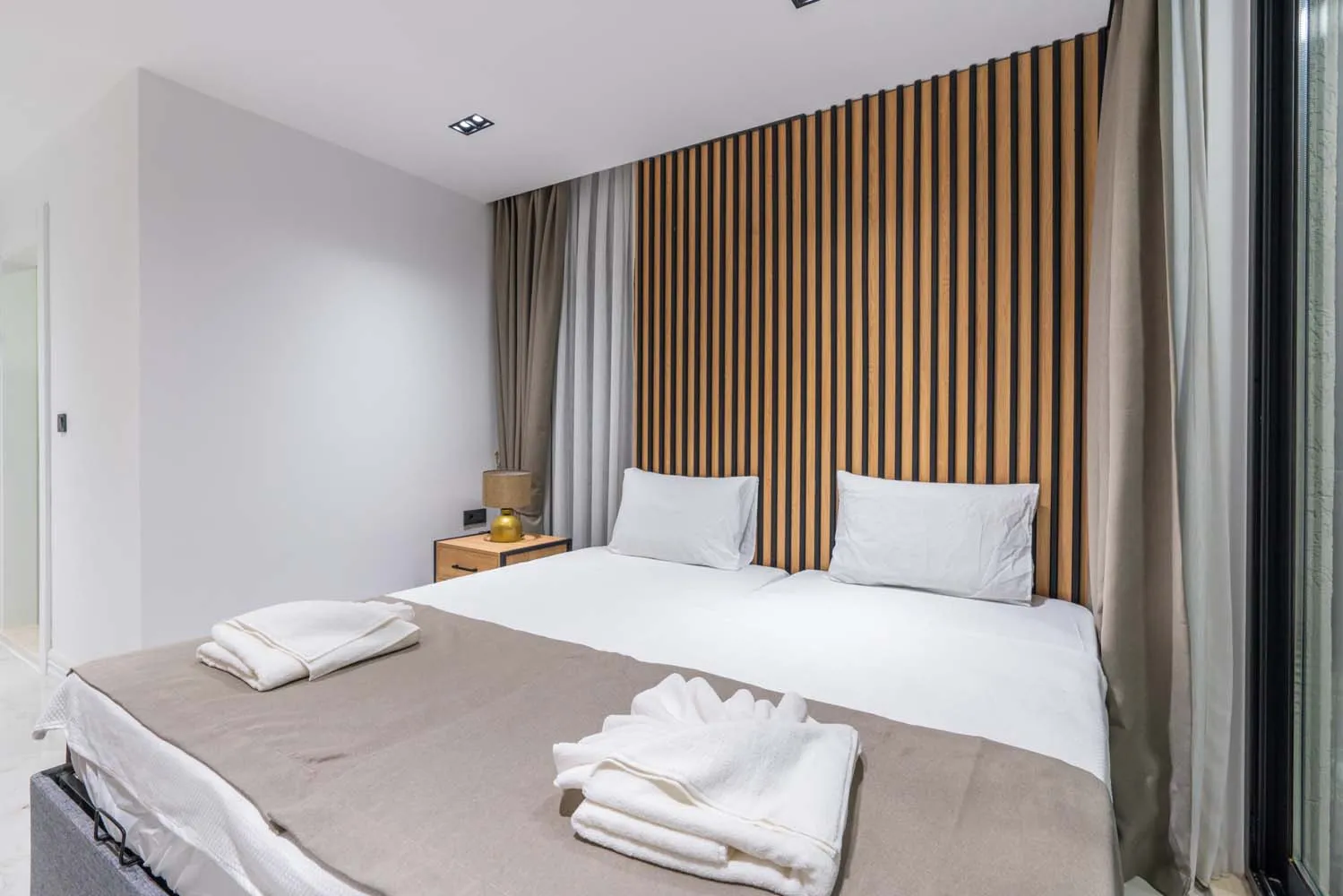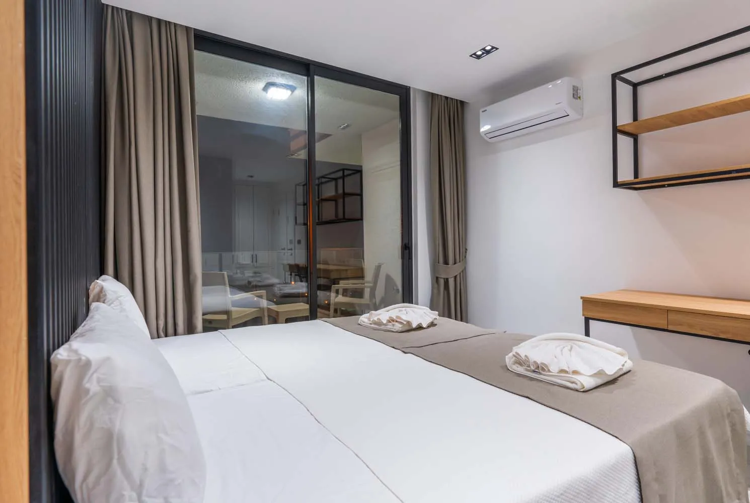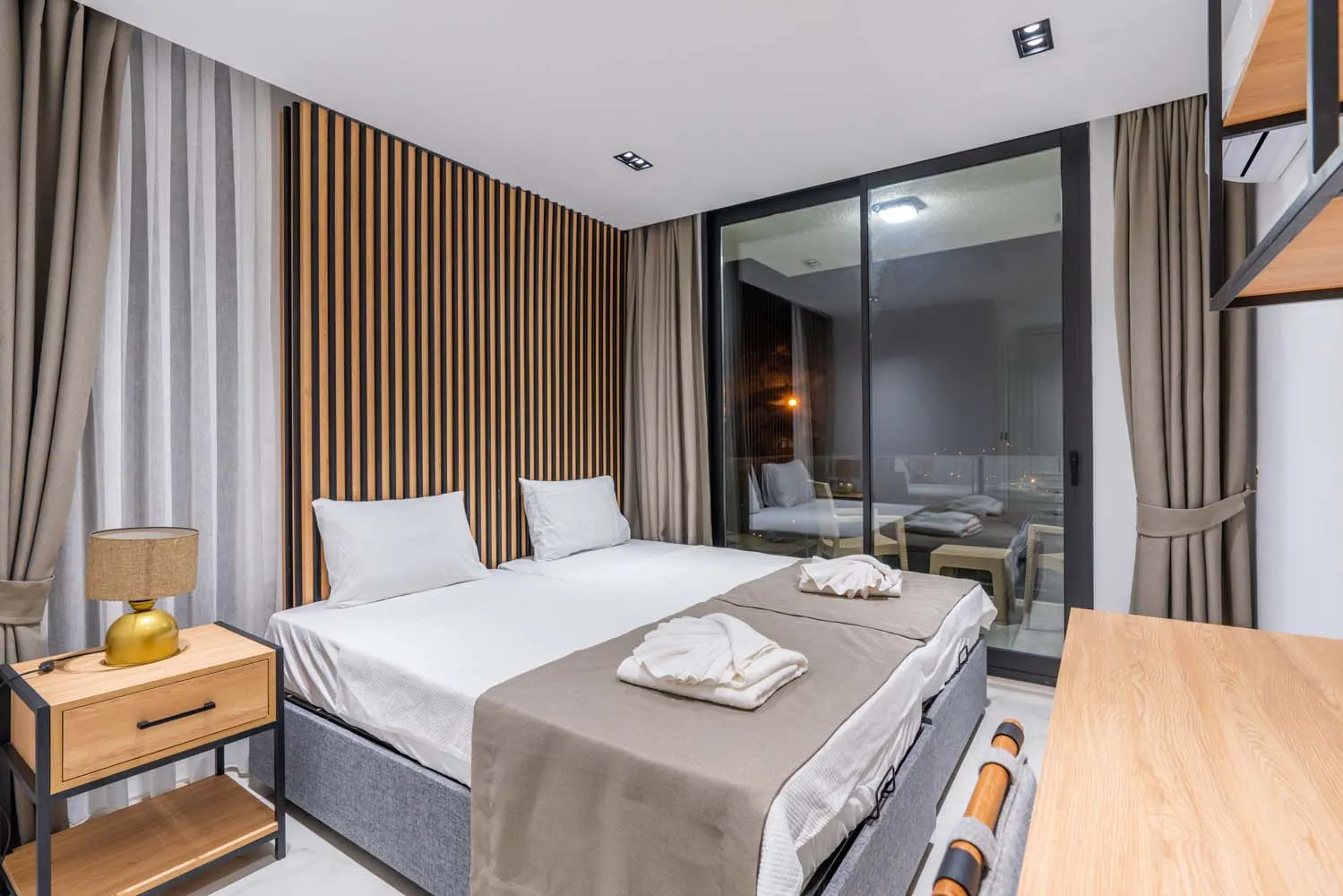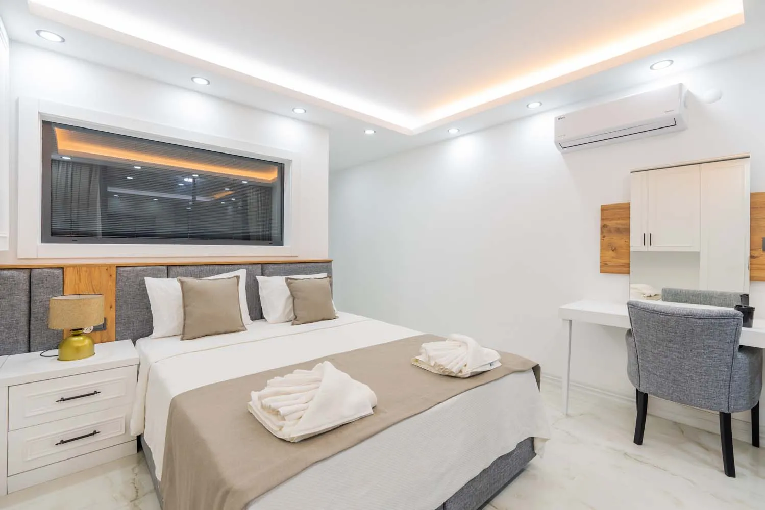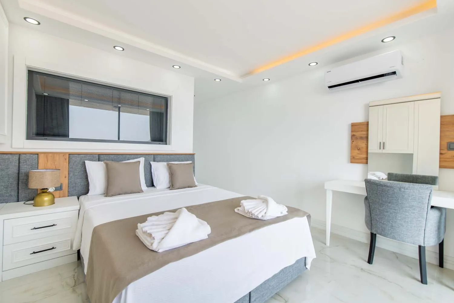 Yatak odaları, rahatlığı ön planda tutan bir tasarıma sahiptir. Çift kişilik ve tek kişilik yatak seçenekleri bulunan odalar, aydınlık yapıları ve konforlu mobilyalarıyla tatil boyunca dinlendirici bir atmosfer sunar. Bazı odalardan deniz manzarası izlenebilirken, özel banyo imkânı da misafirlerin konforunu artırmaktadır.