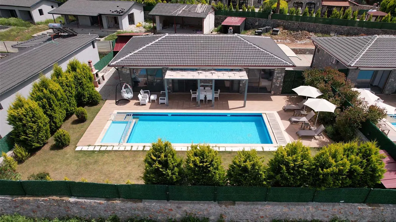 Oldukça geniş yeşil alana sahip villamızın havuzunda çocuk havuzu da bulunmaktadır.