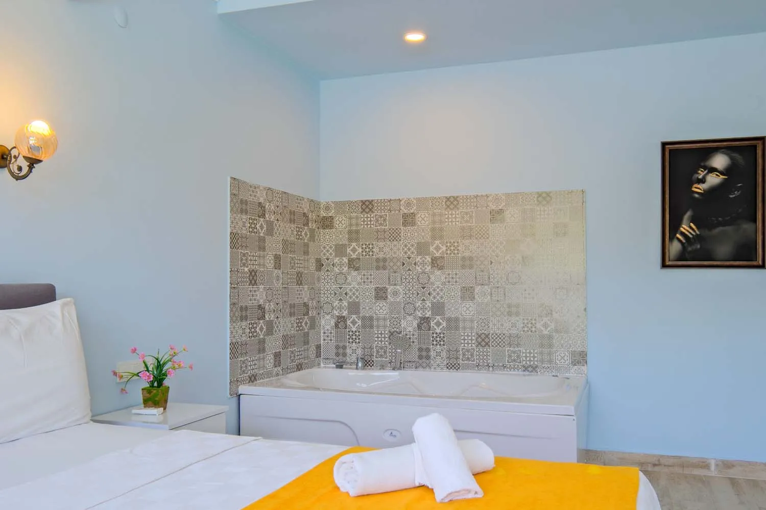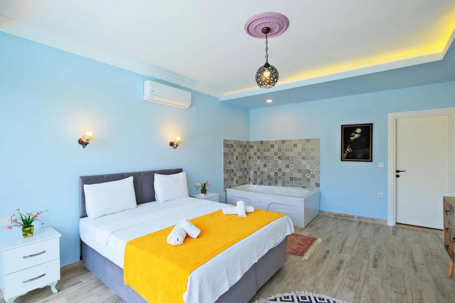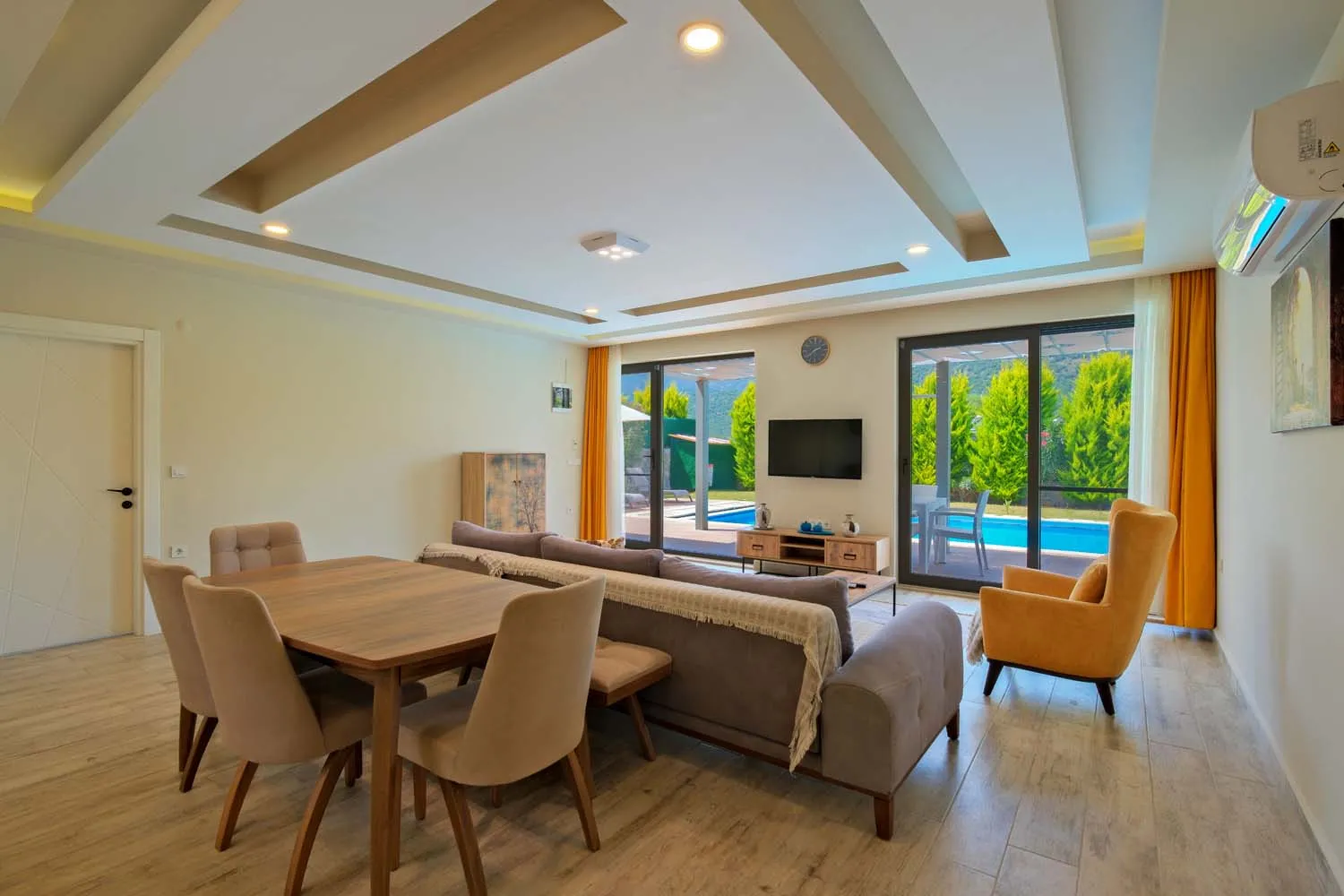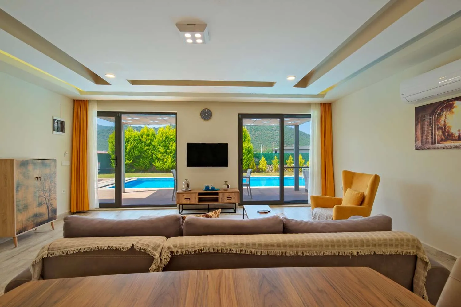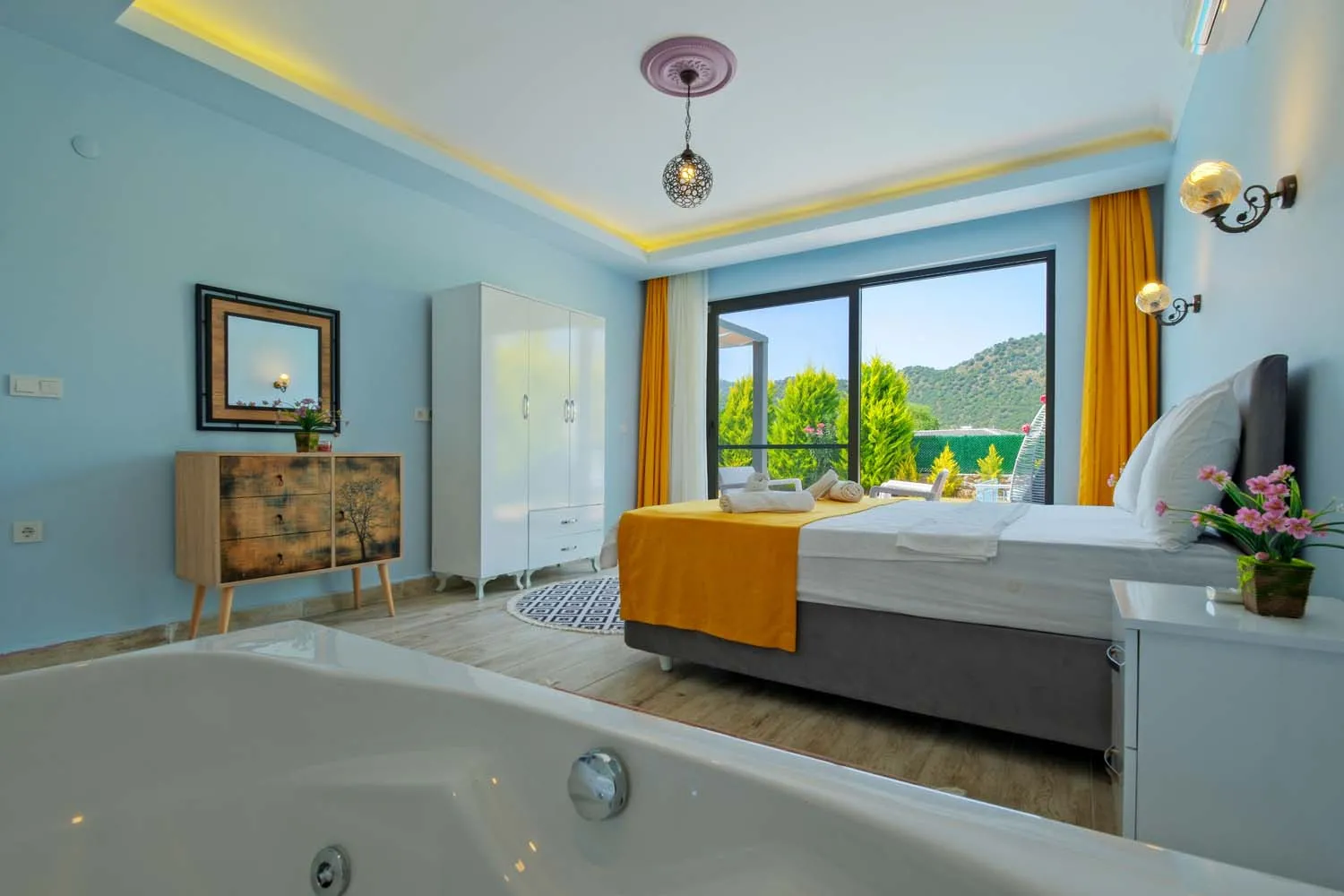 Ebeveyn yatak odasında jakuzi de bulunan villamızın havuz alanı korunaklıdır ve dışarıdan görünmemektedir.
