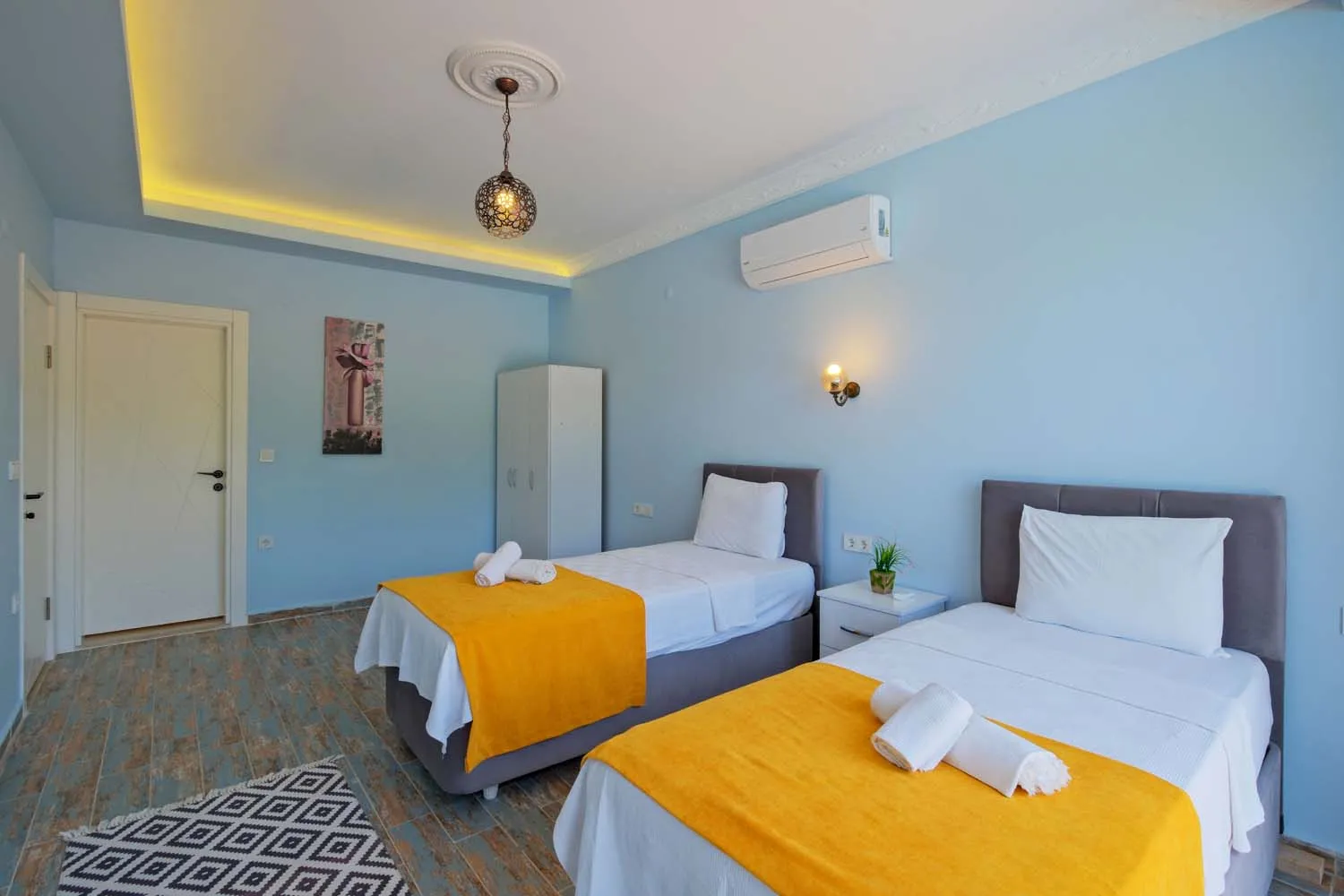 2 suit yatak odalı villamız, 4 kişiye kadar konaklama kapasitelidir.