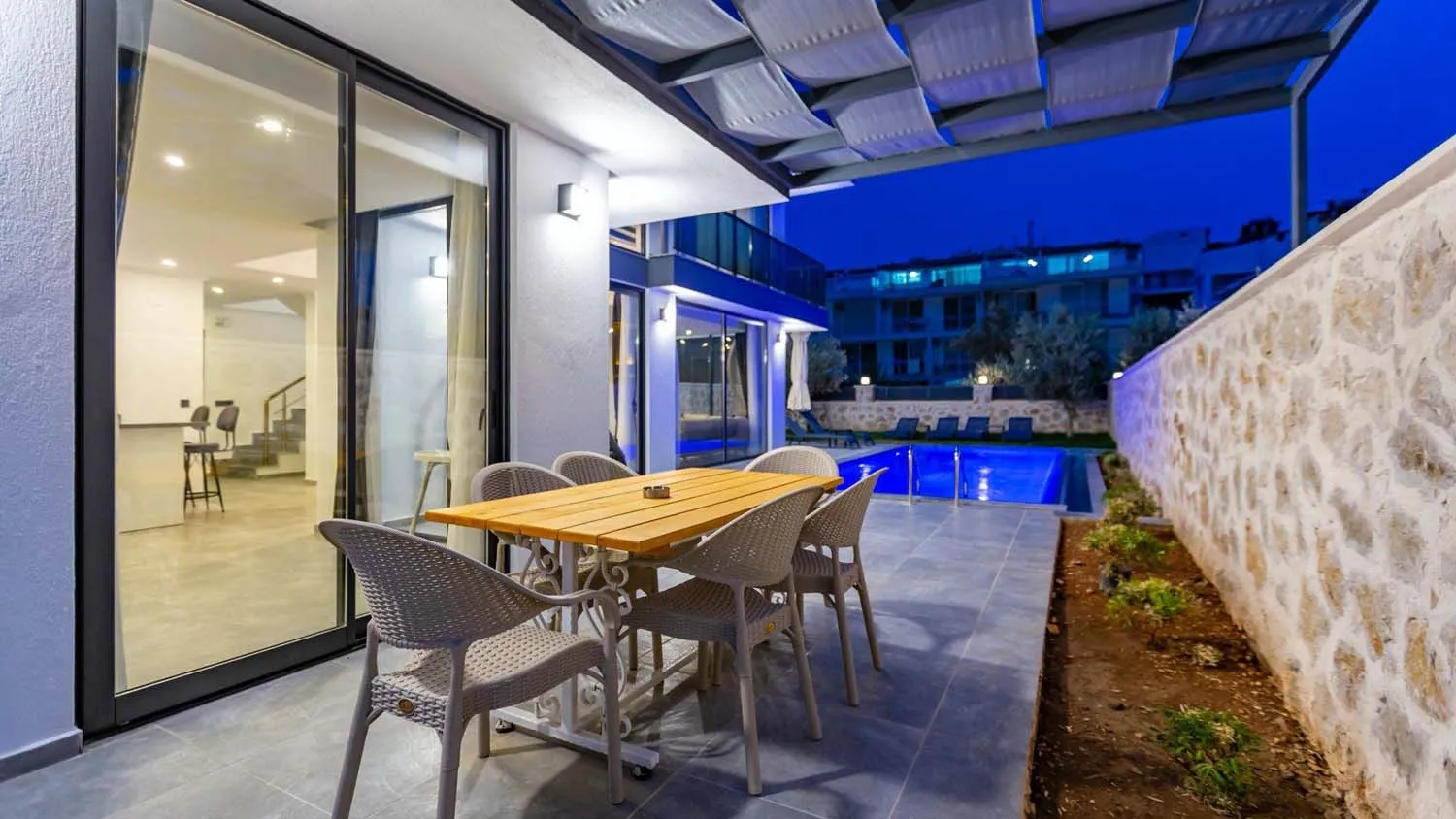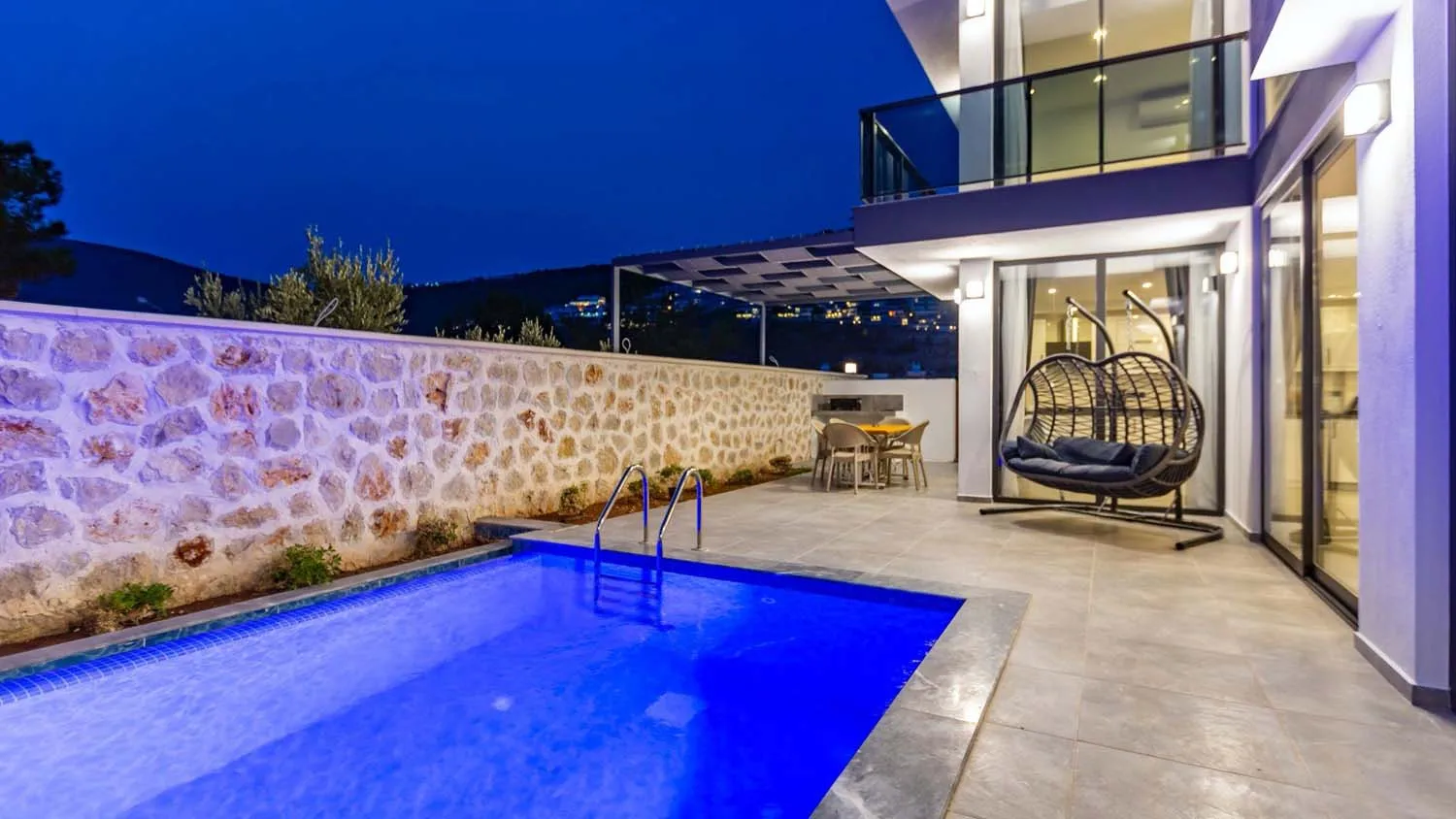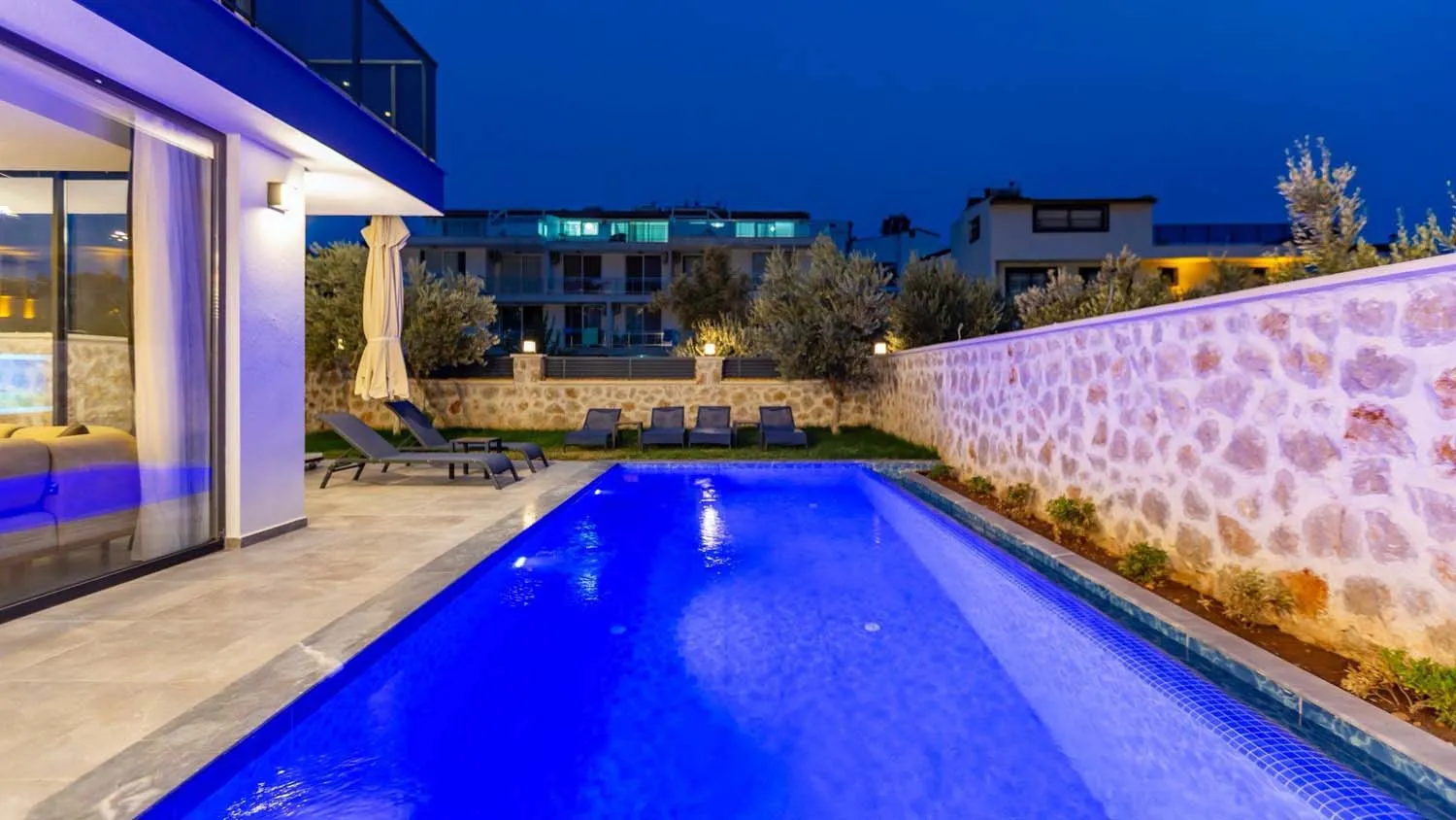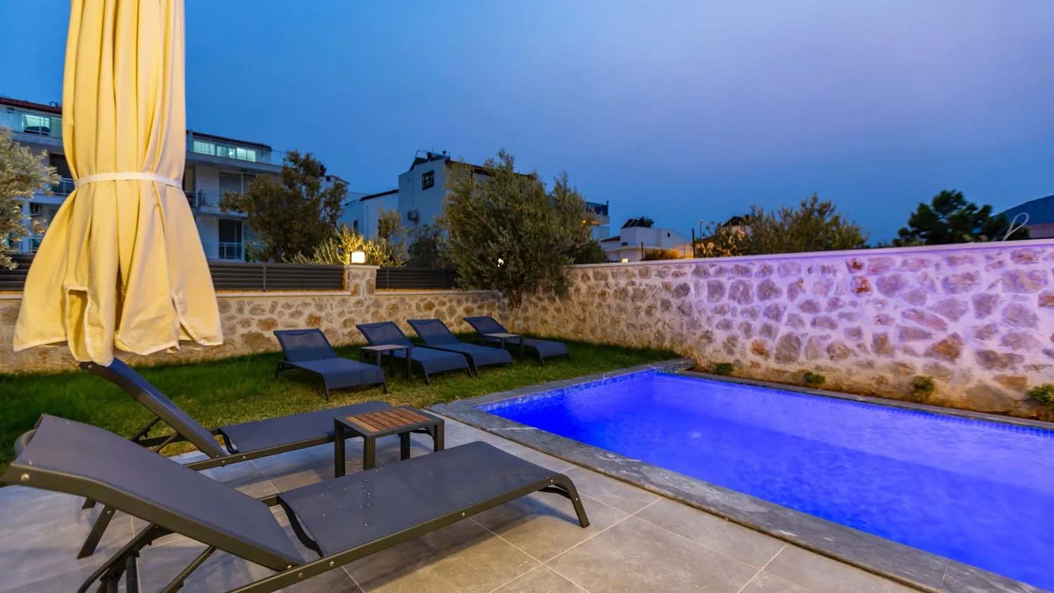 Dış alanda yer alan özel havuz, gün boyunca keyifli vakit geçirmek isteyen misafirler için ideal bir alan sunmaktadır. Havuz başında geçirilen zaman, tatil süresince dinlenmek ve rahatlamak isteyen misafirler için keyifli bir atmosfer oluşturur.