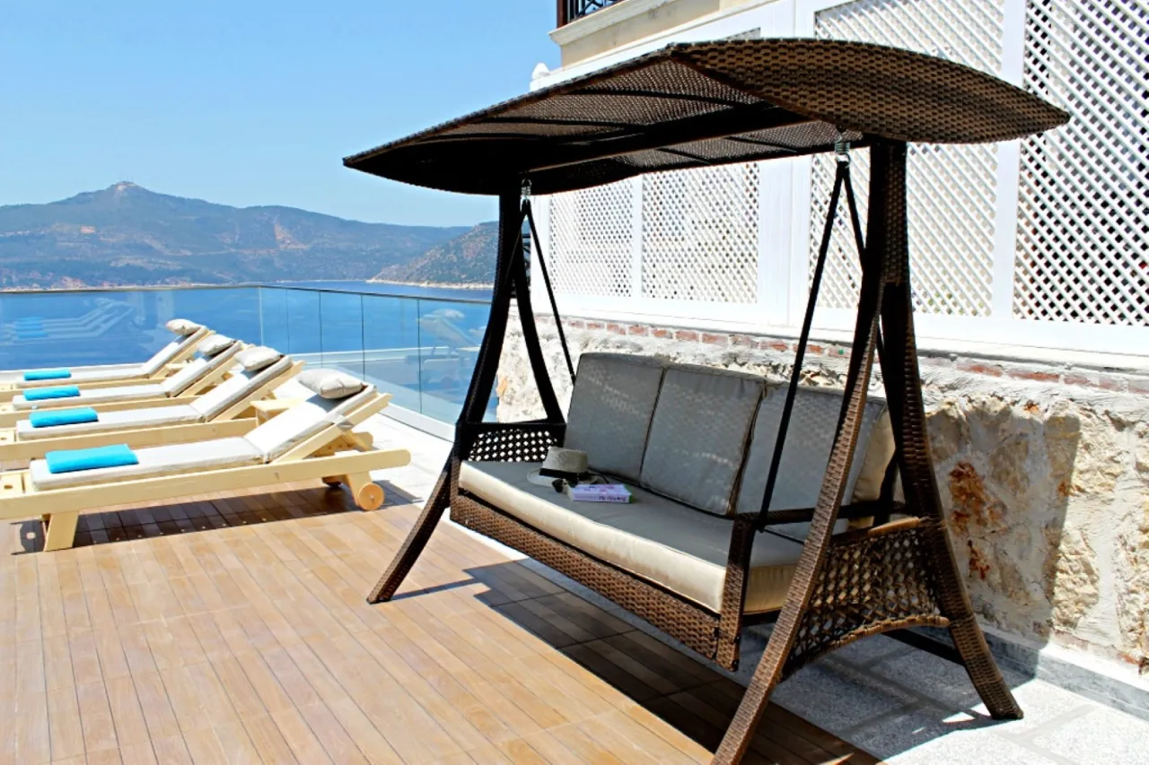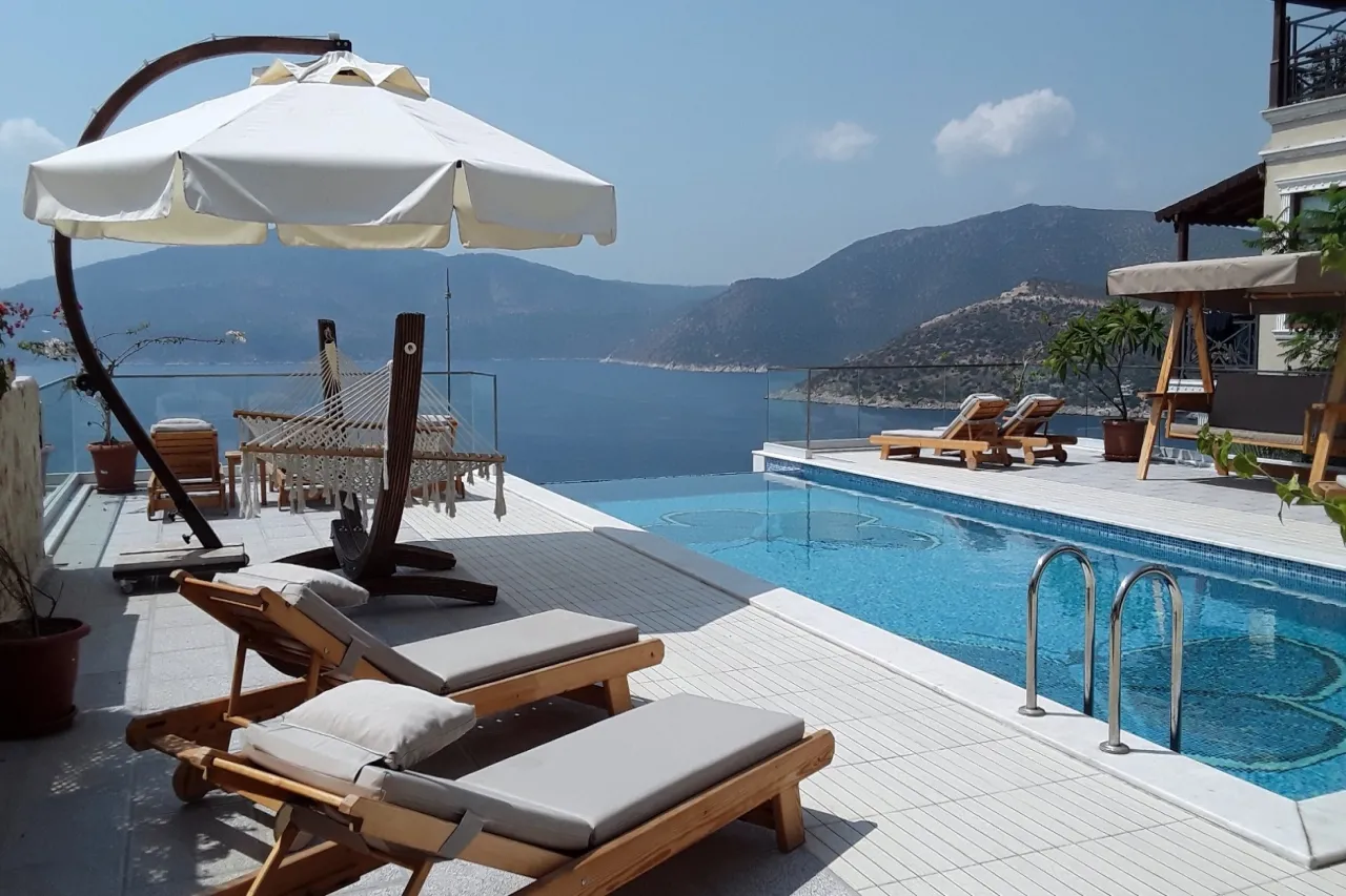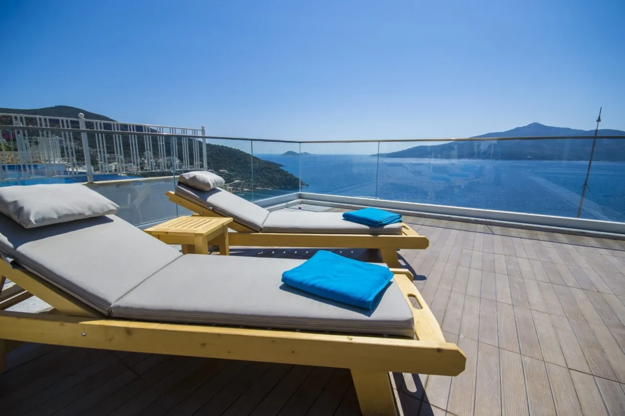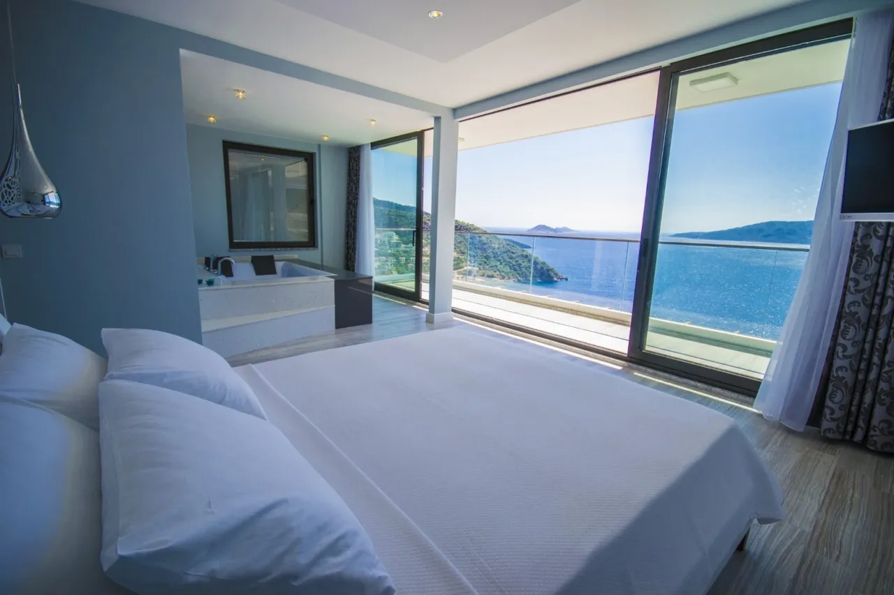 Konum avantajı da cabası. Ünlü Mahal Beach Club sadece 5 dakikalık yürüme mesafesinde. Kalkan merkezi, plaj ve restoranlar ise 20–25 dakikalık keyifli bir yürüyüş ya da 5 dakikalık bir sürüş uzağında. Yakındaki plaj kulüplerinden su taksi hizmeti de sunuluyor.