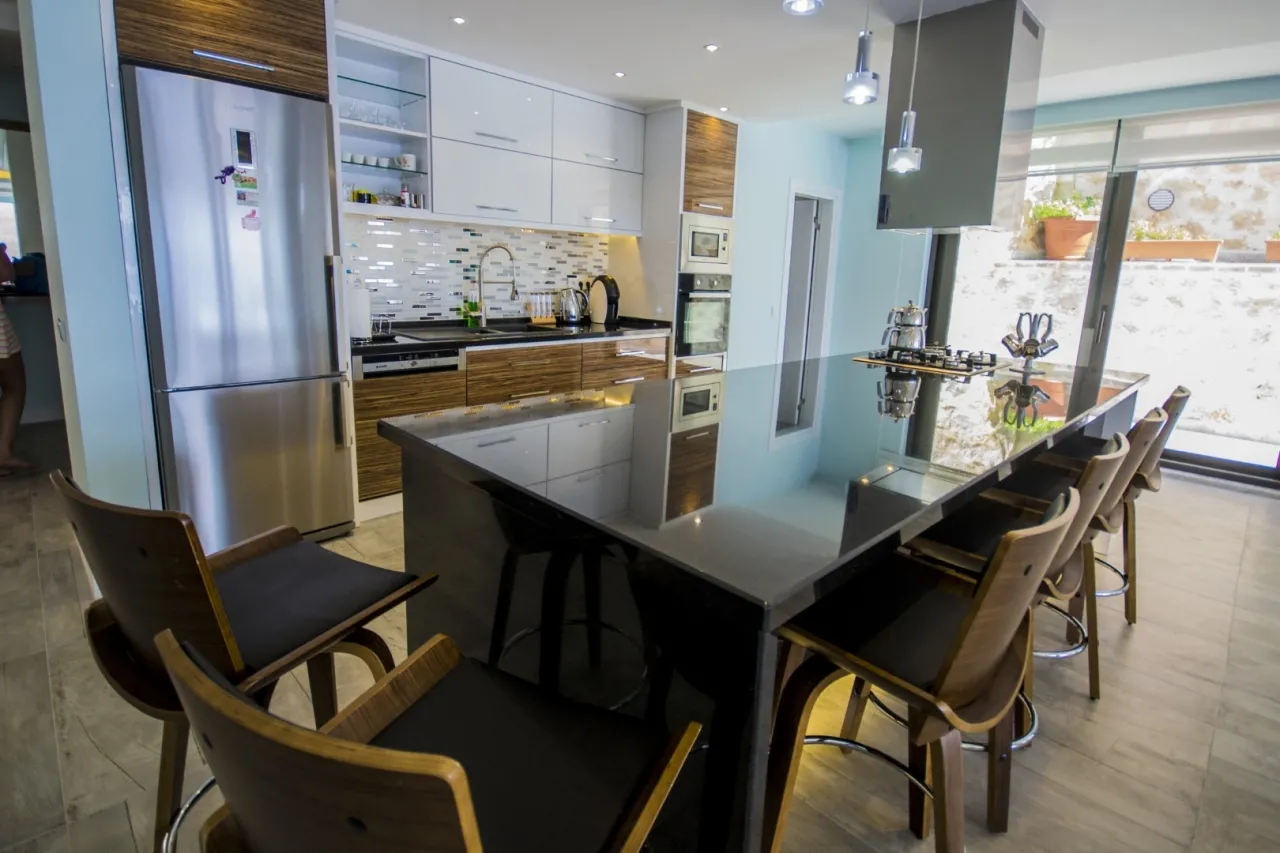Mutfak: Modern Amerikan mutfakta buzdolabı, bulaşık makinesi, fırın, ocak, mikrodalga fırın, ekmek kızartma makinesi, kettle, yemek masası, yemek takımları, çatal-bıçak takımları ve tencere-tava setleri bulunuyor.