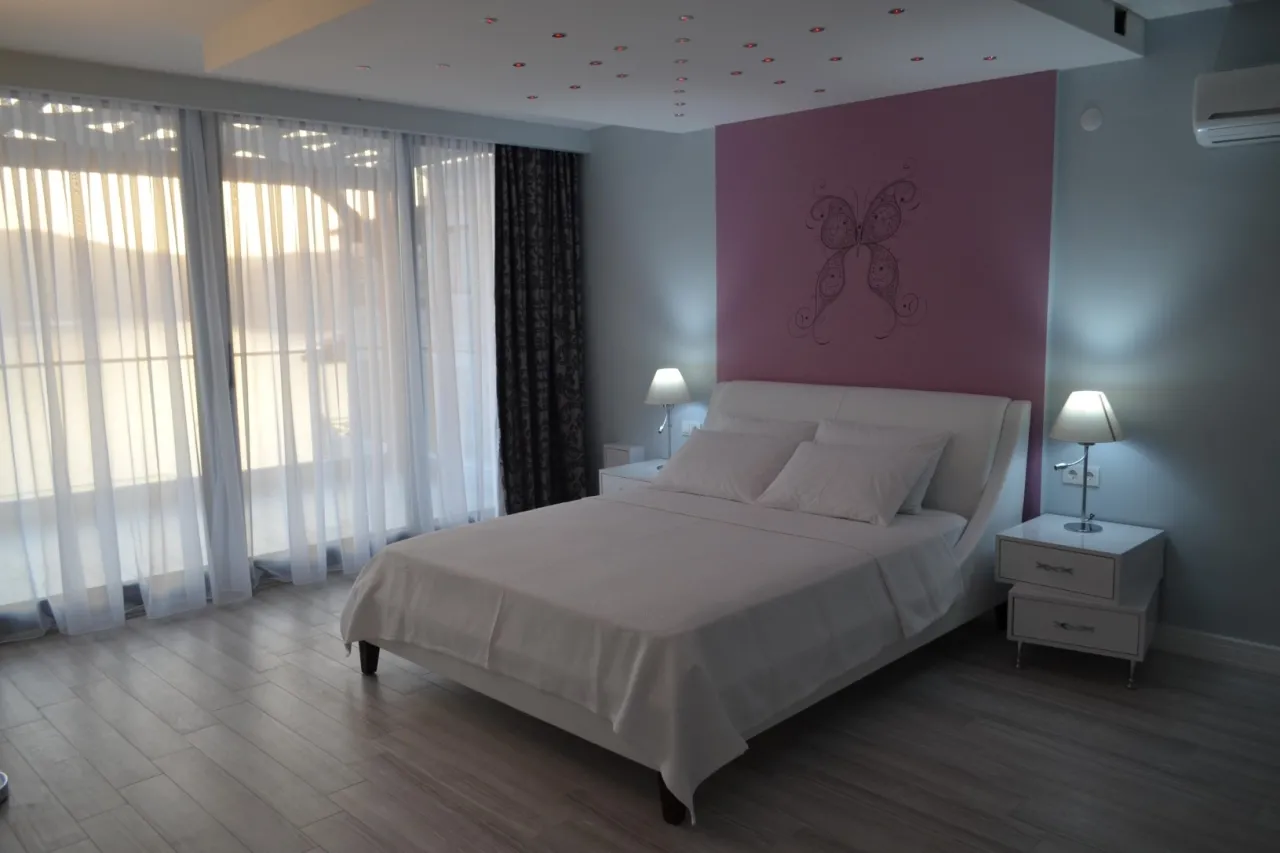 5.Yatak Odası: Çift kişilik yatak, klima, komodin, elbise dolabı, makyaj masası, jakuzi, balkon, banyo ve tuvalet.