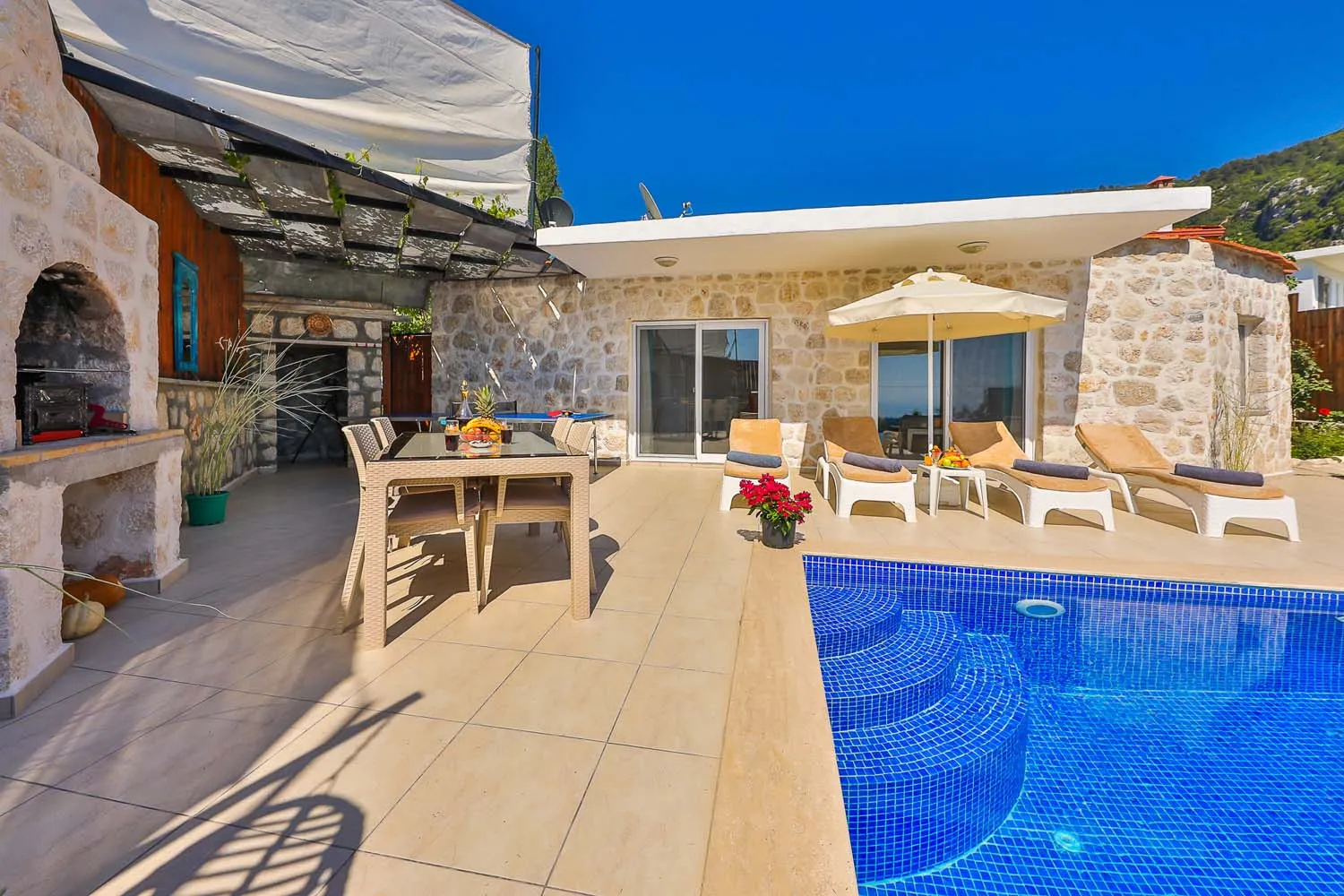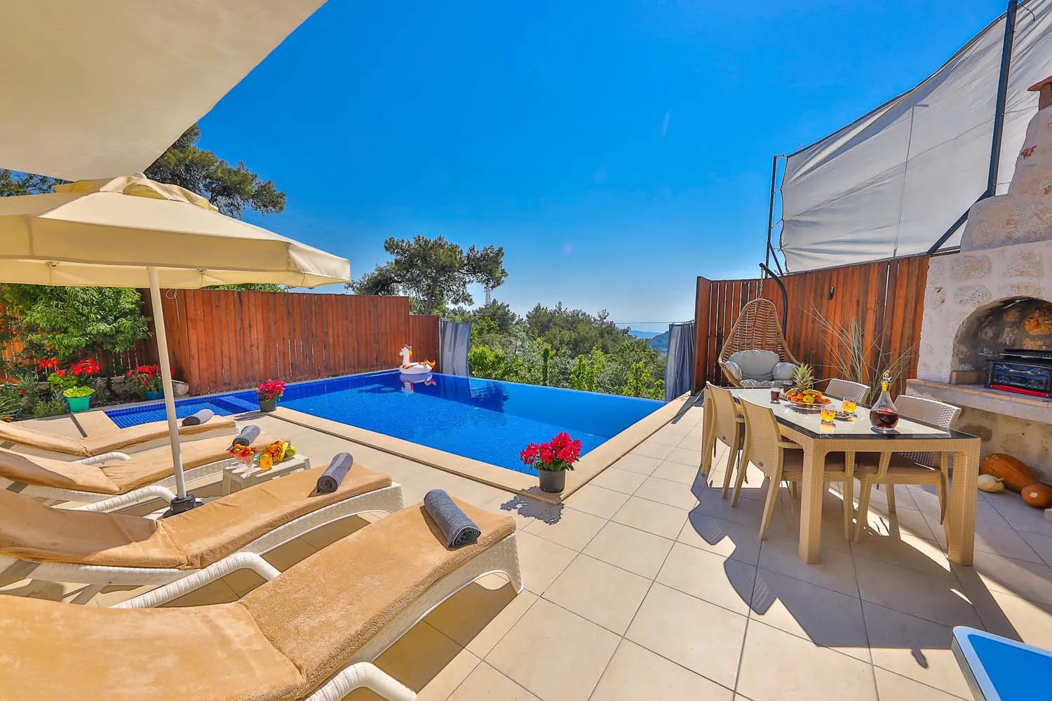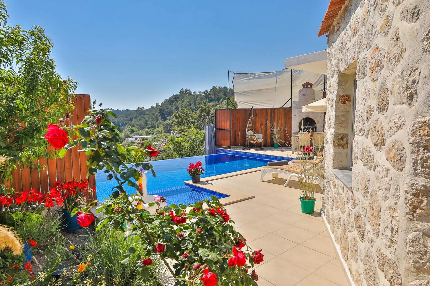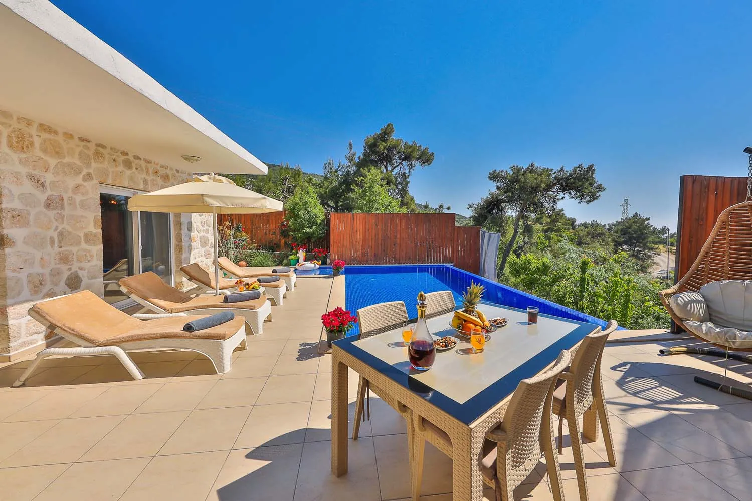 Kalkan İslamlar köyünde konumlanan özel havuzu tam korunaklı villamızdır. Yemyeşil doğa manzarasına sahip villamızın içi misafirlerimizin rahat edebilmesi için özenle tasarlanmıştır. Sakin ve keyifli bir tatil için ideal olan villamız, muhafazakar ailelere ve balayı misafirlerimize de oldukça uygundur.