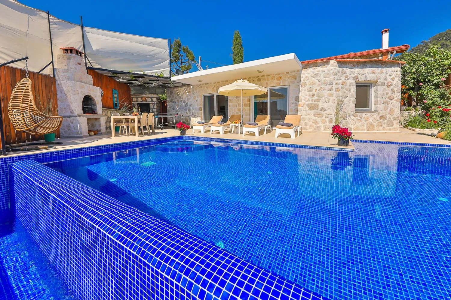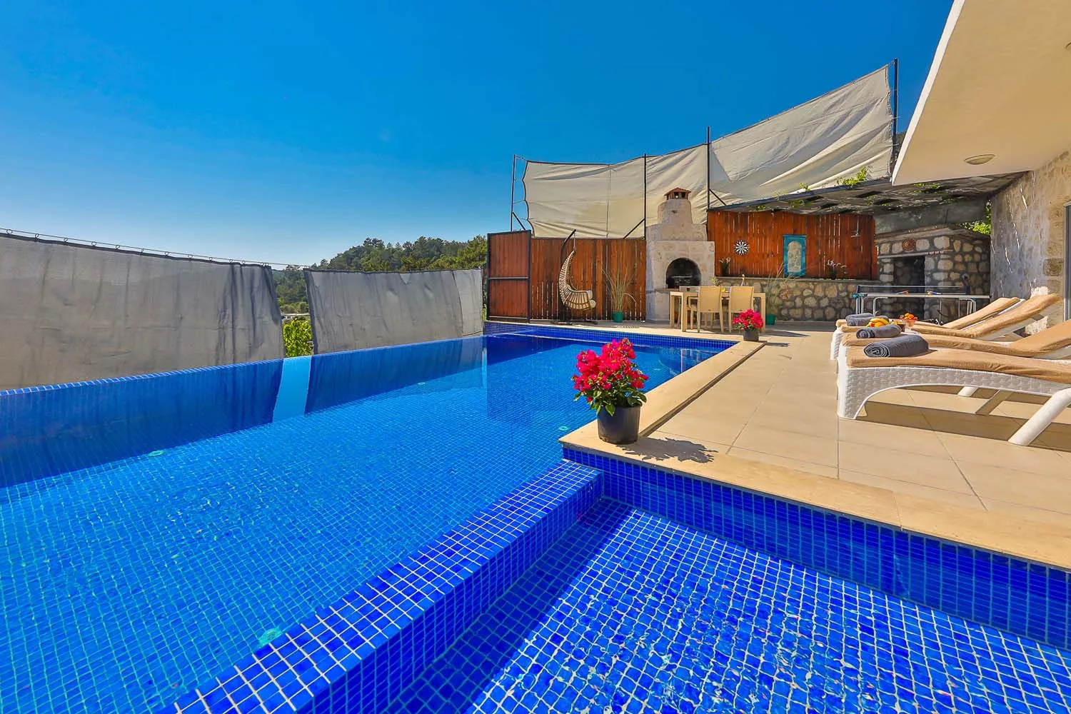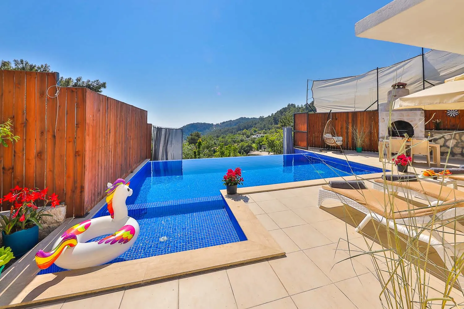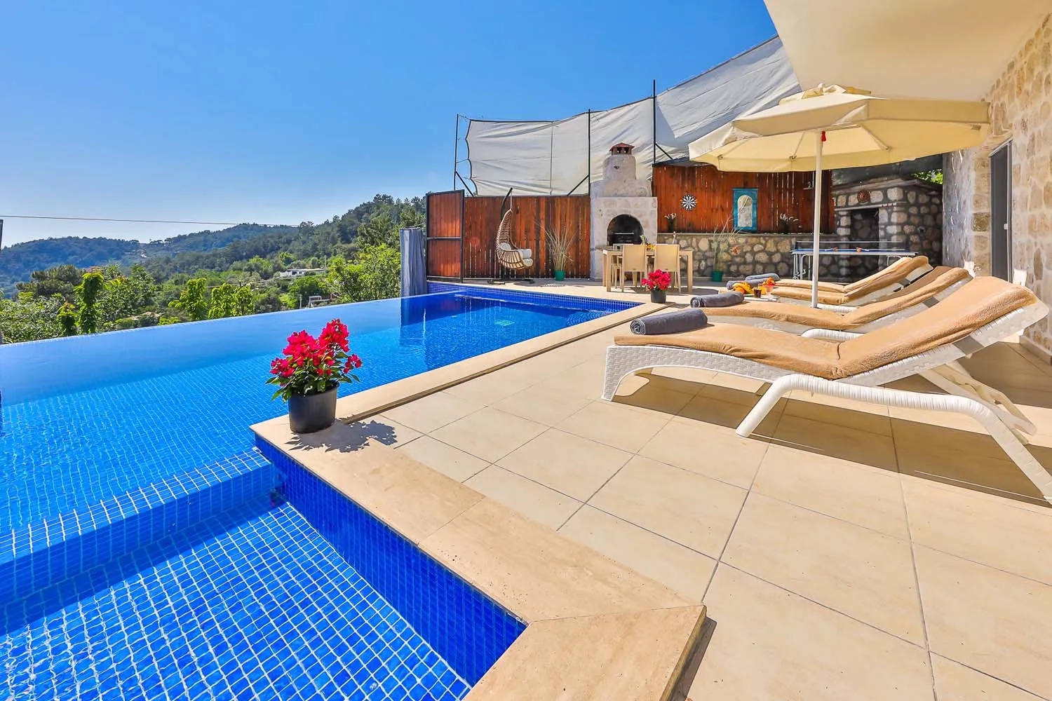 Kalkan İslamlar köyünde konumlanan özel havuzu tam korunaklı villamızdır. Yemyeşil doğa manzarasına sahip villamızın içi misafirlerimizin rahat edebilmesi için özenle tasarlanmıştır. Sakin ve keyifli bir tatil için ideal olan villamız, muhafazakar ailelere ve balayı misafirlerimize de oldukça uygundur.