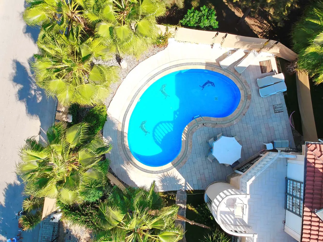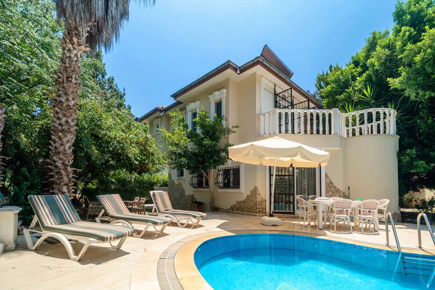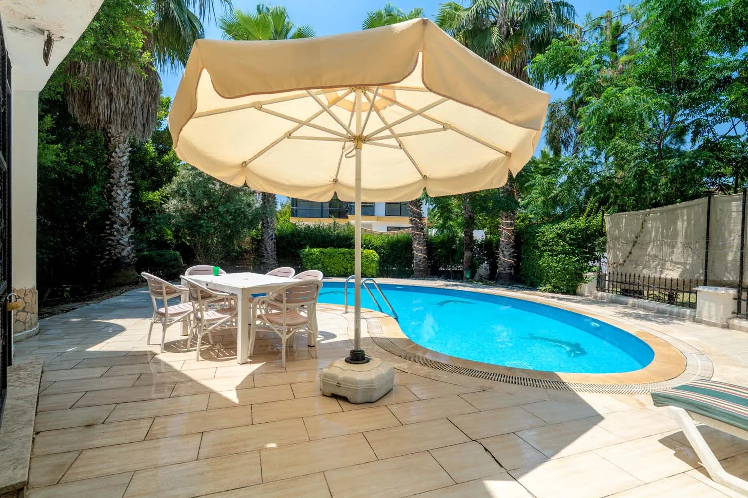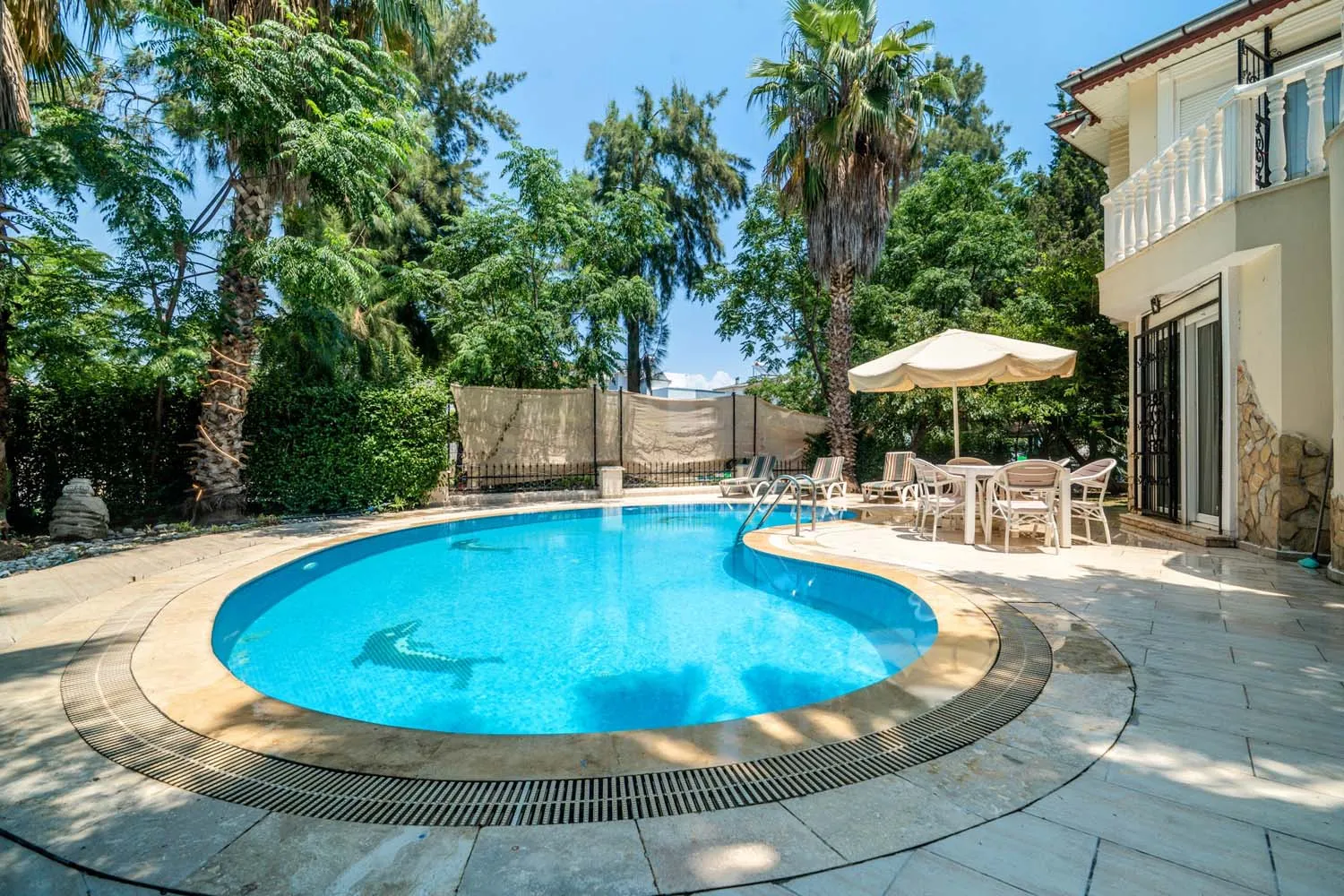 Düzenli peyzaja yeşil bir bahçe alanı, geniş güneşlenme alanı, 6 kişilik masa ve sandalye misafirlerimizin tatil boyunca faydalanabileceği alanlardır. Havuzun bulunduğu konum itibari ile villa yakınında bir bina bulunmadığı için bölgedeki en korunaklı villa özelliği göstermektedir ayrıca yaz sezonu için iç mimarisi yenilenmiş yenilenen yüzü ile hizmete sunulmaktadır. Villaya ulaşan misafirlerimiz kendilerine ait otoparka araçlarını park ederek tatillerine başlarlar.  Özel tasarım olarak en korunaklı ve  konforlu villa  grubunda yer almaktadır.