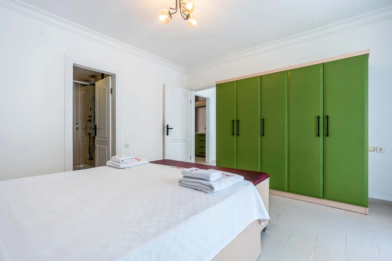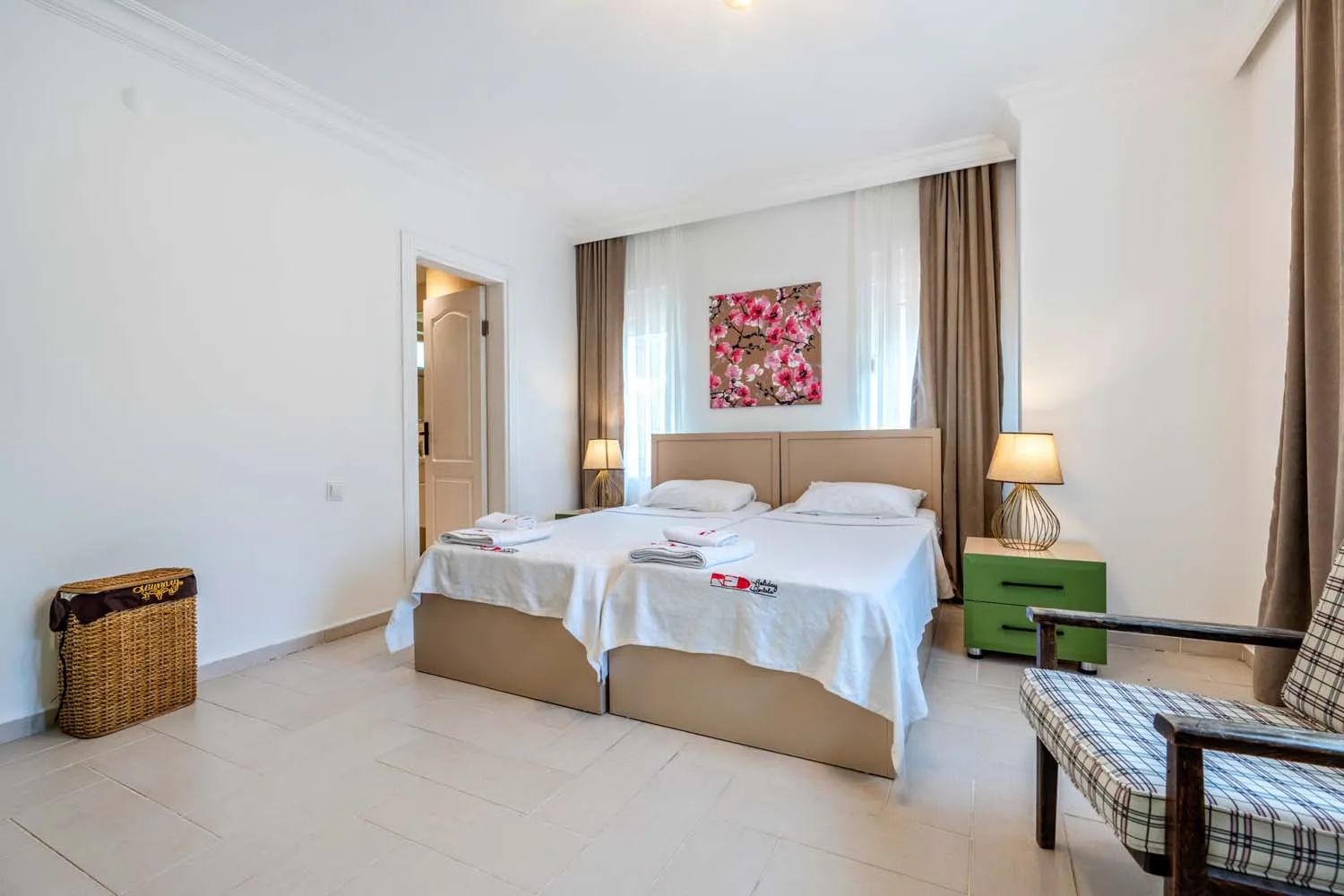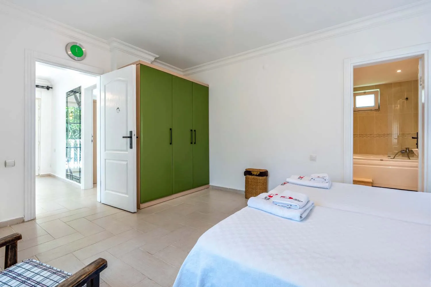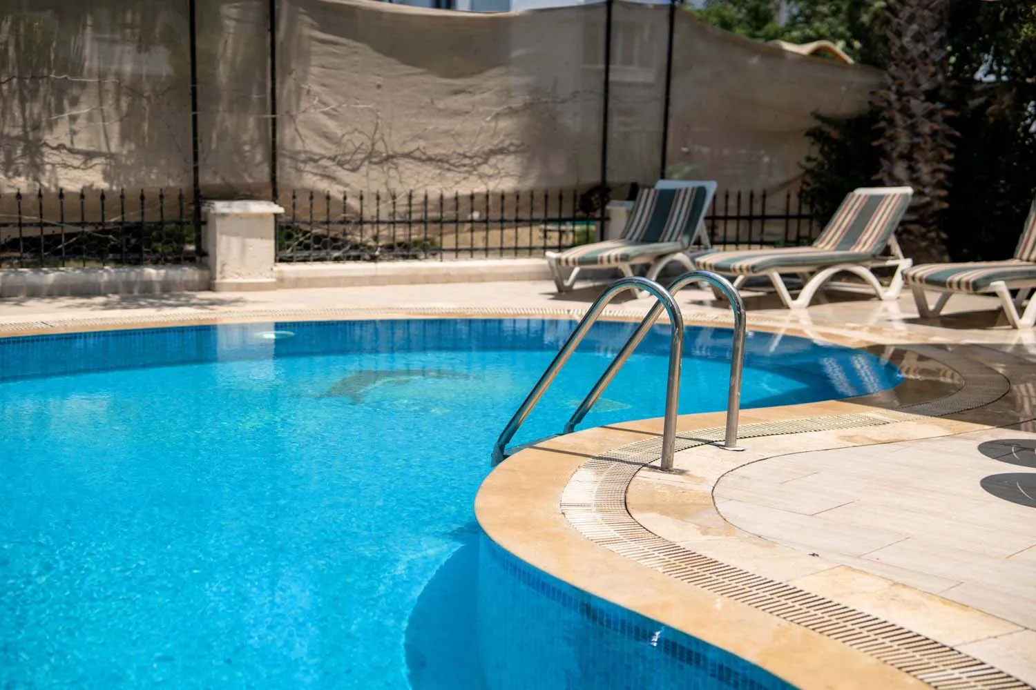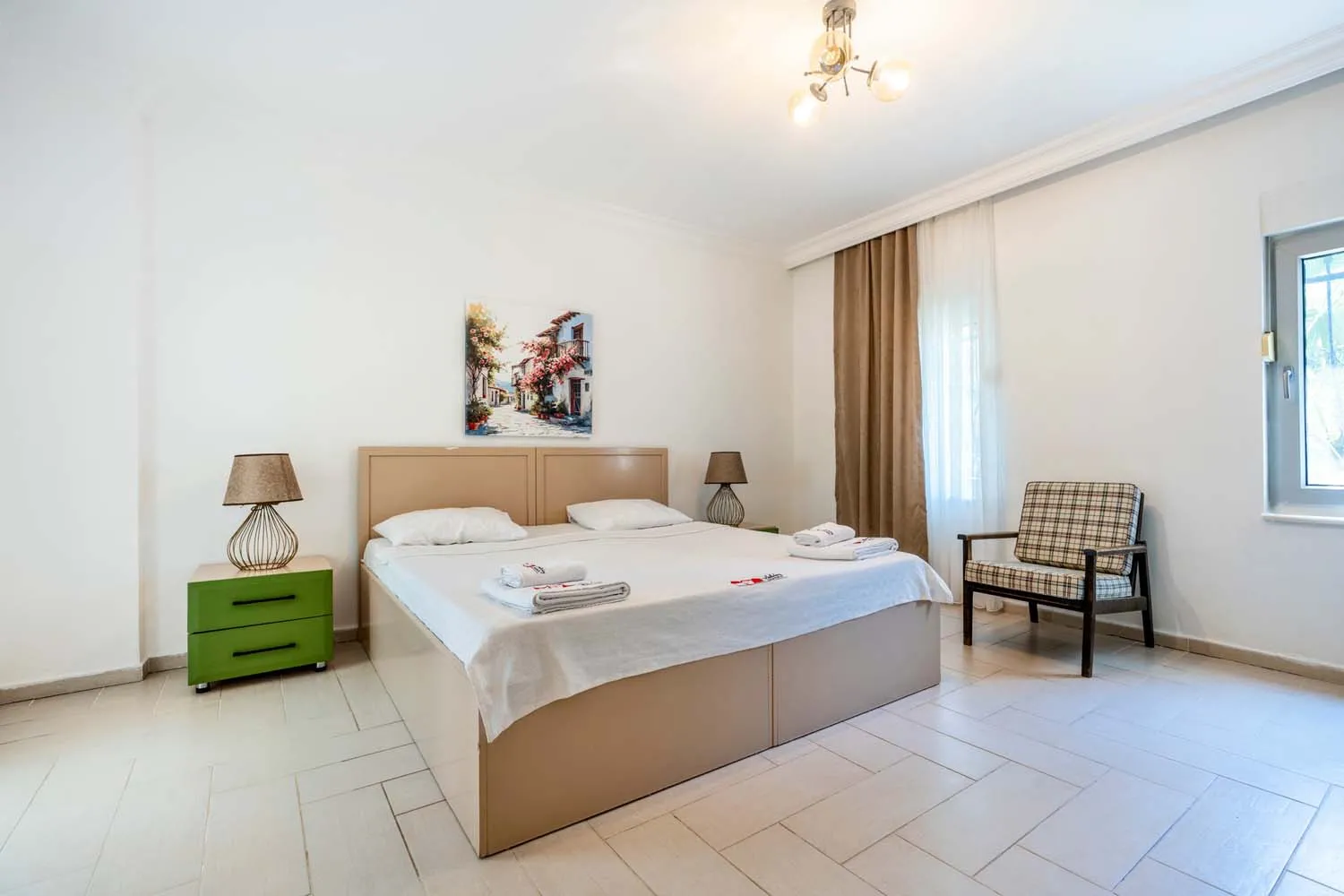 Düzenli peyzaja yeşil bir bahçe alanı, geniş güneşlenme alanı, 6 kişilik masa ve sandalye misafirlerimizin tatil boyunca faydalanabileceği alanlardır. Havuzun bulunduğu konum itibari ile villa yakınında bir bina bulunmadığı için bölgedeki en korunaklı villa özelliği göstermektedir ayrıca yaz sezonu için iç mimarisi yenilenmiş yenilenen yüzü ile hizmete sunulmaktadır. Villaya ulaşan misafirlerimiz kendilerine ait otoparka araçlarını park ederek tatillerine başlarlar.  Özel tasarım olarak en korunaklı ve  konforlu villa  grubunda yer almaktadır.