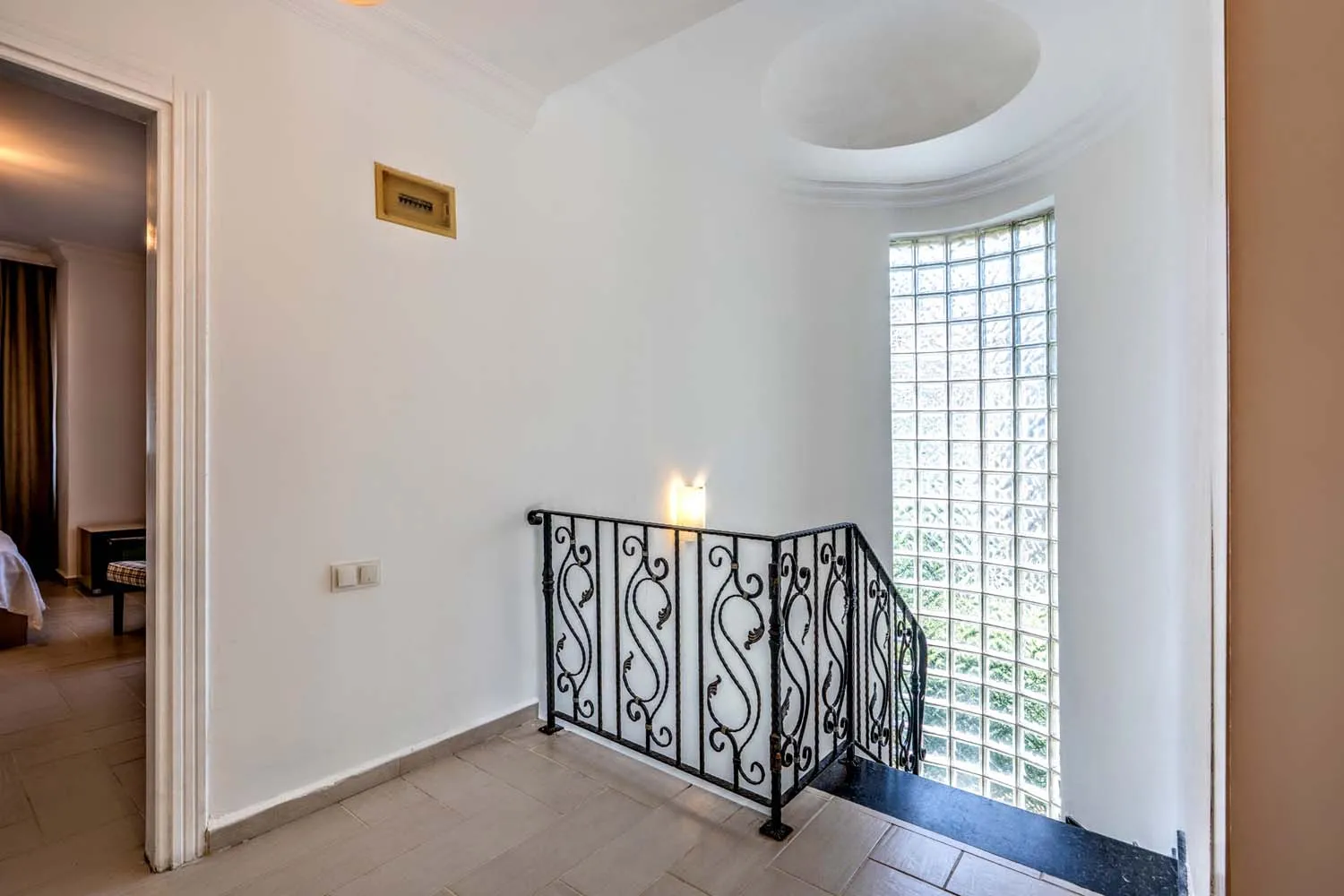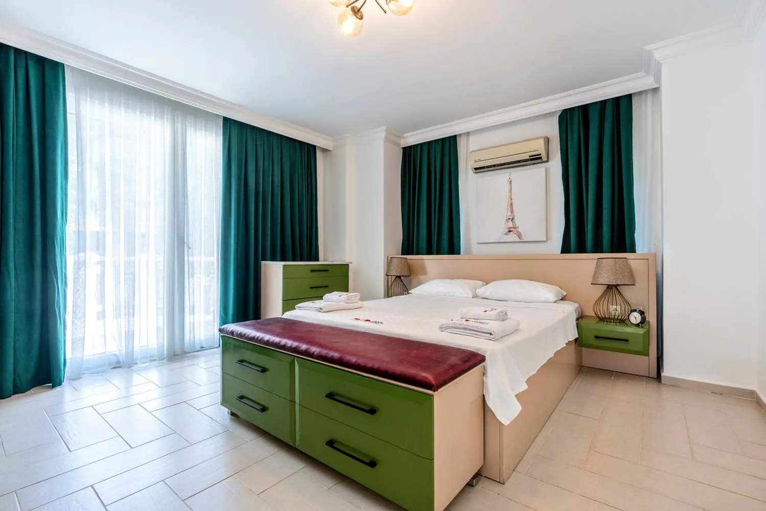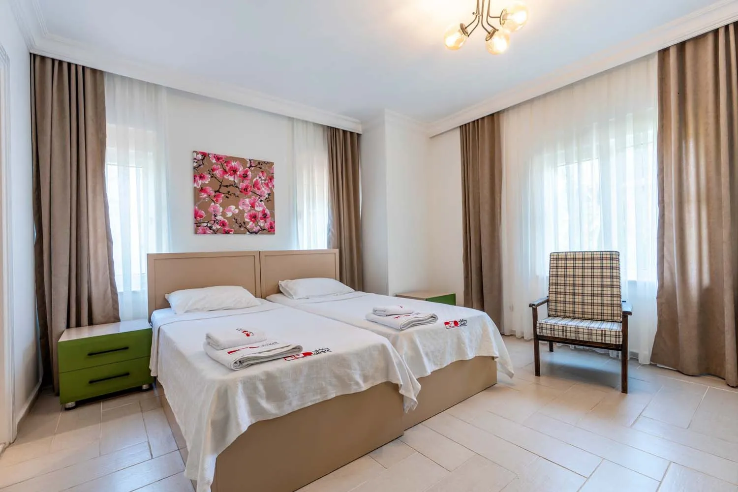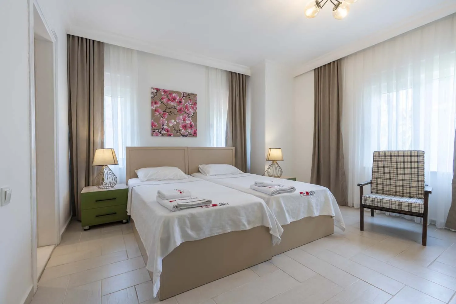 Düzenli peyzaja yeşil bir bahçe alanı, geniş güneşlenme alanı, 6 kişilik masa ve sandalye misafirlerimizin tatil boyunca faydalanabileceği alanlardır. Havuzun bulunduğu konum itibari ile villa yakınında bir bina bulunmadığı için bölgedeki en korunaklı villa özelliği göstermektedir ayrıca yaz sezonu için iç mimarisi yenilenmiş yenilenen yüzü ile hizmete sunulmaktadır. Villaya ulaşan misafirlerimiz kendilerine ait otoparka araçlarını park ederek tatillerine başlarlar.  Özel tasarım olarak en korunaklı ve  konforlu villa  grubunda yer almaktadır.