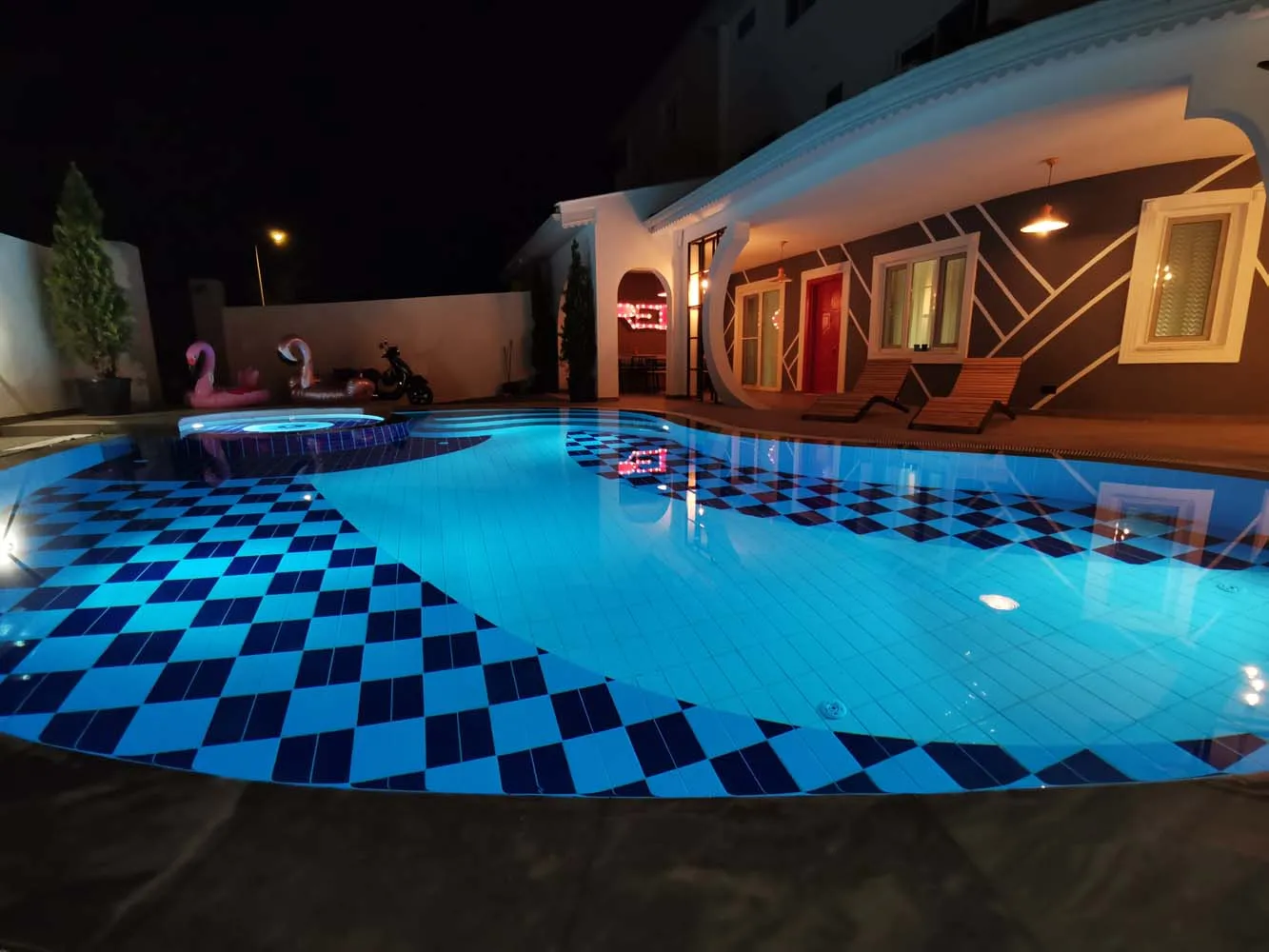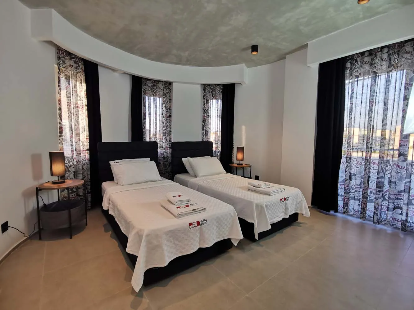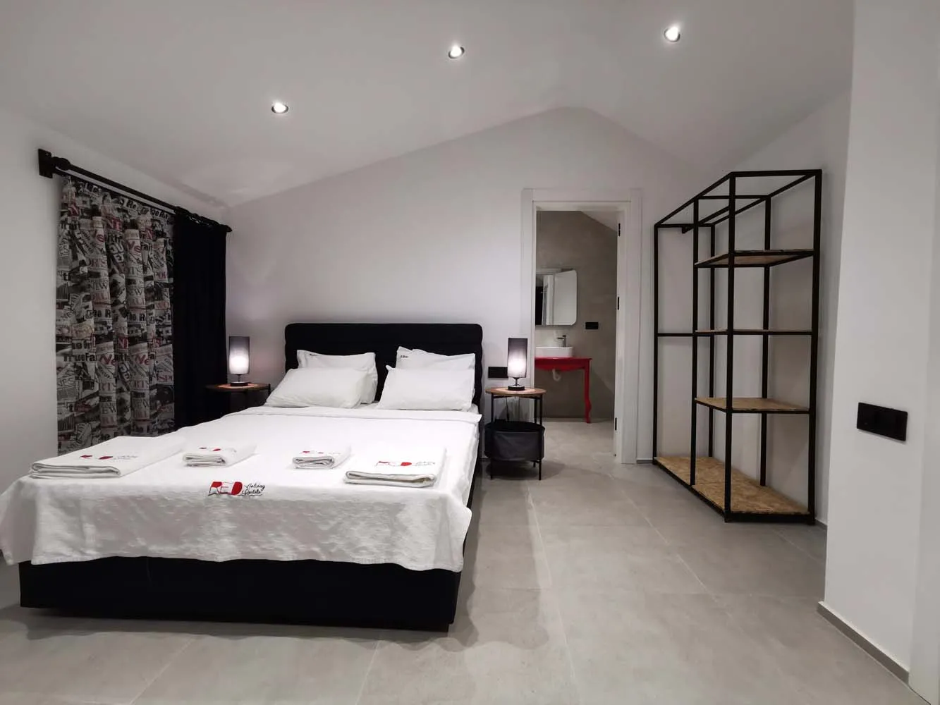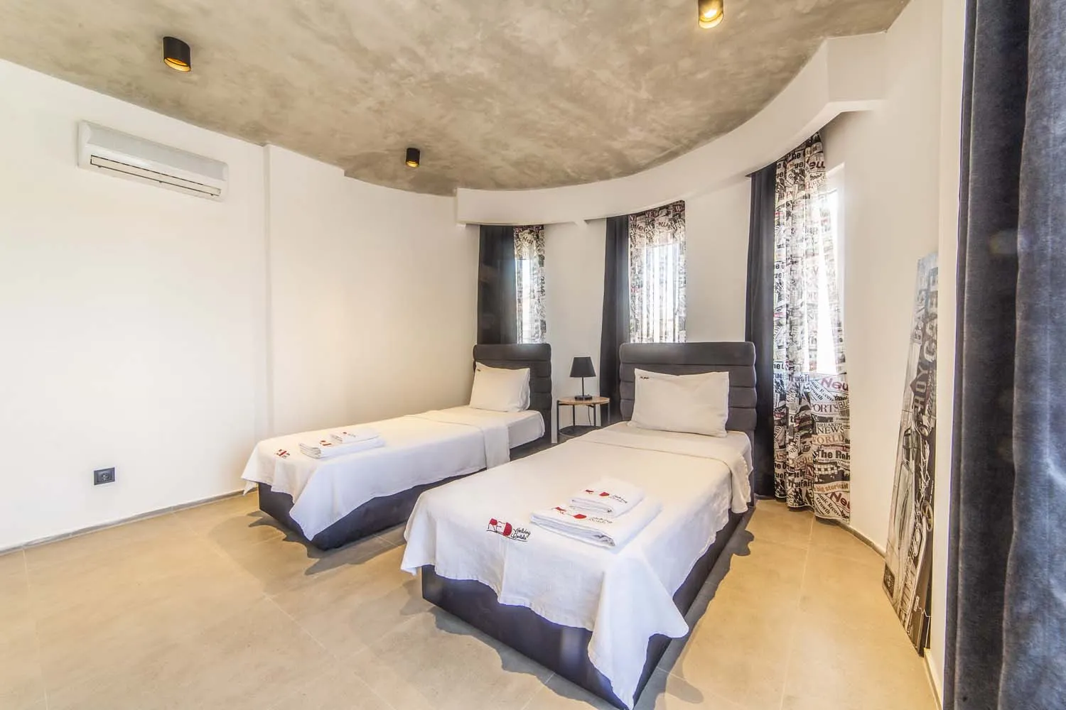 Villada yaklaşık 50 metrekare büyüklüğünde bir havuz, havuz içerisinde jakuzi ve çocuk havuzu mevcuttur. Giriş katında açık bir mutfak bir oturma grubu ve 6 kişilik yemek masası , wc bulunmaktadır. İkinci katında çift kişilik yatağın bulunduğu bir oda, iki adettekli yatağın bulunduğu bir oda ve bu katta ortak kullanım duş/wc bulunmaktadır. Yine aynı katta misafirlerimizin tatil boyunca kullanabileceği çamaşır makinası da bu katta yer alır. En üst katında ise çift kişilik yatağın bulunduğu ebeveyn banyolu bir odası mevcuttur.