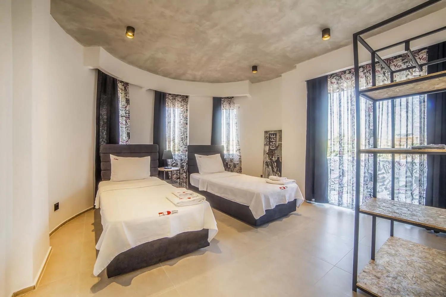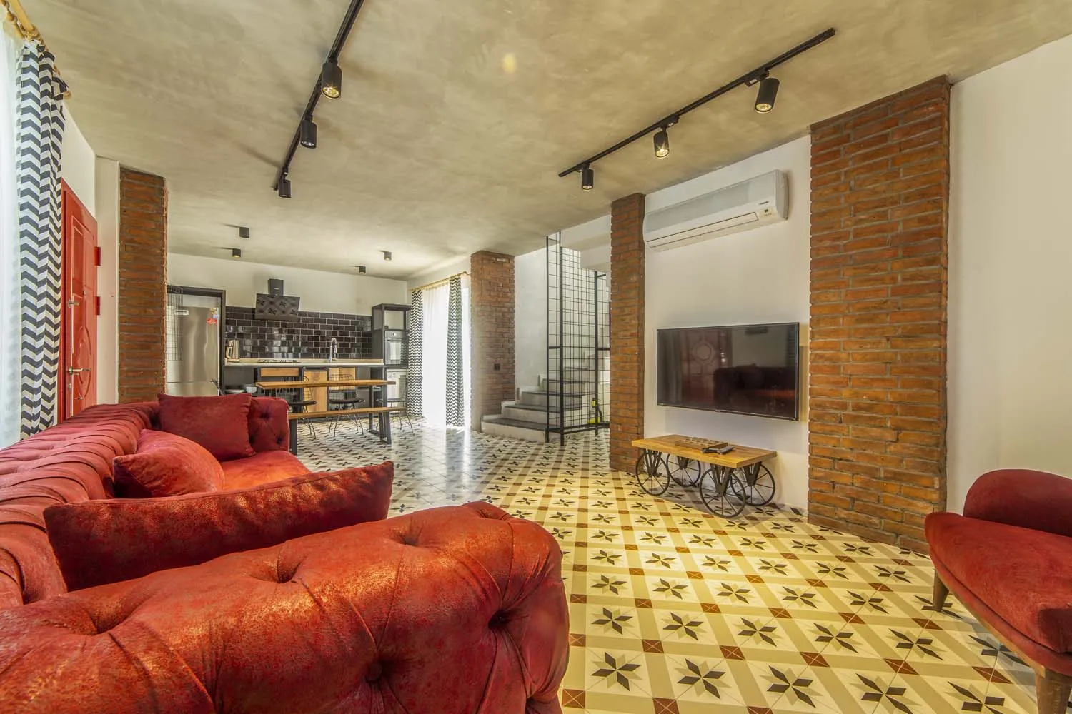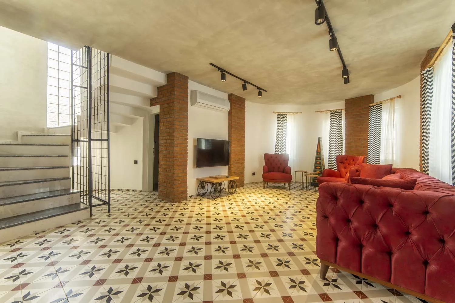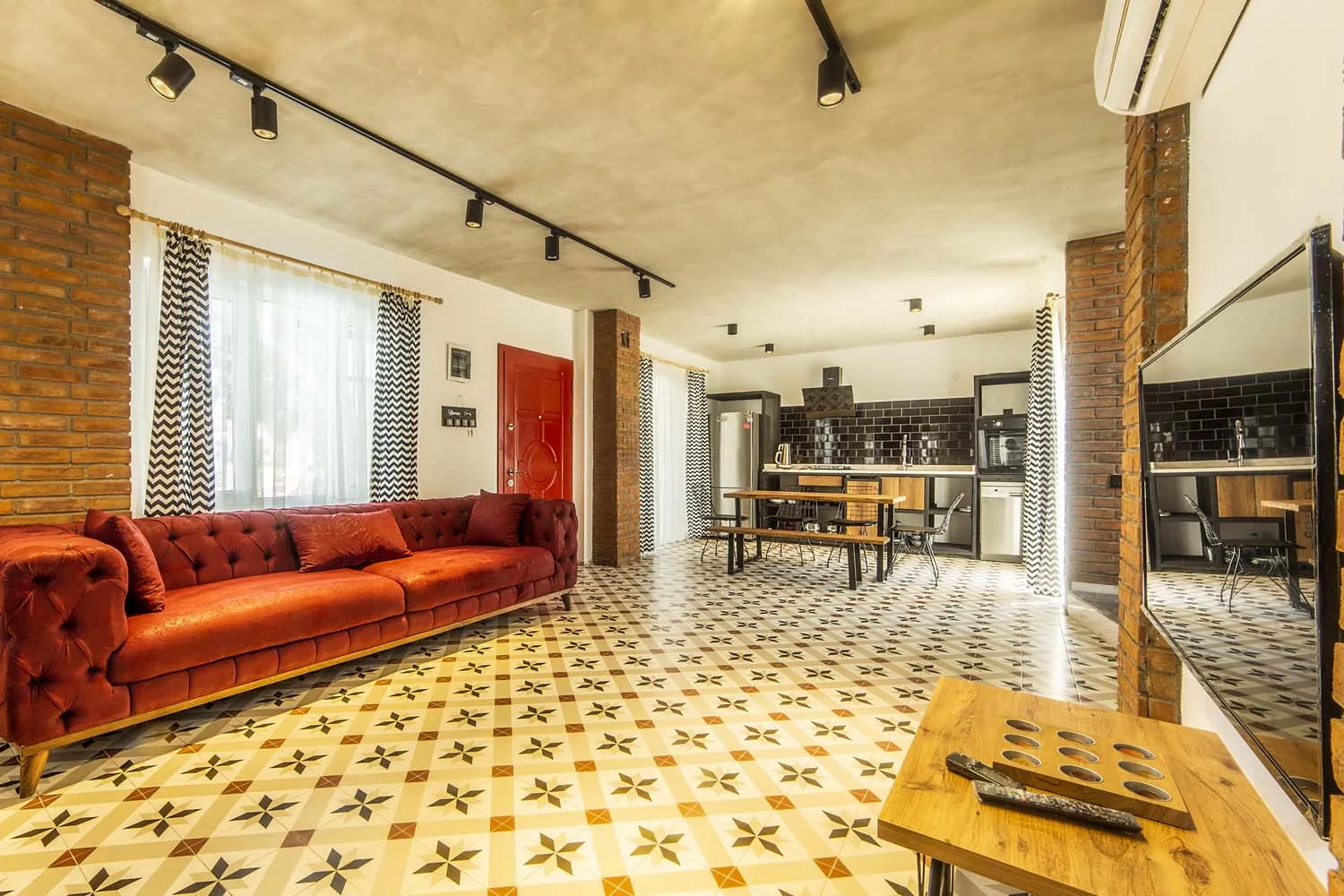 Villada yaklaşık 50 metrekare büyüklüğünde bir havuz, havuz içerisinde jakuzi ve çocuk havuzu mevcuttur. Giriş katında açık bir mutfak bir oturma grubu ve 6 kişilik yemek masası , wc bulunmaktadır. İkinci katında çift kişilik yatağın bulunduğu bir oda, iki adettekli yatağın bulunduğu bir oda ve bu katta ortak kullanım duş/wc bulunmaktadır. Yine aynı katta misafirlerimizin tatil boyunca kullanabileceği çamaşır makinası da bu katta yer alır. En üst katında ise çift kişilik yatağın bulunduğu ebeveyn banyolu bir odası mevcuttur.