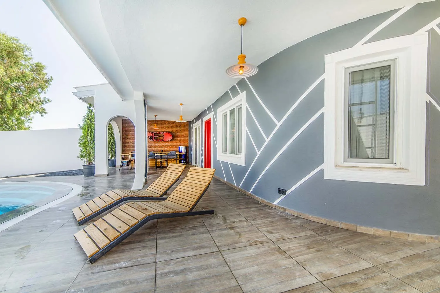 Yine havuz etrafında geniş güneşlenme alanı ve wc/duş misafirlerimize sunulmuş ekstra bir konfordur. Villaya ulaşan misafirlerimiz kendilerine ait otoparka araçlarını park ederek tatillerine başlarlar. İç ve dış mimarisi tamamiyle özel tasarımdır. Villa güvenliği kameralar ile sağlanmaktadır.