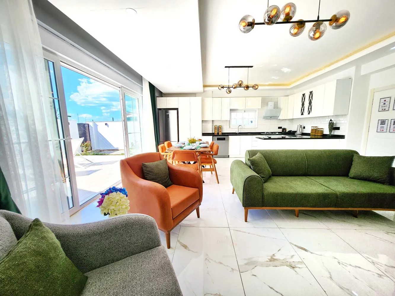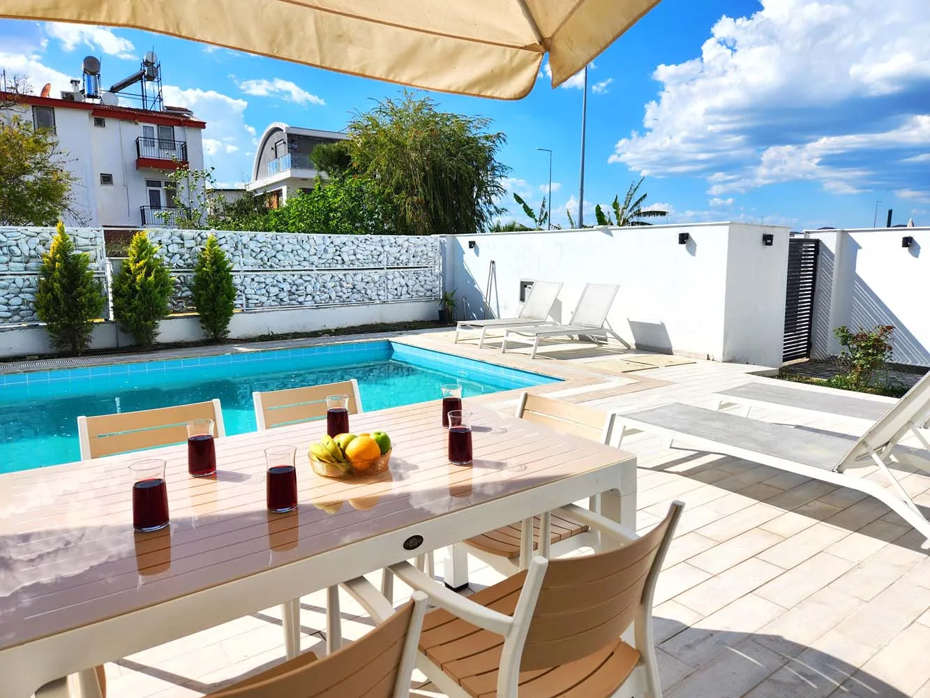 Tam müstakil bir yapıya sahip olan villamız içinde çocuk havuzuda bulunduran geniş bir havuza sahiptir. Yeşil bir bahçe ve havuz başında geniş dinlenme/ güneşlenme alanları sunar. Ayrıca dış alanda aracınıza ait bir araçlık otoparkta dış alanlarda size sunulur. Villamızın giriş katında bir duş/tuvalet, iki adet tek kişilik yatağın sunulduğu bir yatak odası ve açık bir mutfakla kullanılan doğrudan havuza açılan geniş bir salon mevcuttur. Duplex villamızın 1. Katında ise 2 adet çok geniş yatakodası bulunurvebuodalarındakendilerineait birerebebeyn banyosu mevcuttur.