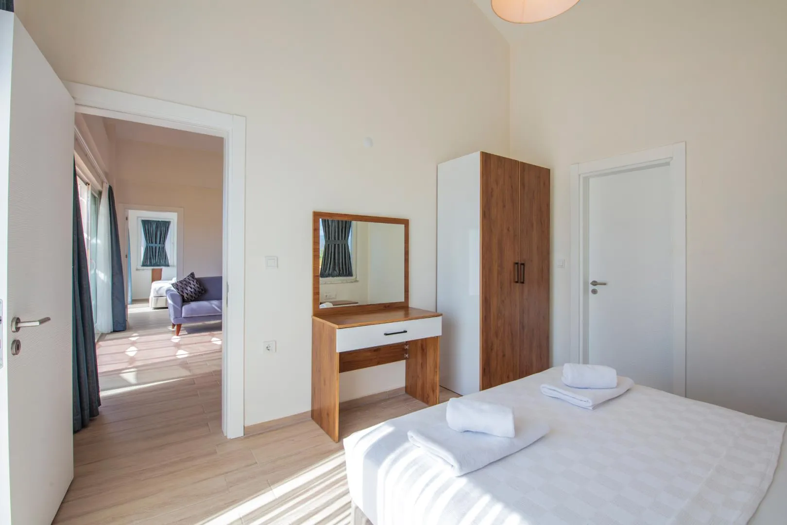 1. Yatak Odası 1 Çift Kişilik Yatak + Komodin + Elbise Dolabı + Klima + Ebeveyn Banyo