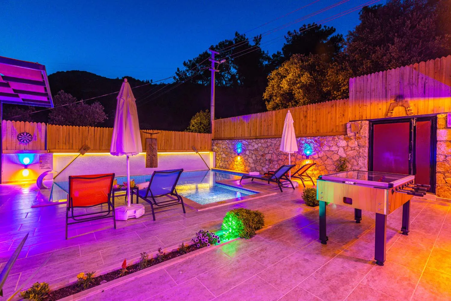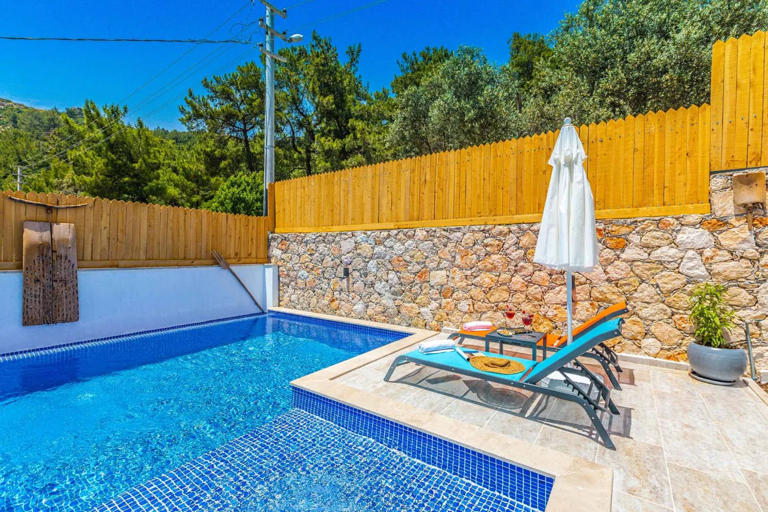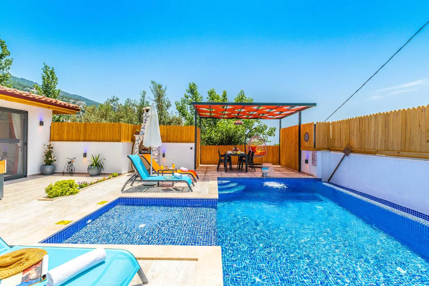 Kalkan İslamlar mevkiinde yer alan, özel havuzu tam korunaklı villamızdır. Şık ve keyifli bir iç dizayna sahip villamız 4 kişilik kapasiteye sahiptir ve muhafazakar aileler için oldukça uygundur. Doğa içerisinde konumlanan ve eğlence imkanı bulunan villamızda keyifli anlar yaşayabilirsiniz.